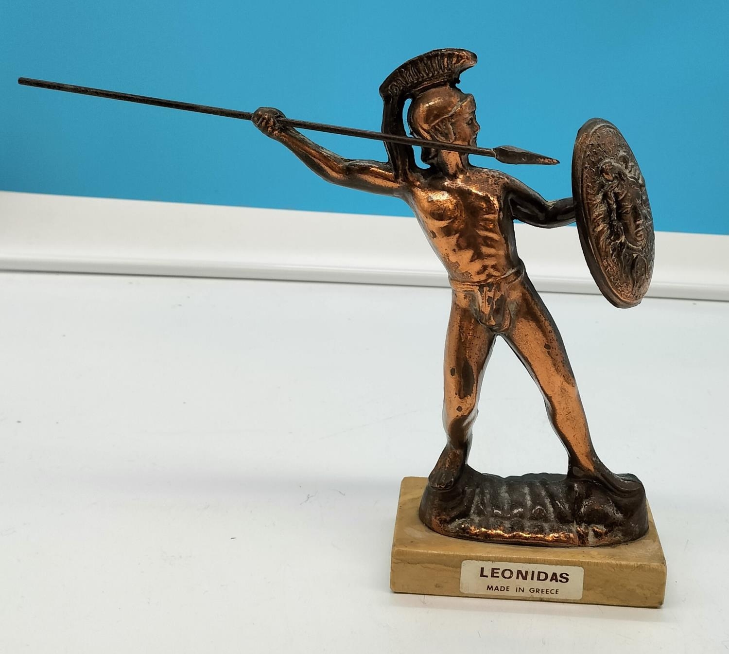 Bronze Effect Figure of a Greek Warrior king Leonidas on Polished Base. 22cm Tall.