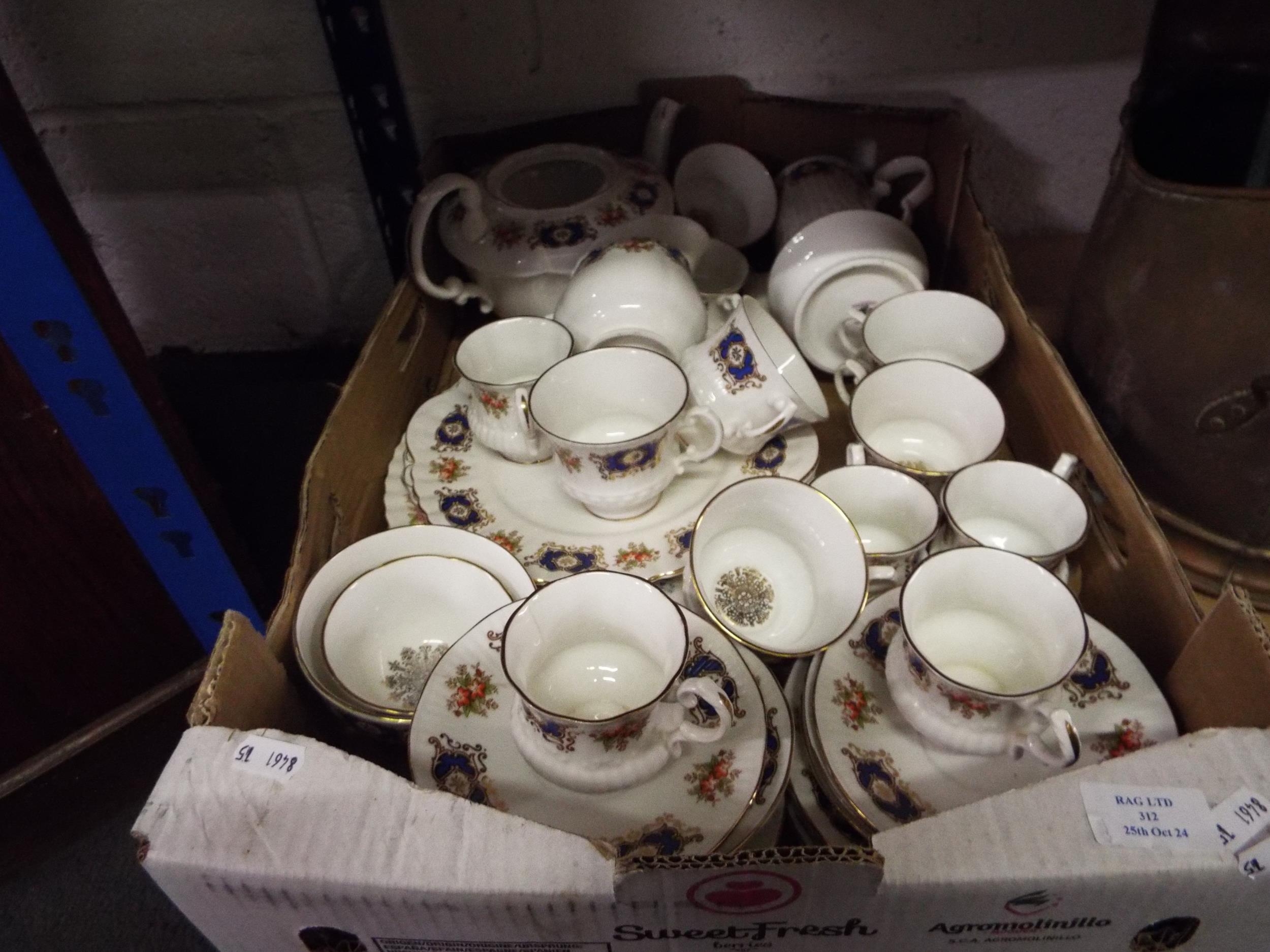 A mixed selection of Royal Sutherland part tea and coffee set to include cups, saucers, coffee pot, tea pot lid missing, cake plate etc