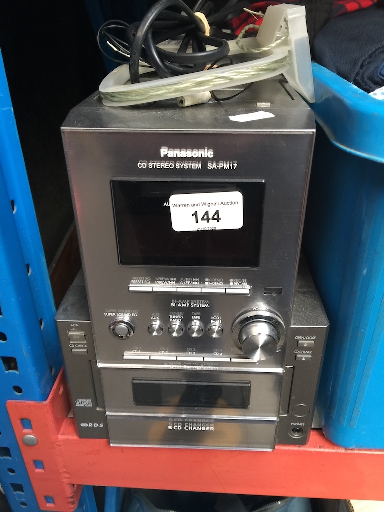 Panasonic CD stereo system, model no : SA-PM17, with pair of speakers, remote, aerial and instructions manual.