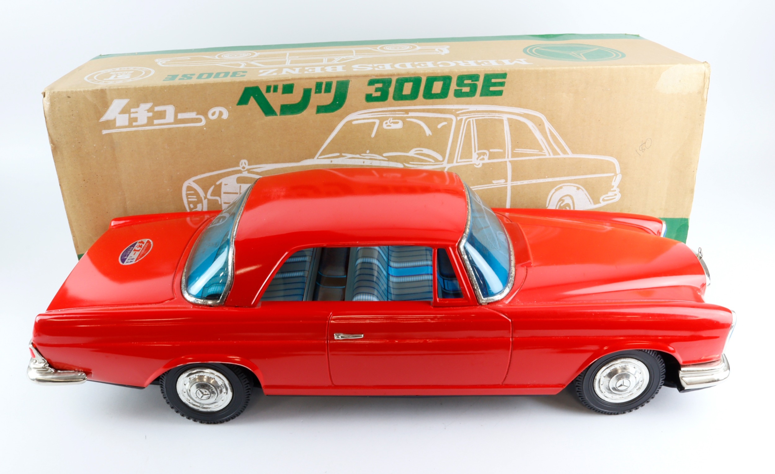 Japanese tinplate Mercedes Benz 300SE model (red), by Ichiko, length 60.5cm approx., contained in original box