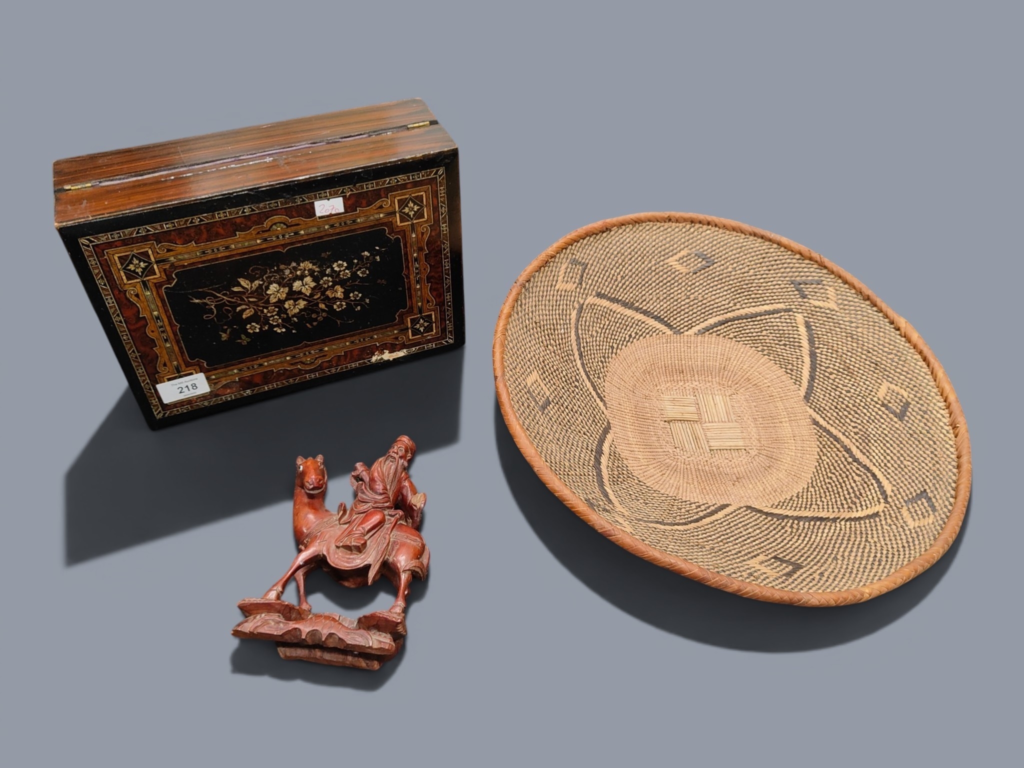 ZULU BASKET, CHINESE CARVING AND WRITING SLOPE
