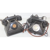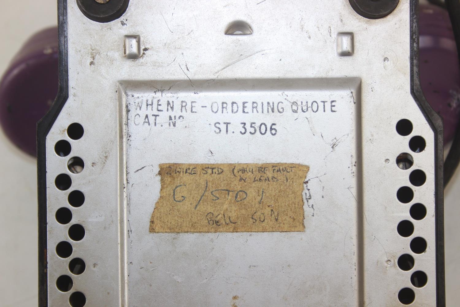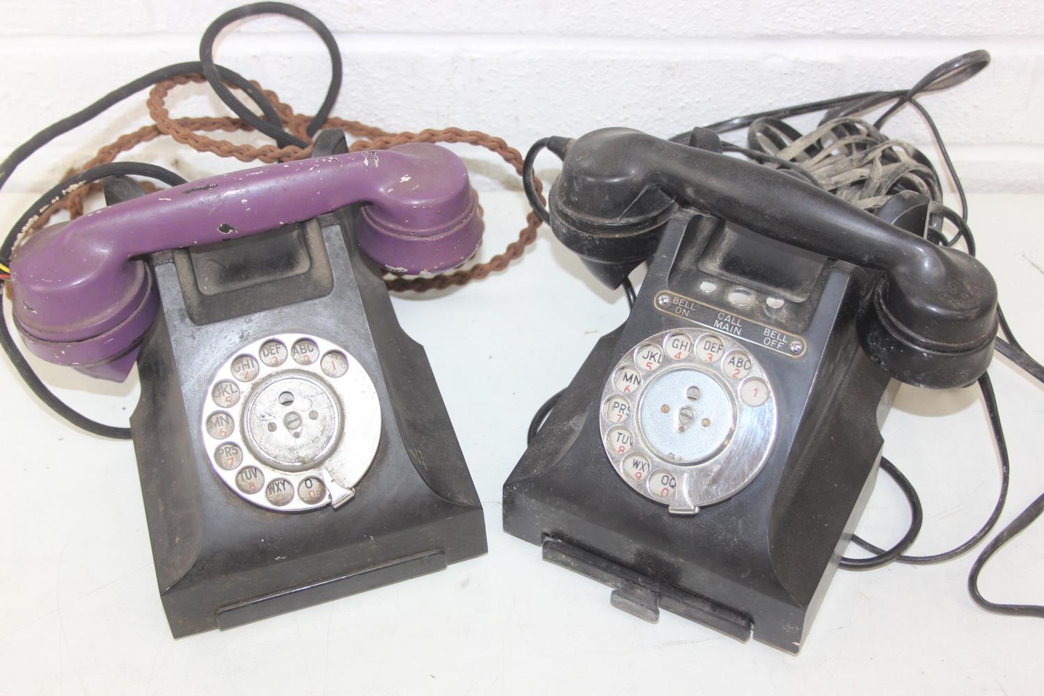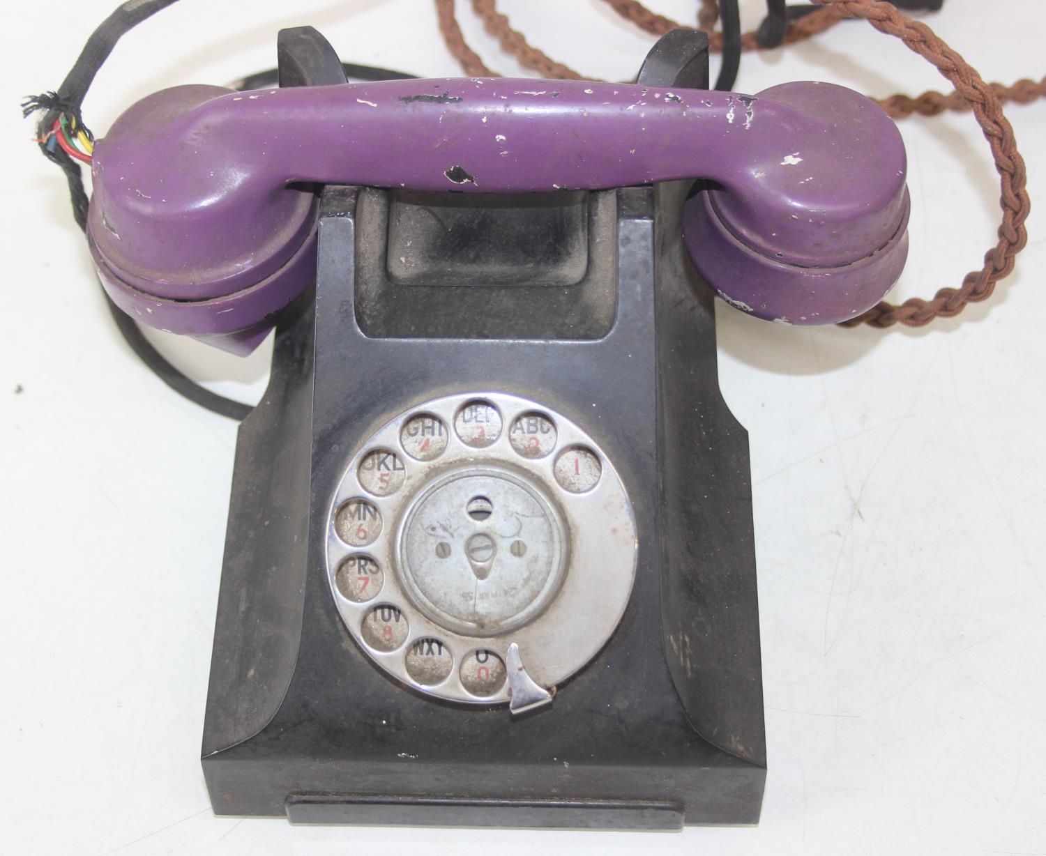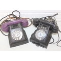 Telephones - two vintage Bakelite telephones, one with purple handset, one marked 312L/C55/3A to base [2]