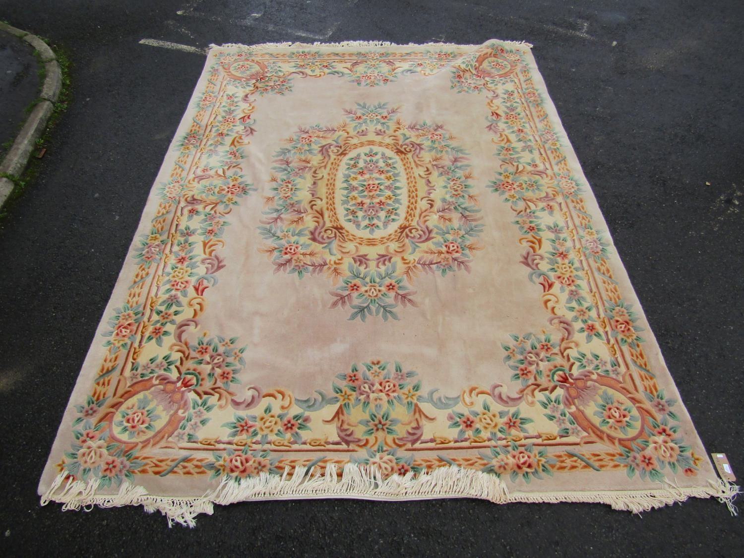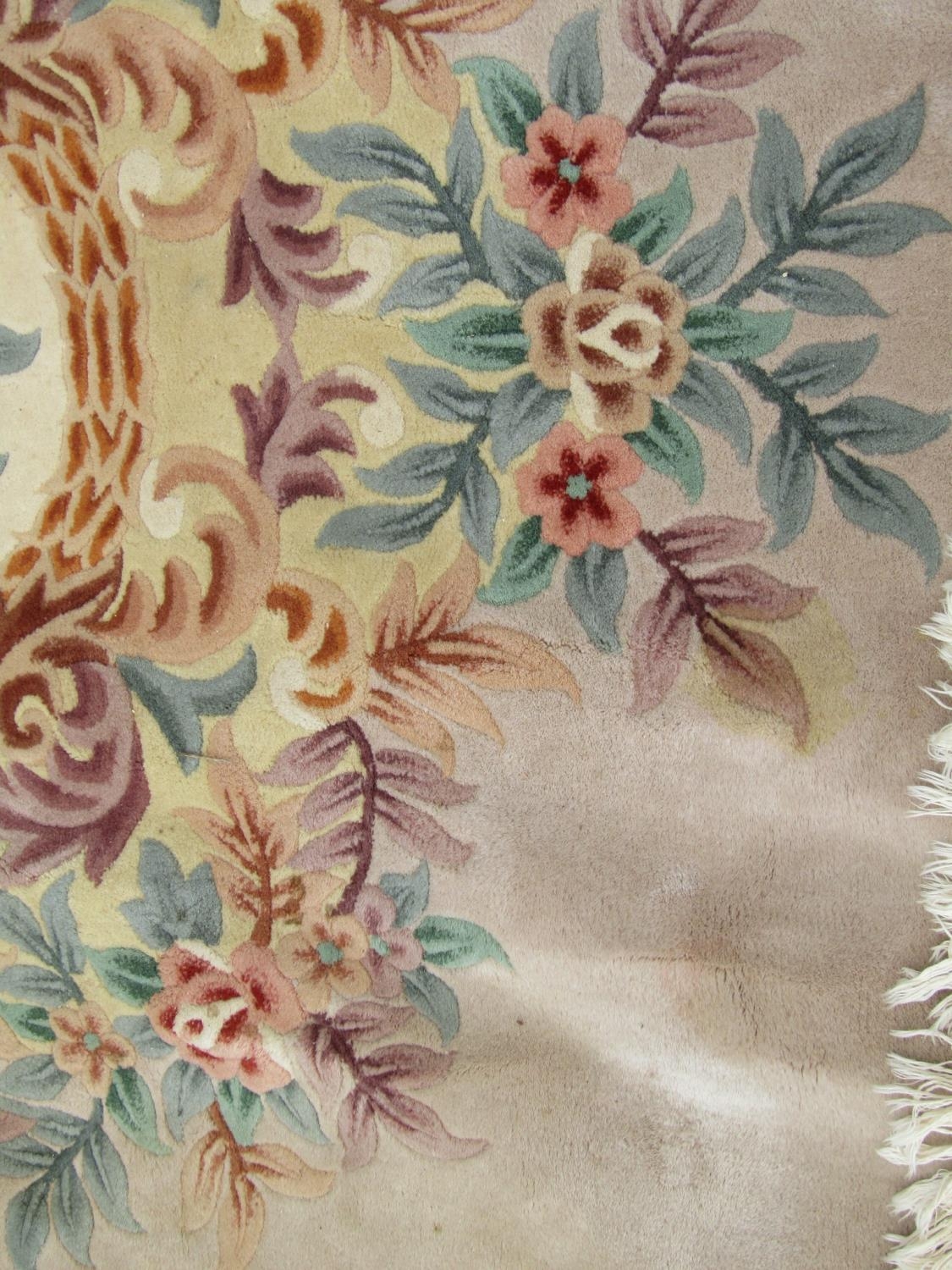 A modern Chinese cream ground washed wool carpet with floral decoration in pastel shades 370x280