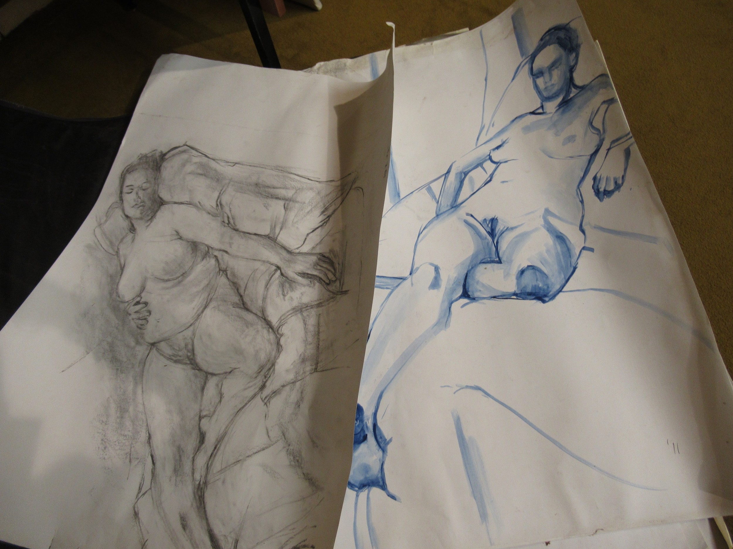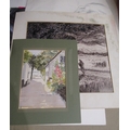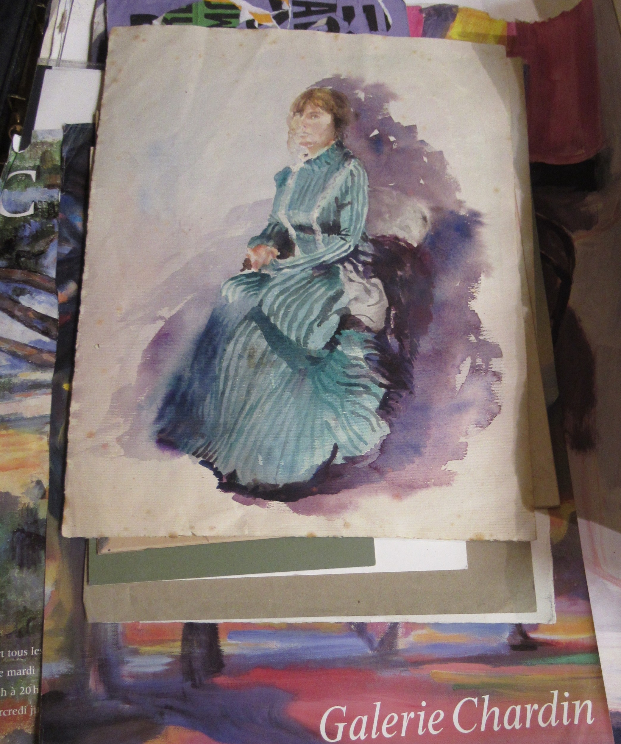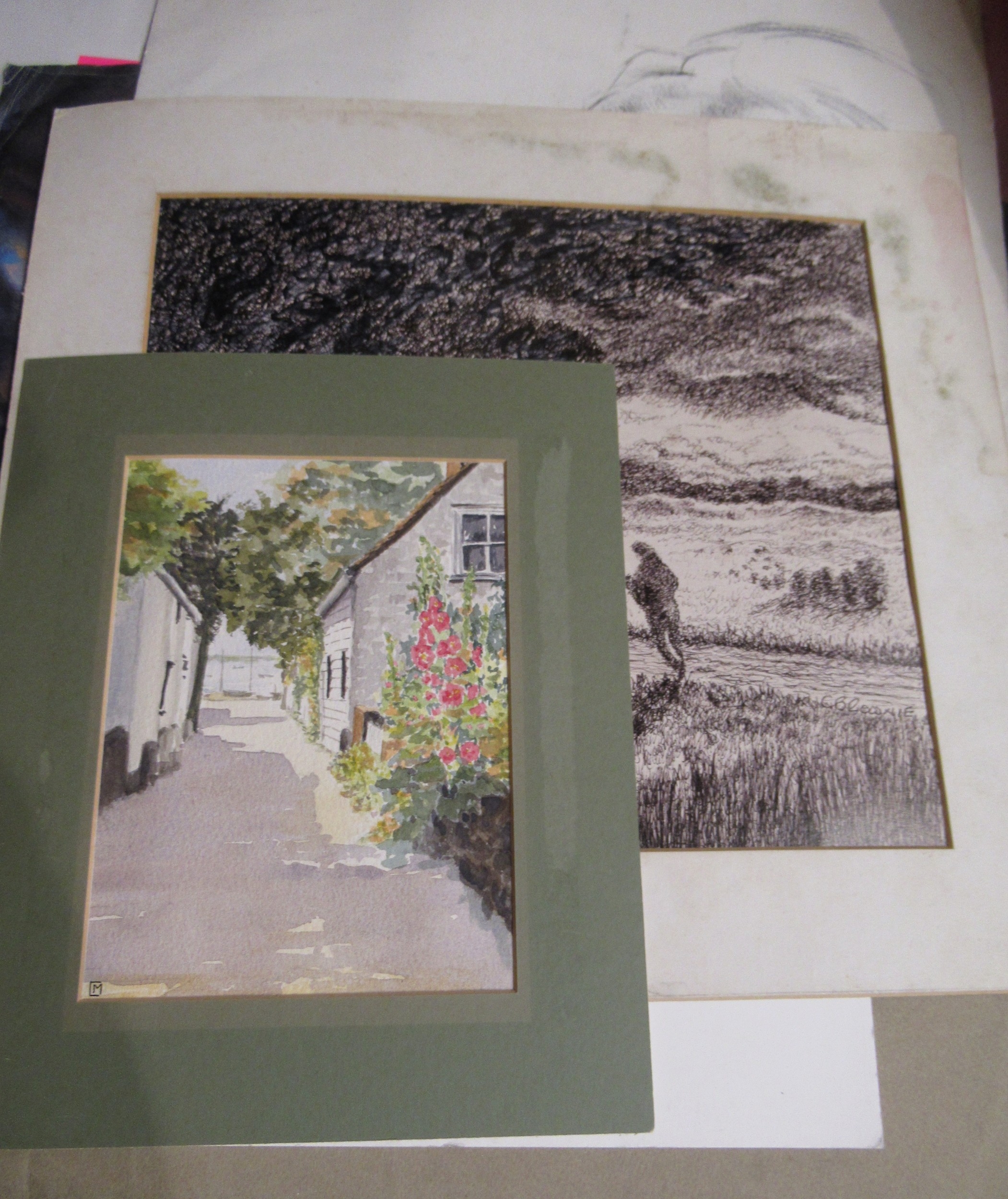 Large artist's folio containing a large quantity of unframed oil paintings, watercolours, drawings etc.