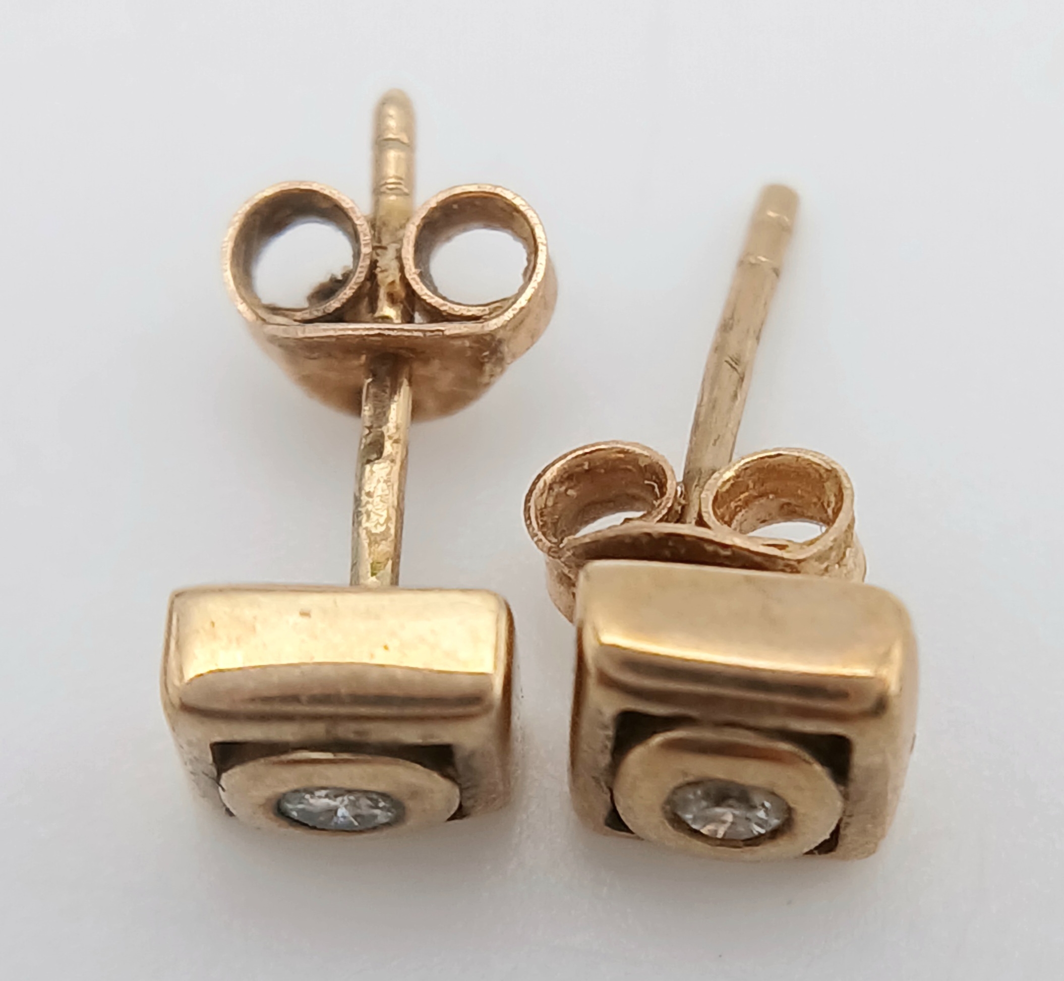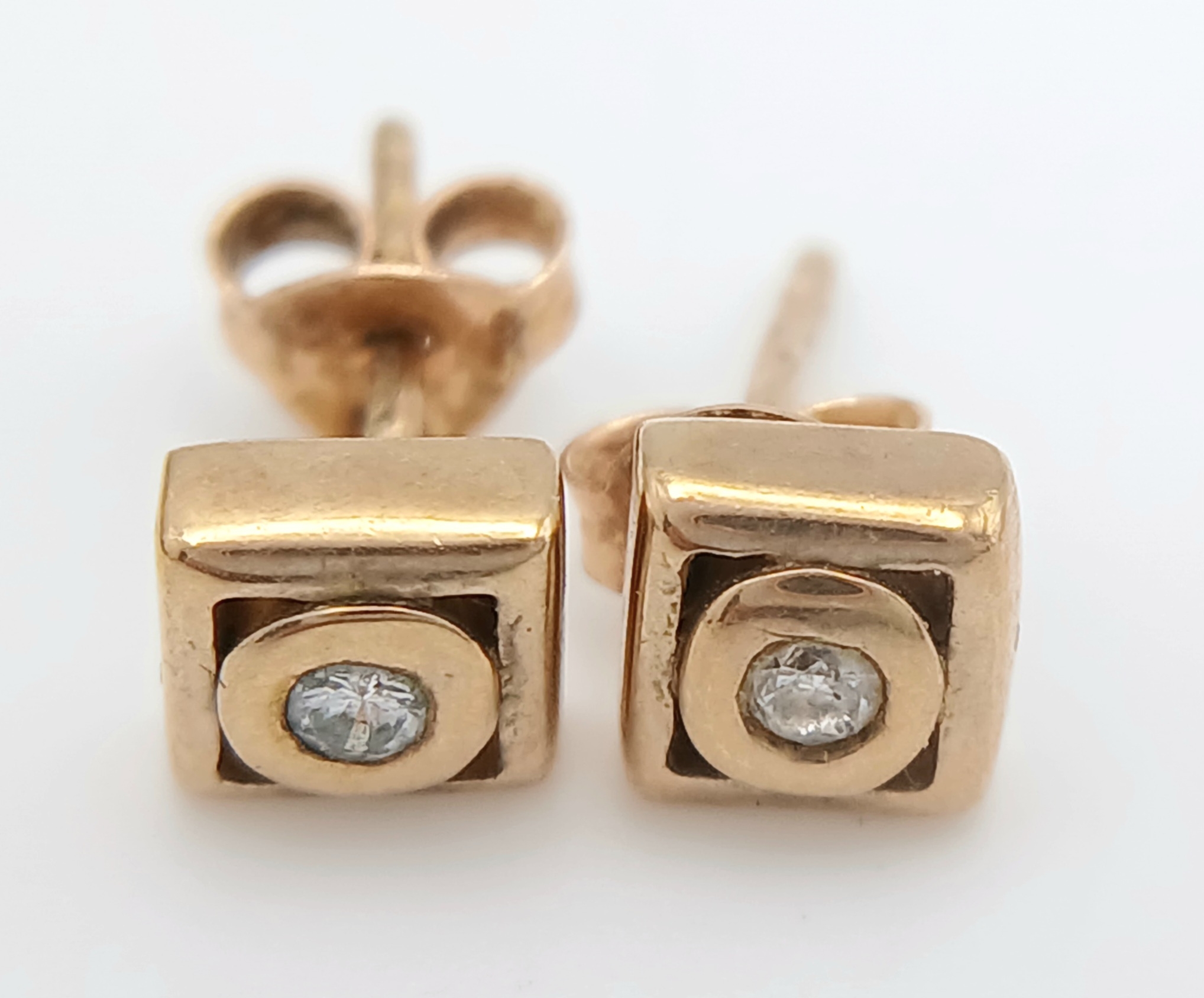 A Pair of 9K Yellow Gold and Diamond Stud Earrings. 1.57g.