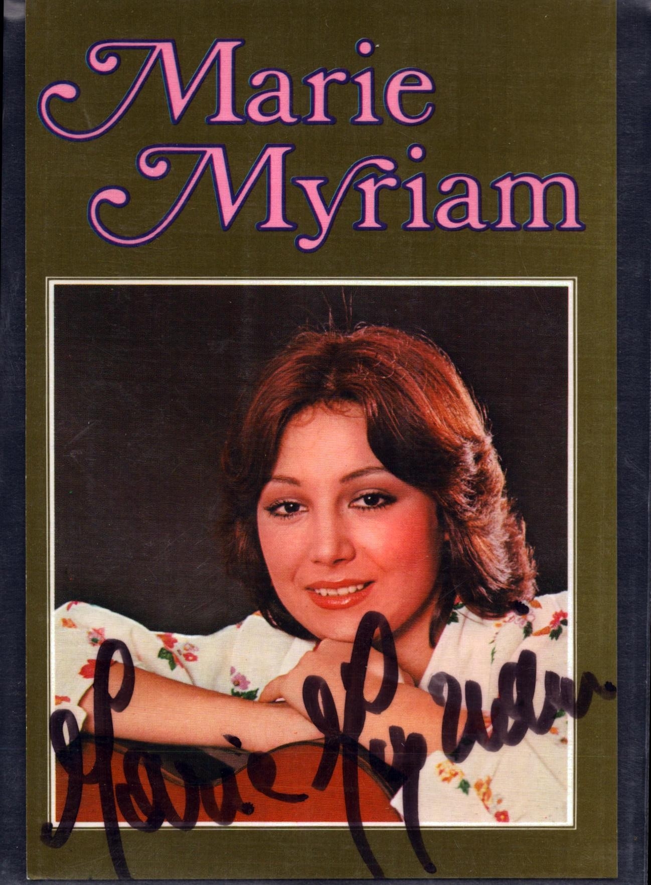 Marie Myriam signed 6x4 inch colour photo postcard.