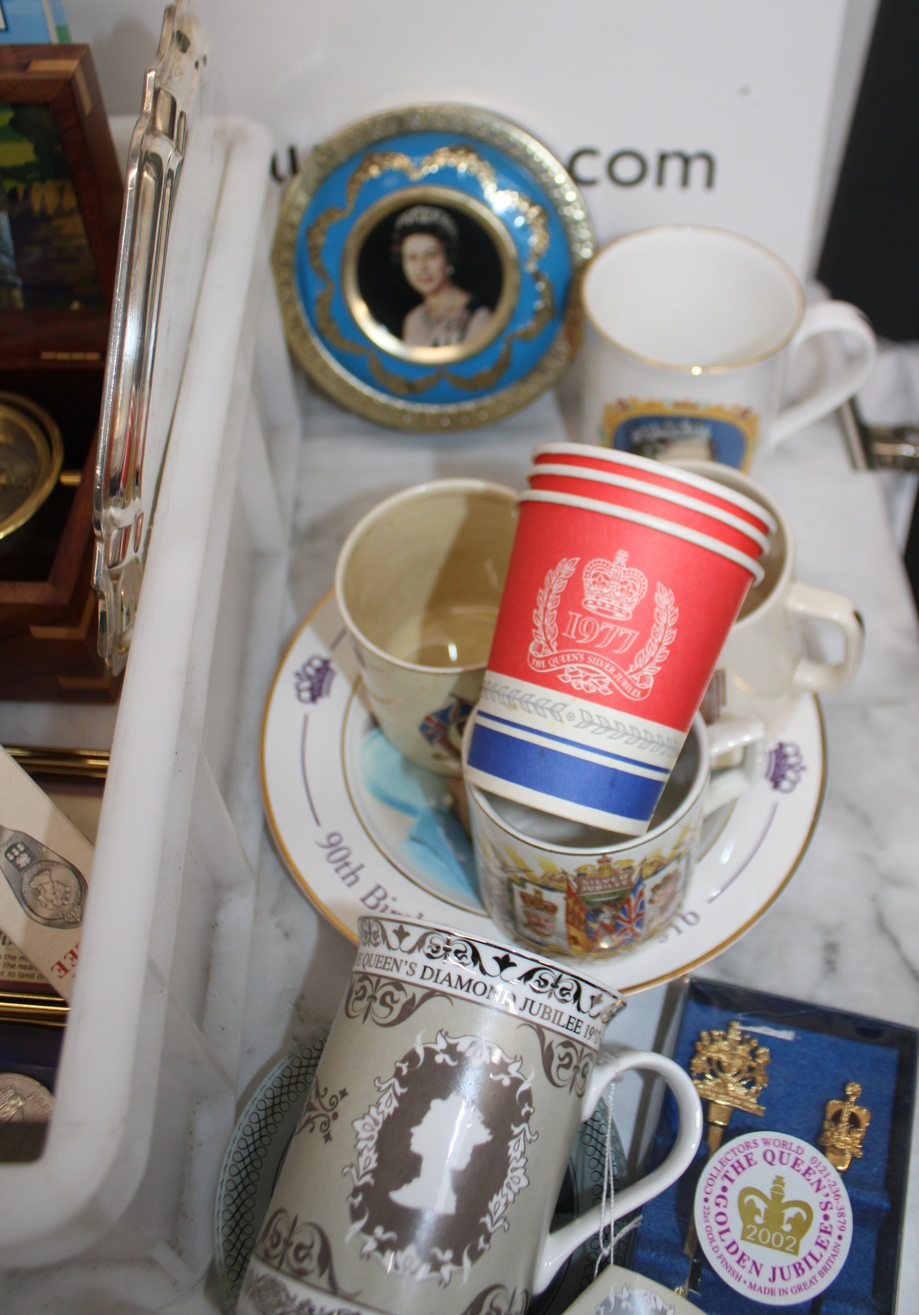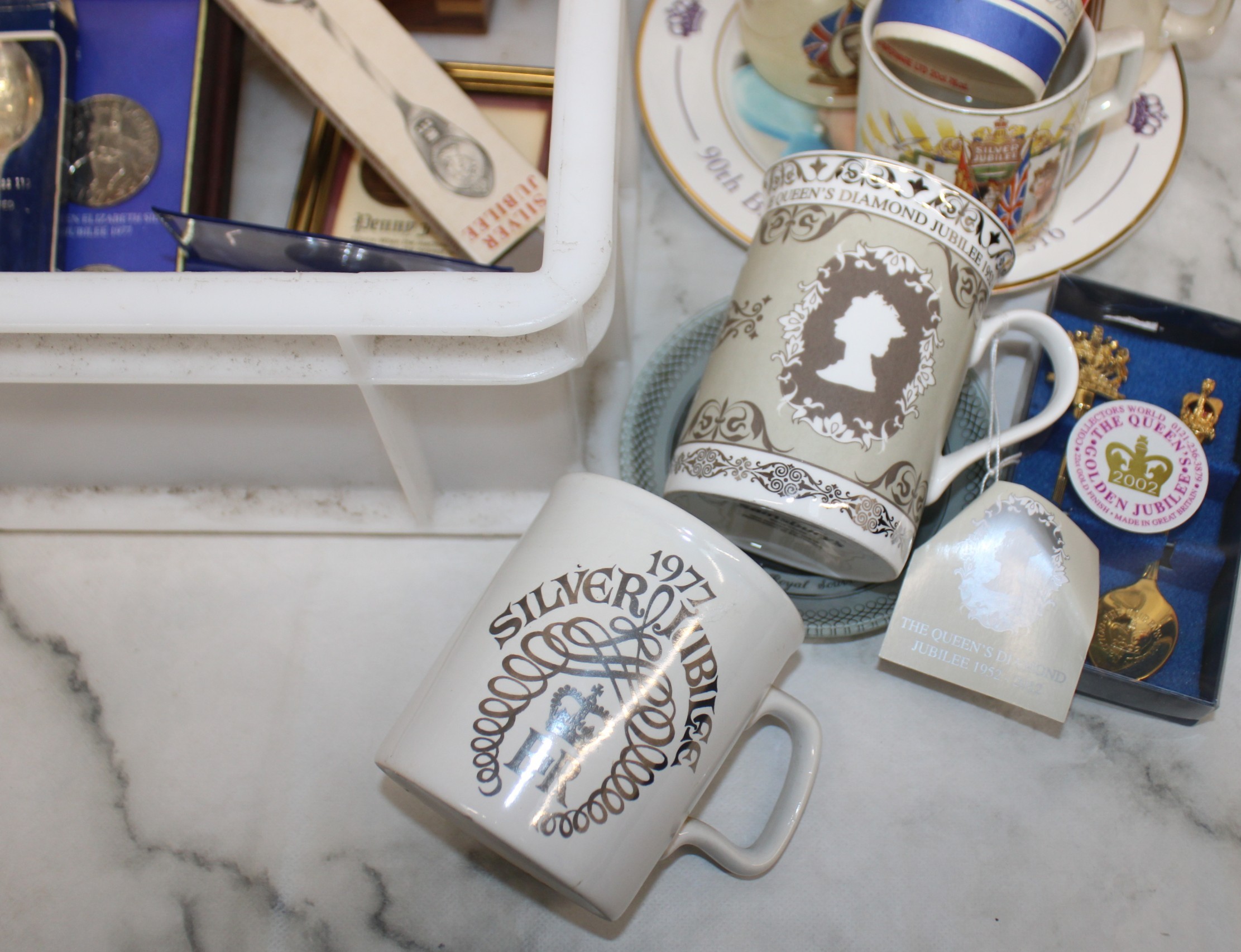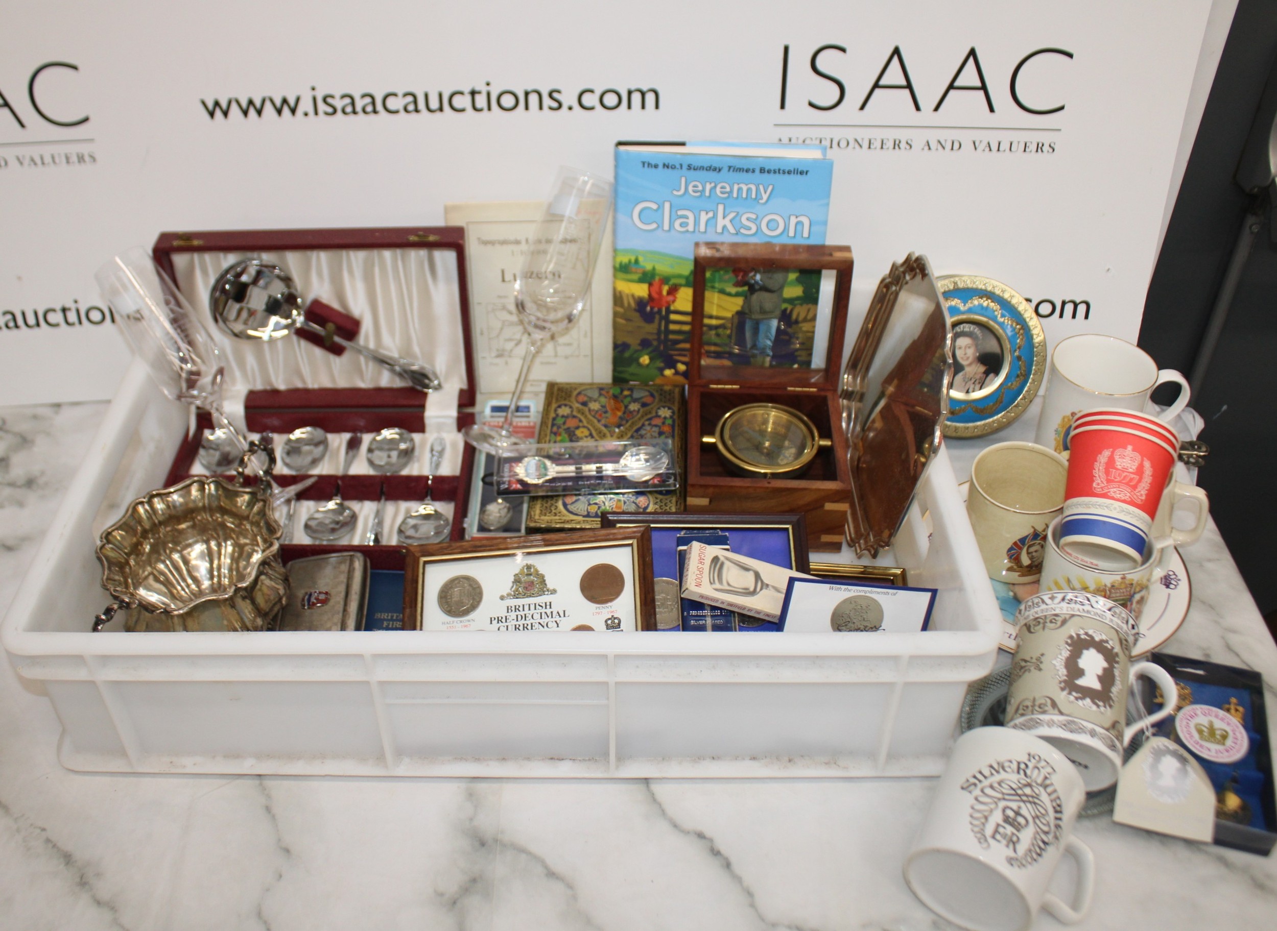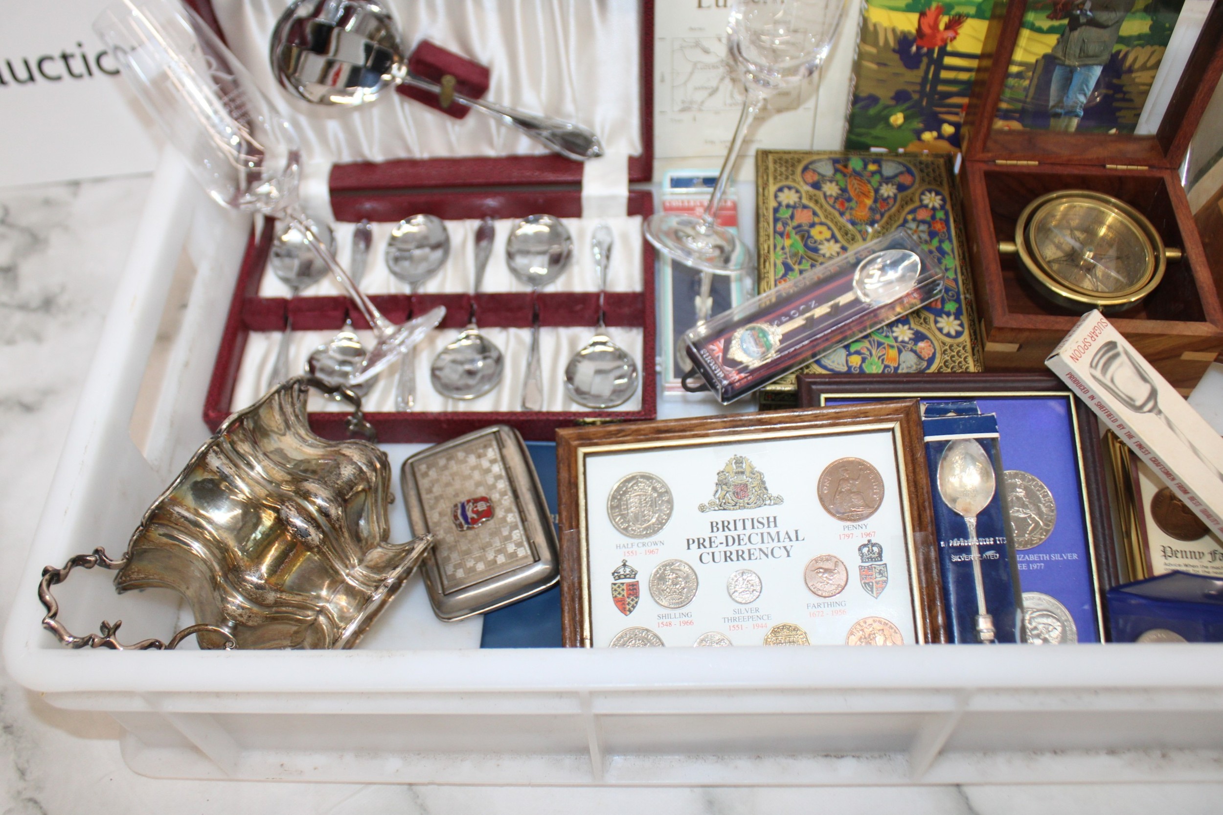 Mixed Collectable Items Inc- Silver Plate/Coins/Royalty/Tins/Etc All AS Found Tray Not IncludedCOLLECTION ONLY