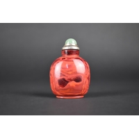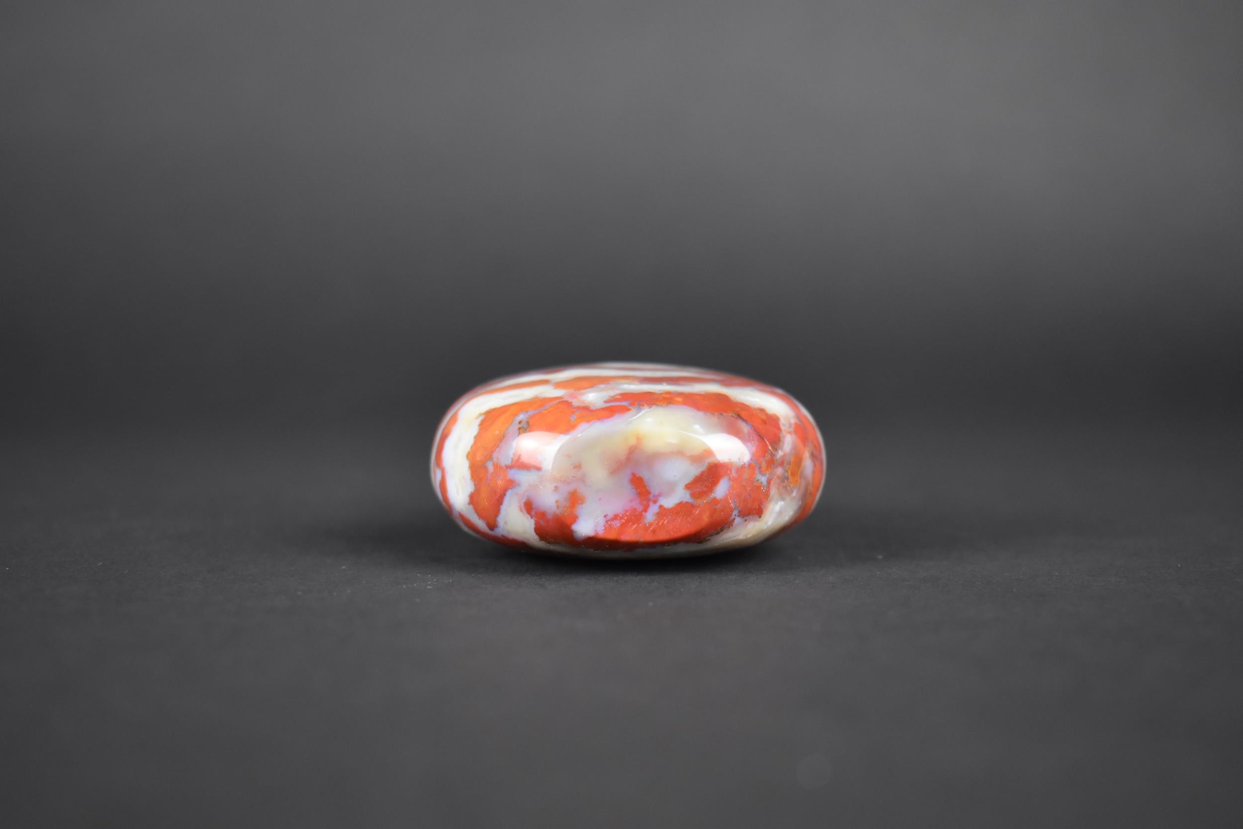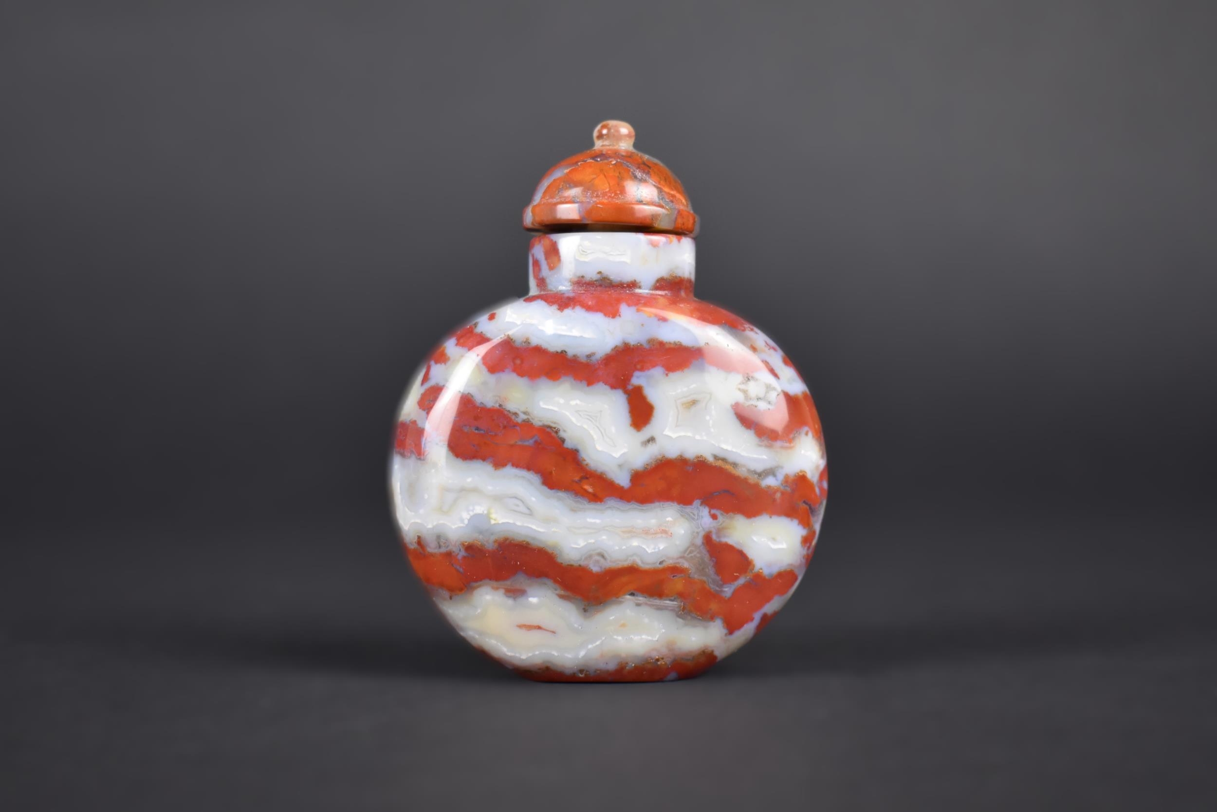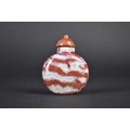 A Chinese Red and Grey Banded Hardstone Snuff Bottle with Stopper, 7.5cm