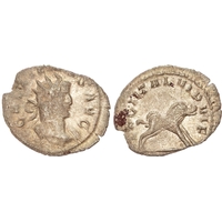 GALLIENVS AVG, radiate and cuirassed bust right. Rev. LEG I ITAL VI P VI F, boar standing right. (RIC 320; Cunetio 1443). Fine. Scarce.