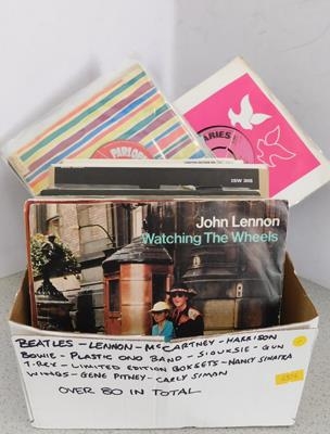 Box of 80+ 7" singles incl. Beatles, Lennon, Siouxsie etc. plus box sets