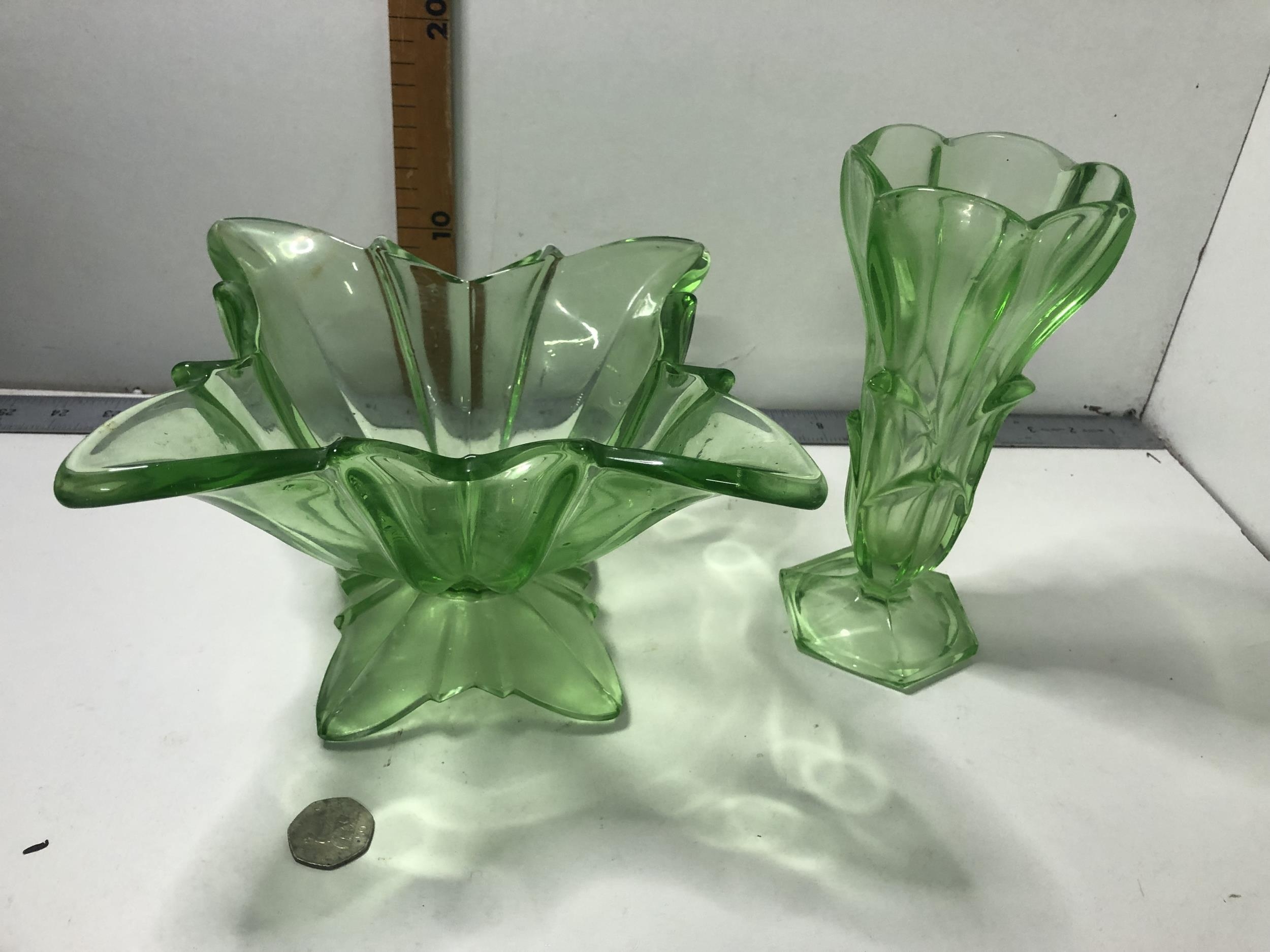 X2 green glass itemsPLEASE NOTE NOT POSTABLE