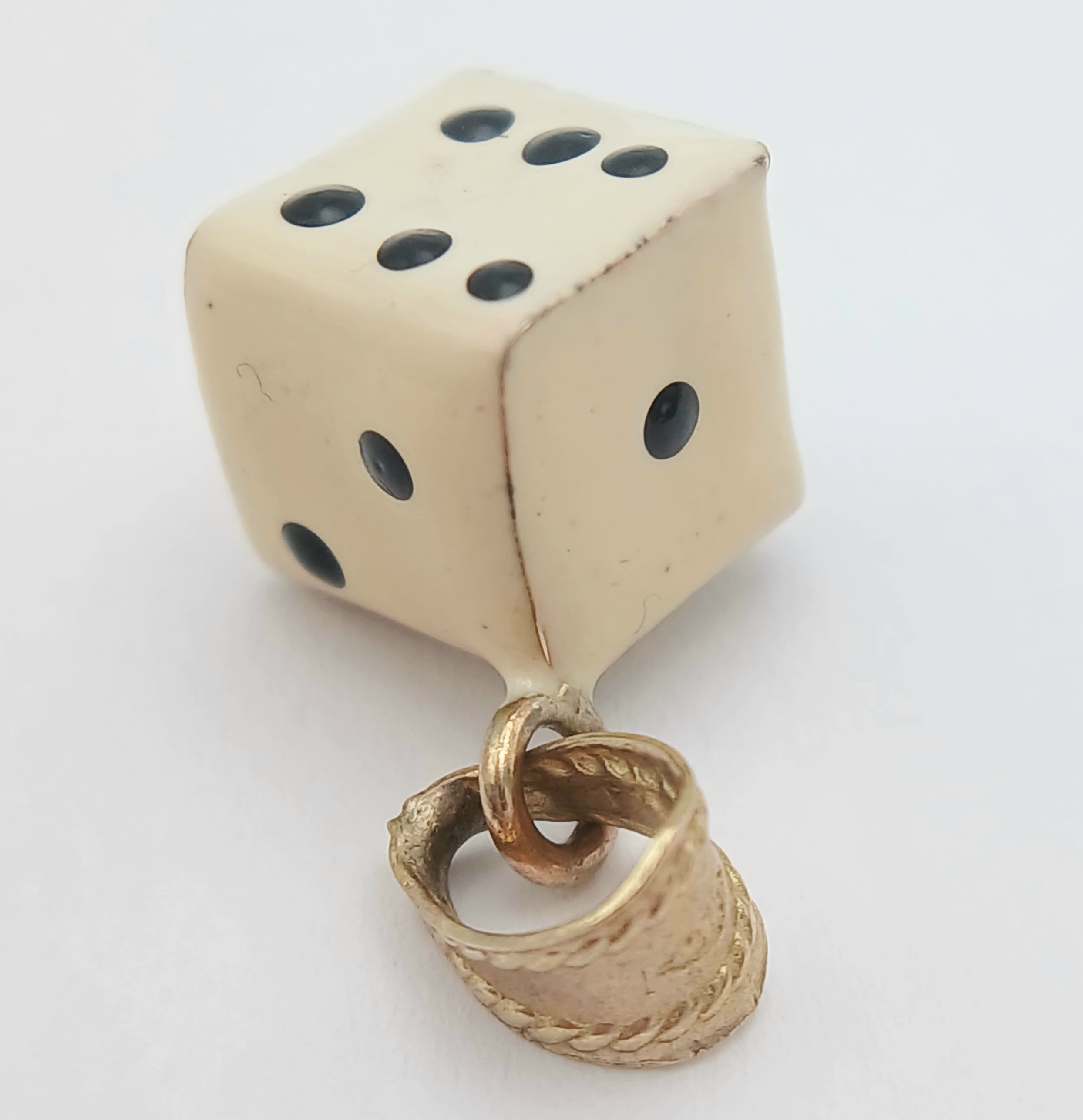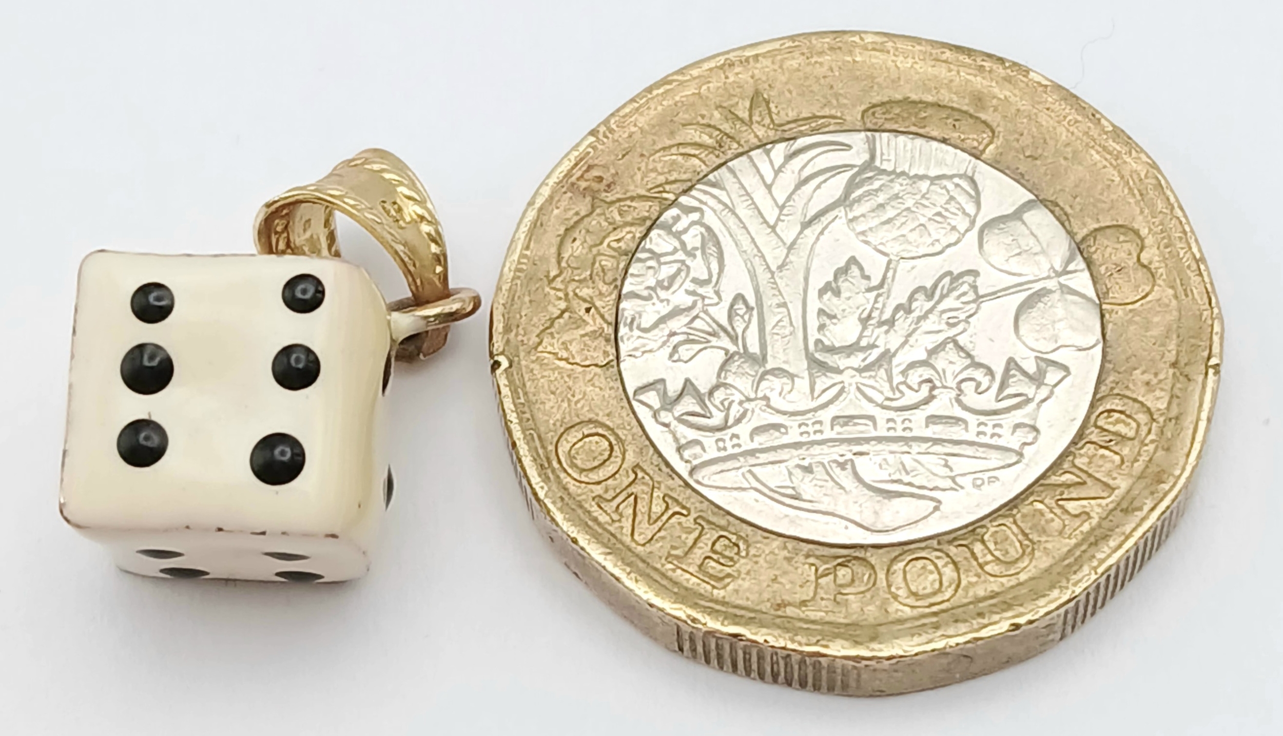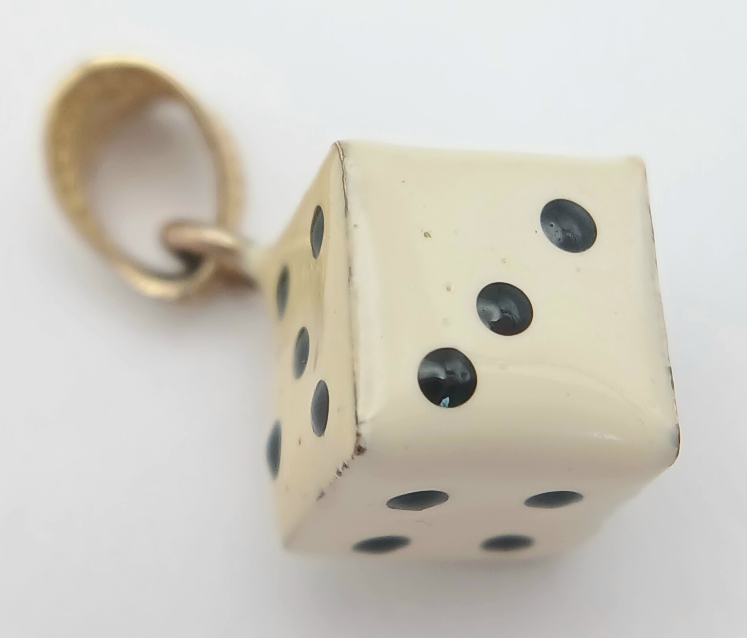 A 9K Yellow Gold, Enamelled, Dice Charm / Pendant. 1.8G. Sc ...