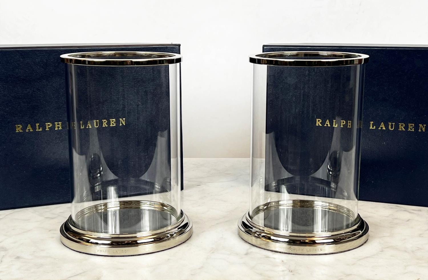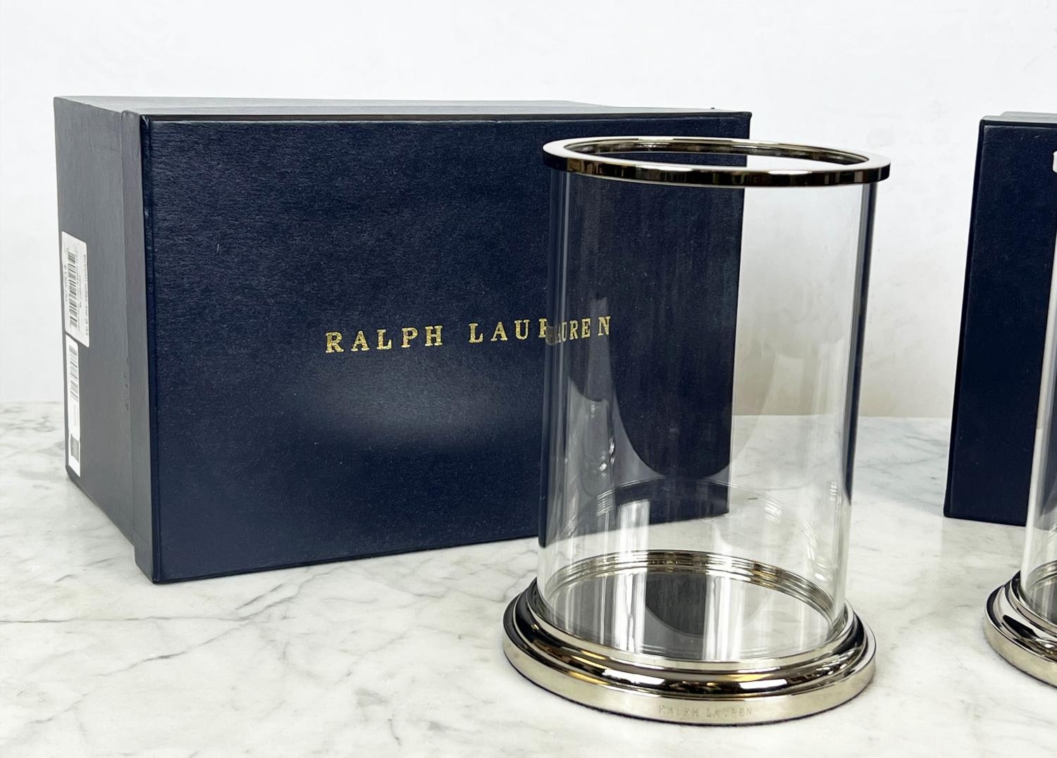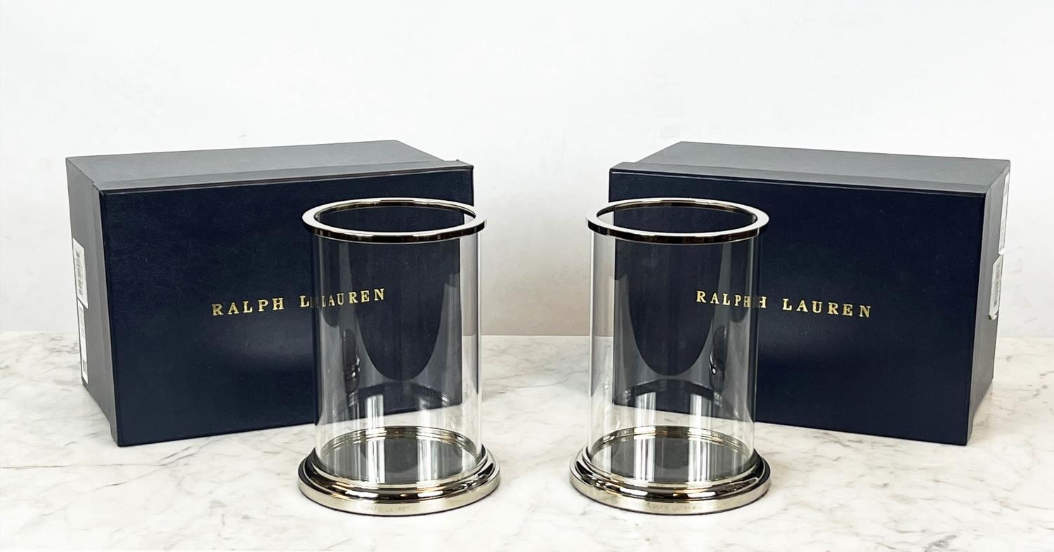 RALPH LAUREN BEDFORD HURRICANE LIGHTS, a pair, boxed, Approx 24cms H 14cms D (2)