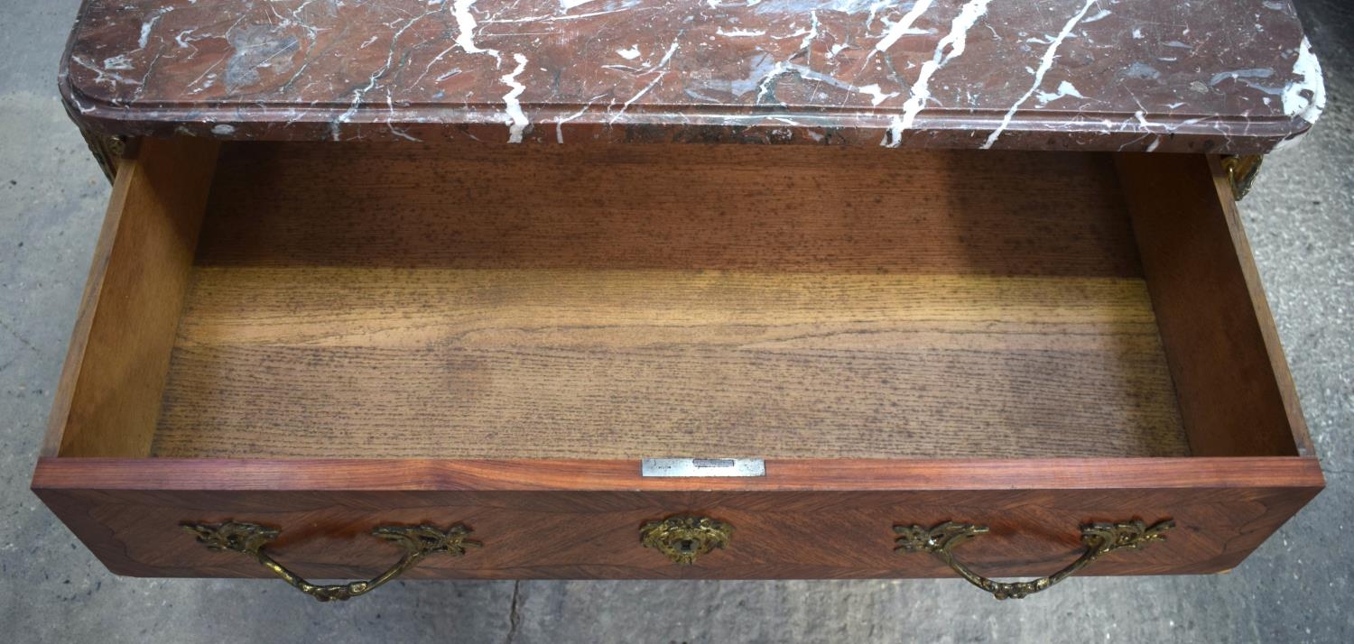 A LARGE 19TH CENTURY FRENCH KINGWOOD AND ORMOLU COMMODE with marble top and splayed feet. 102 cm x 80 cm.