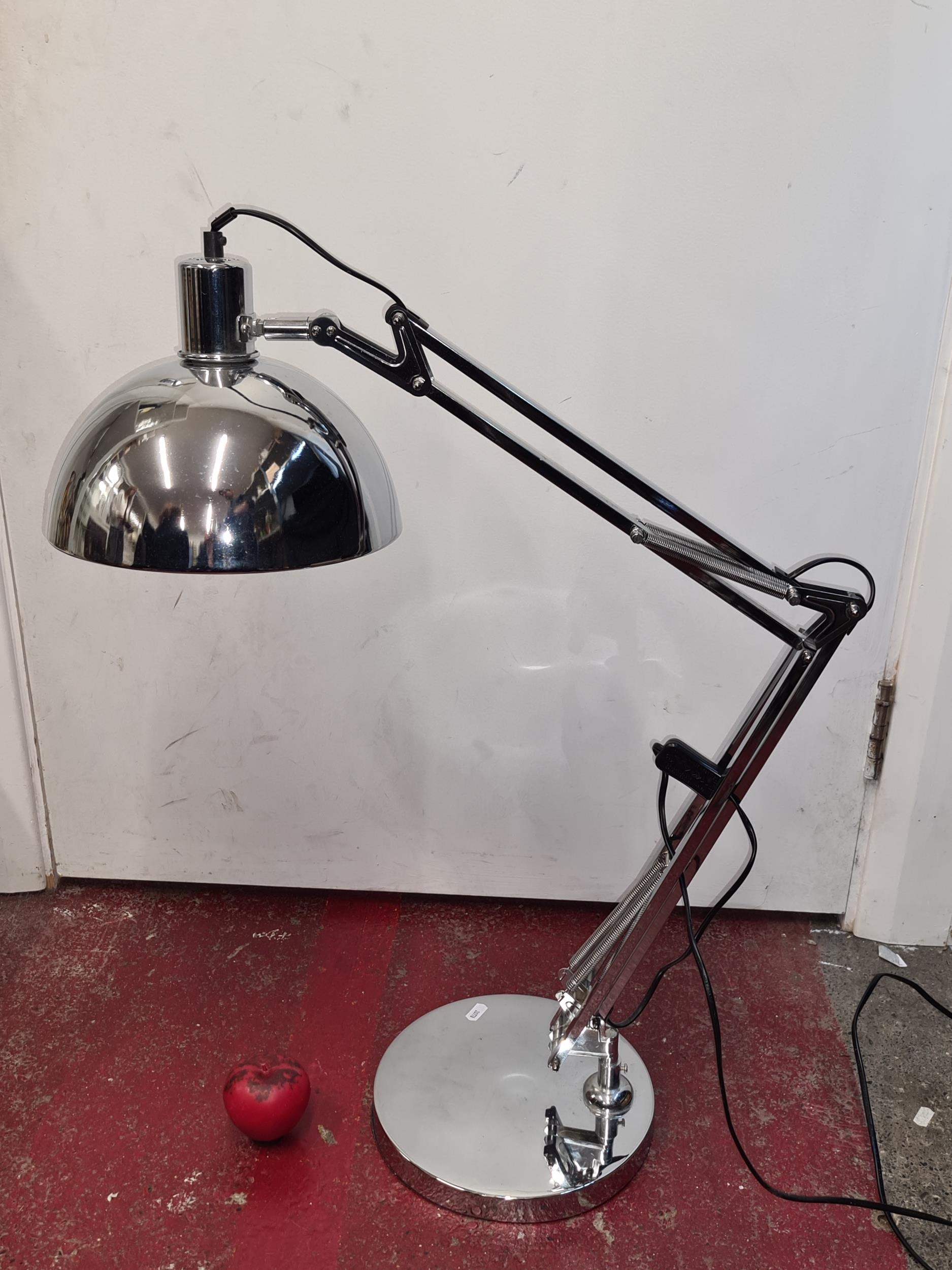 A large stylish and contemporary chrome angelpoise style lamp.