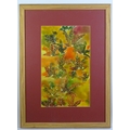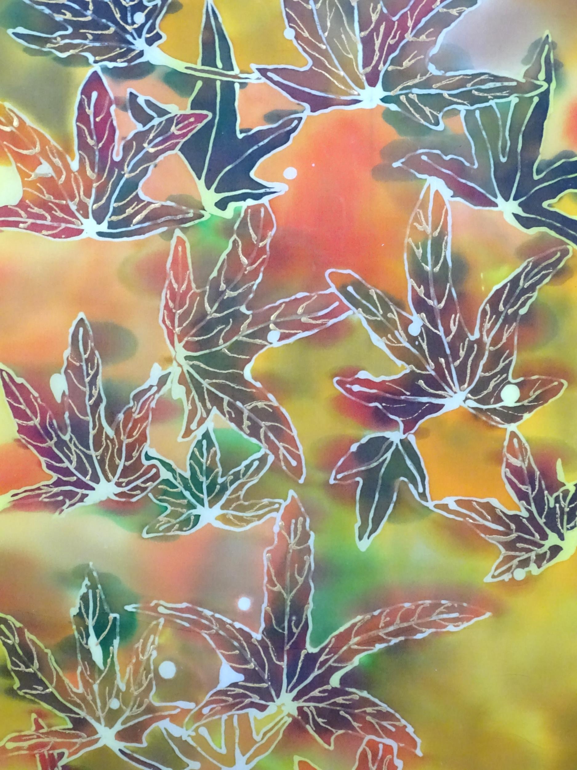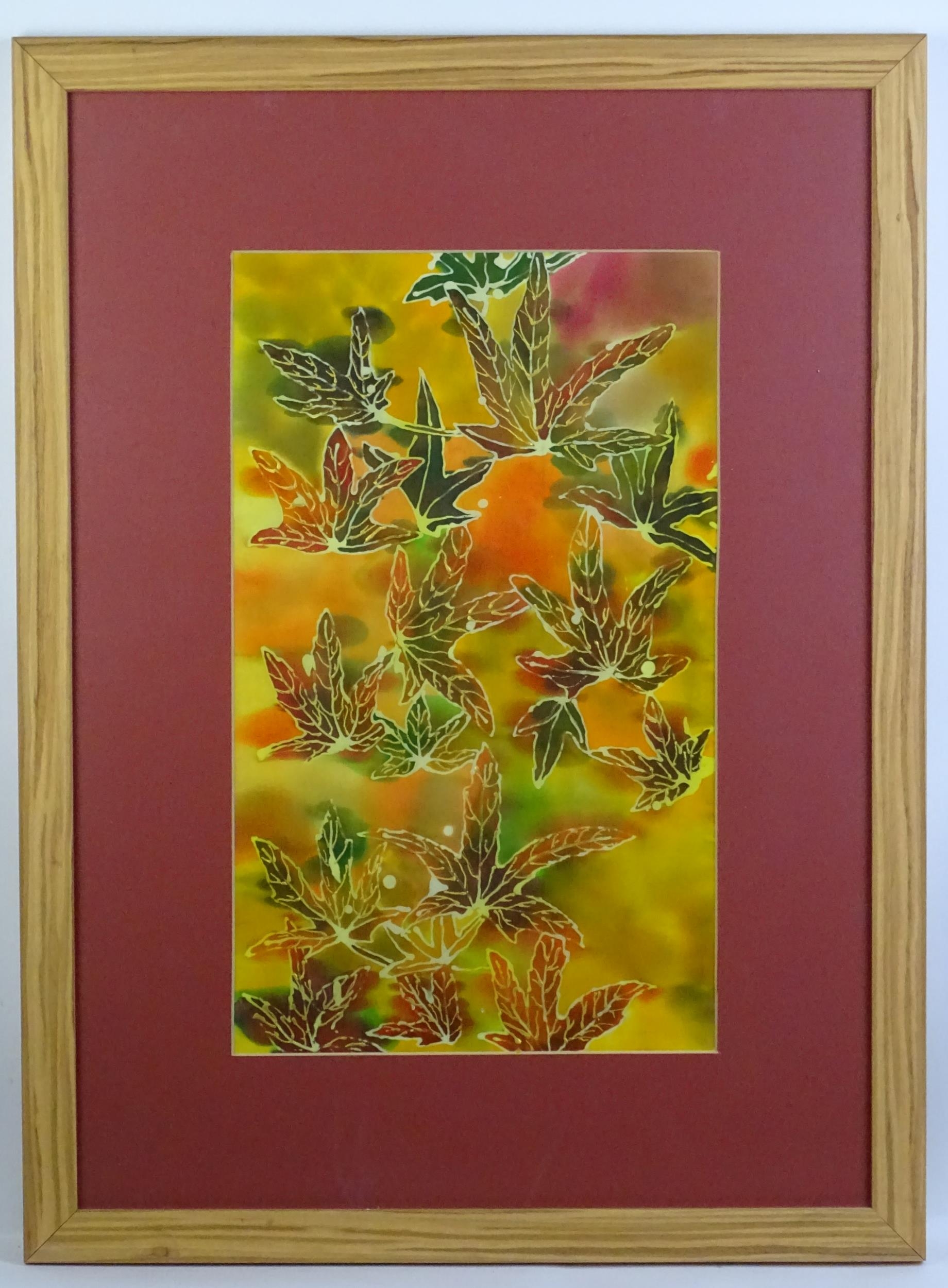 A 20thC batik picture depicting leaves. Approx. 18 3/4" x 11 1/2"