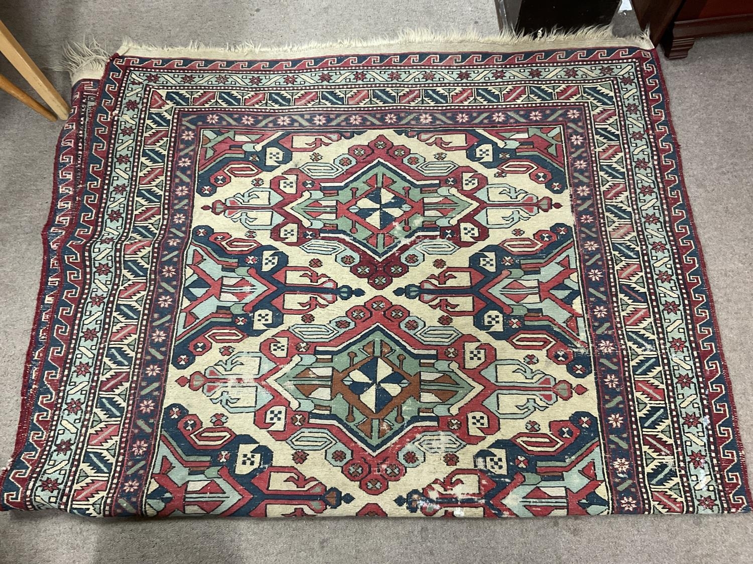 A Turkish hand knotted rug with geometric design. 244cm x 150cm.