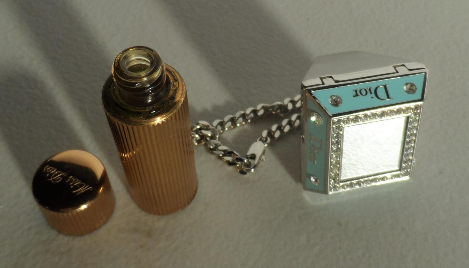 Christian Dior miniature re-fillable perfume bottle together with a Christian Dior compact ring (2)