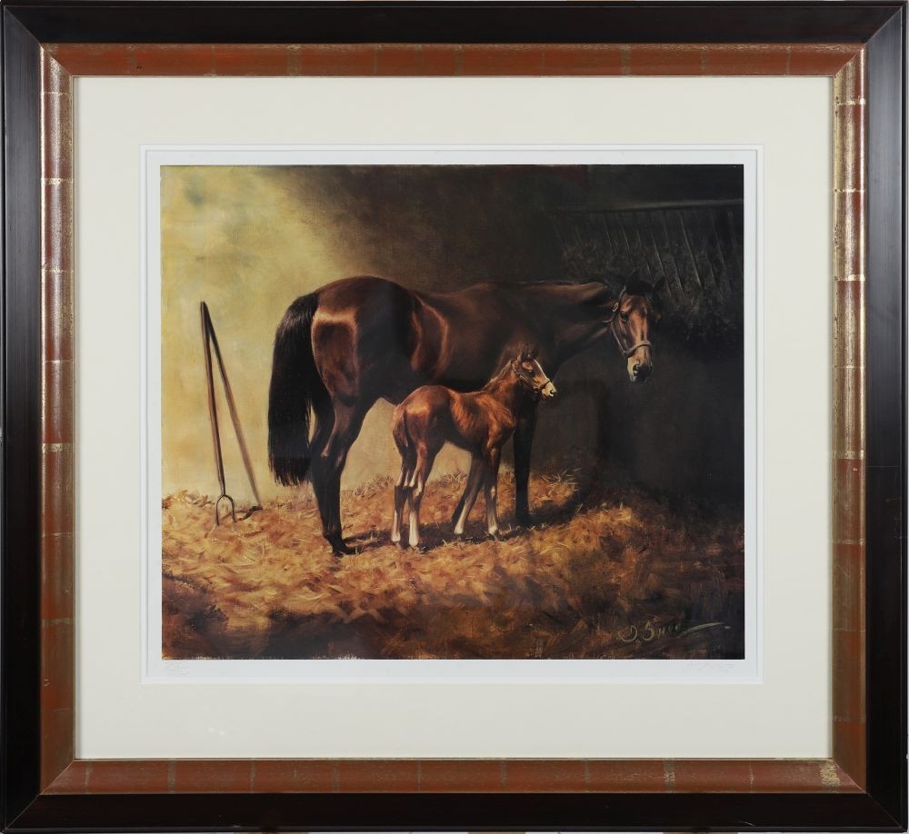 Mare and foal. Limited edition print. Image: 47 x 50 cm. Framed: 75 x 80 cm. PICTURES AND PRINTS Tuesday 11th March 2025 Approximate Time 16:37:18