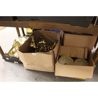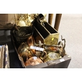 A TRAY OF ASSORTED METALWARE TO INCLUDE COPPER AND BRASS EXAMPLES