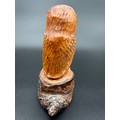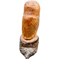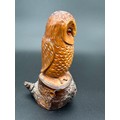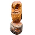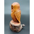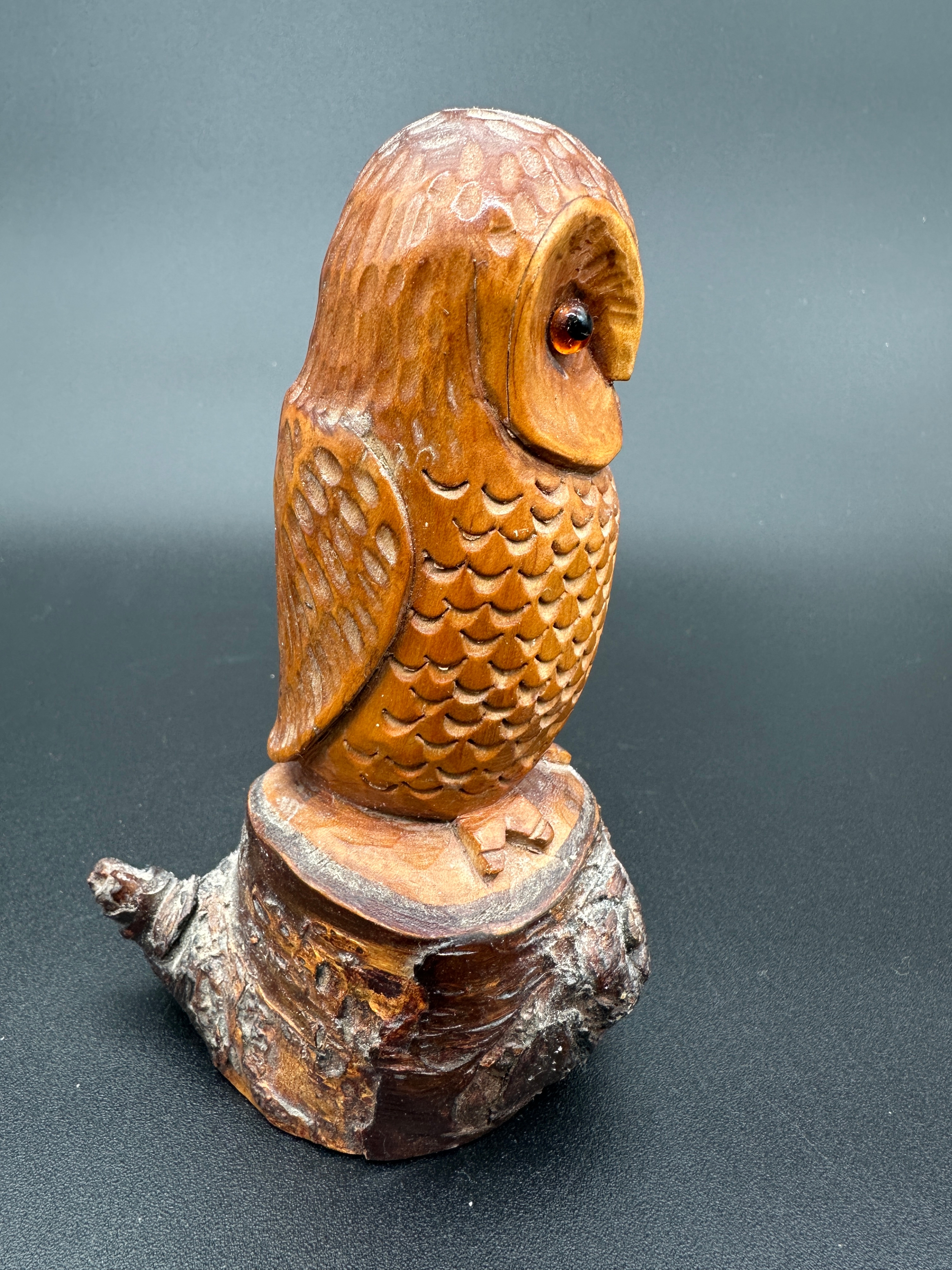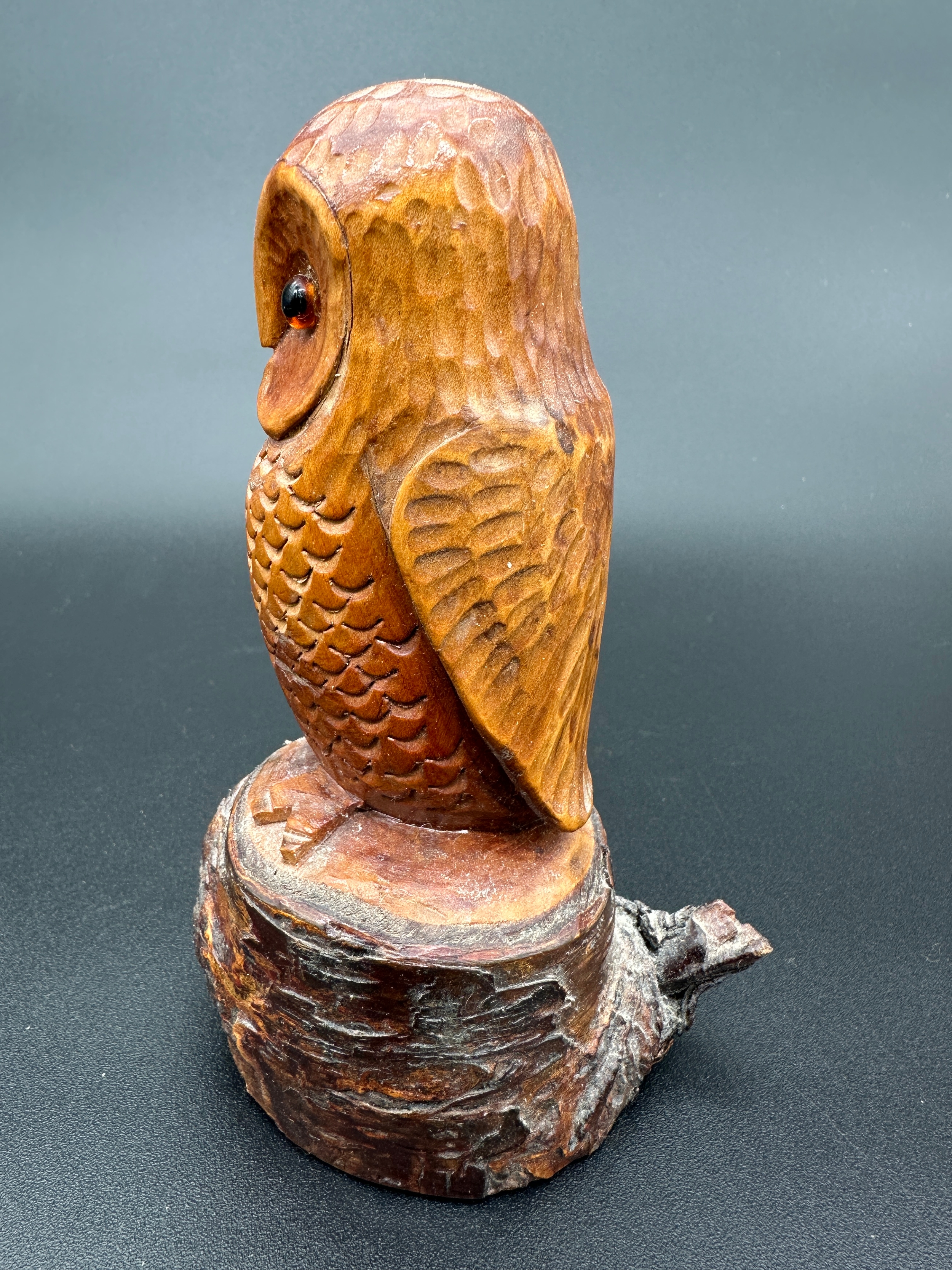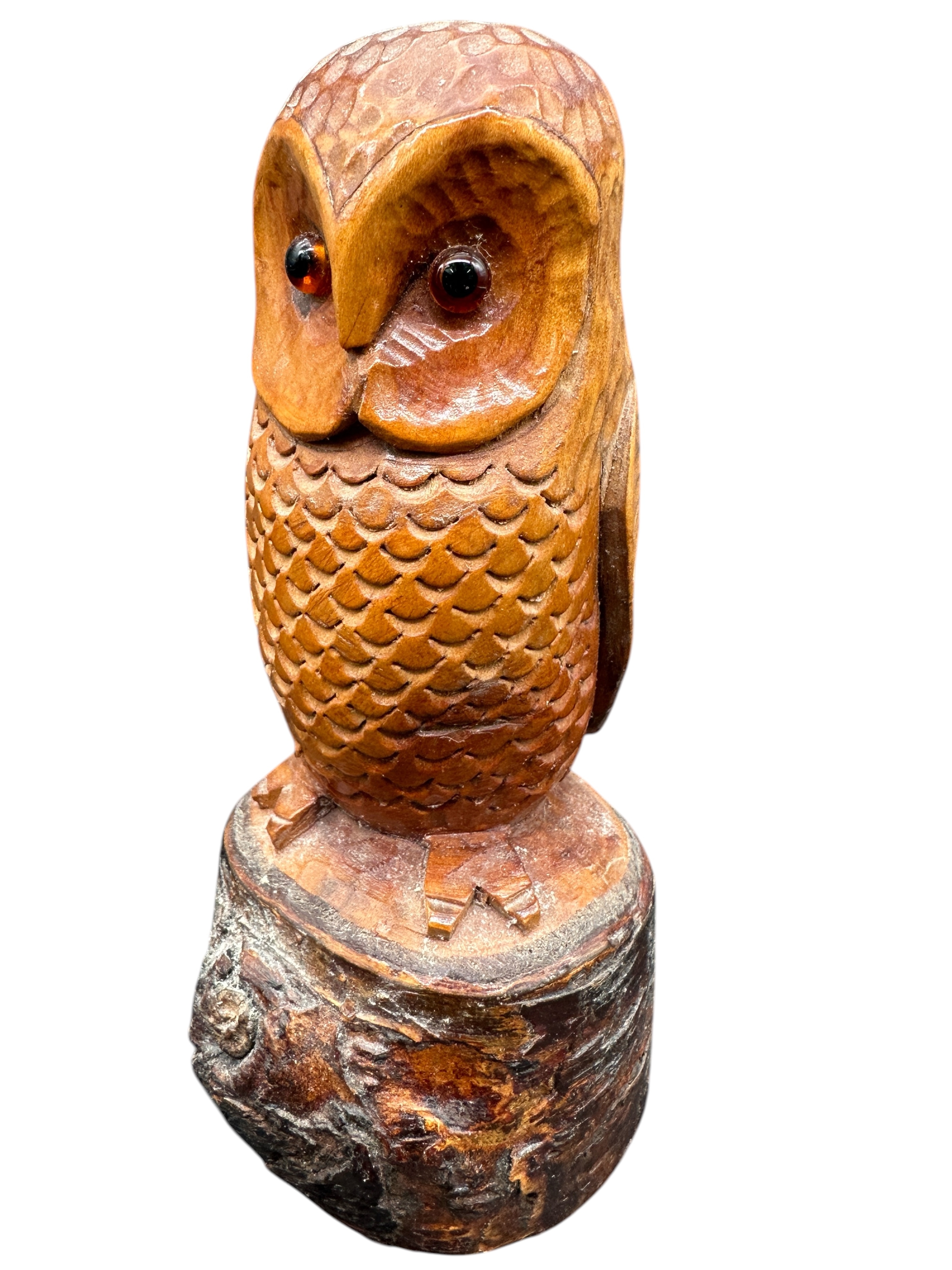 Carved Wooden Owl Sculpture with Glass Eyes