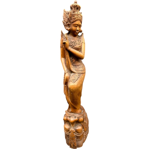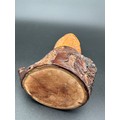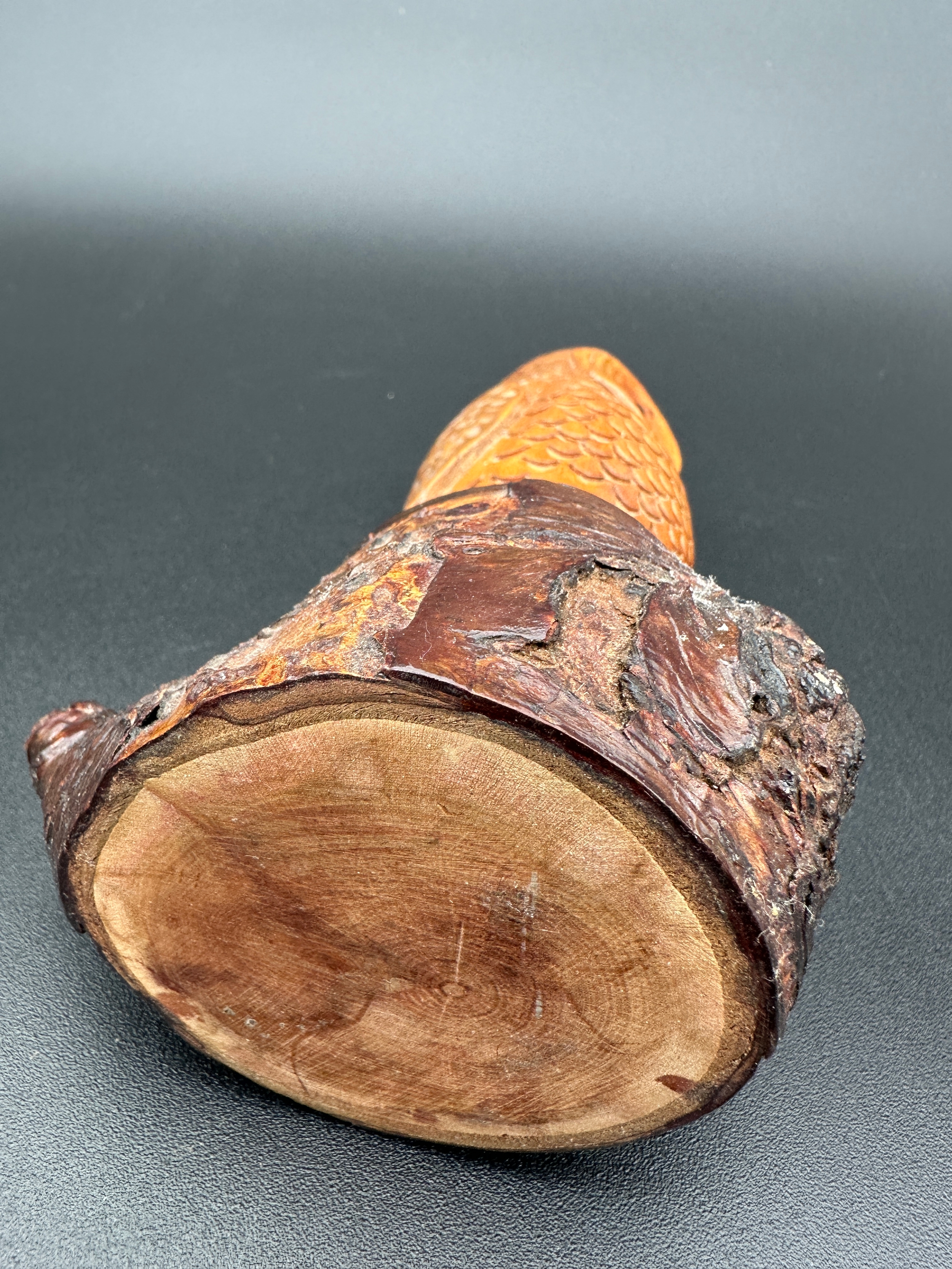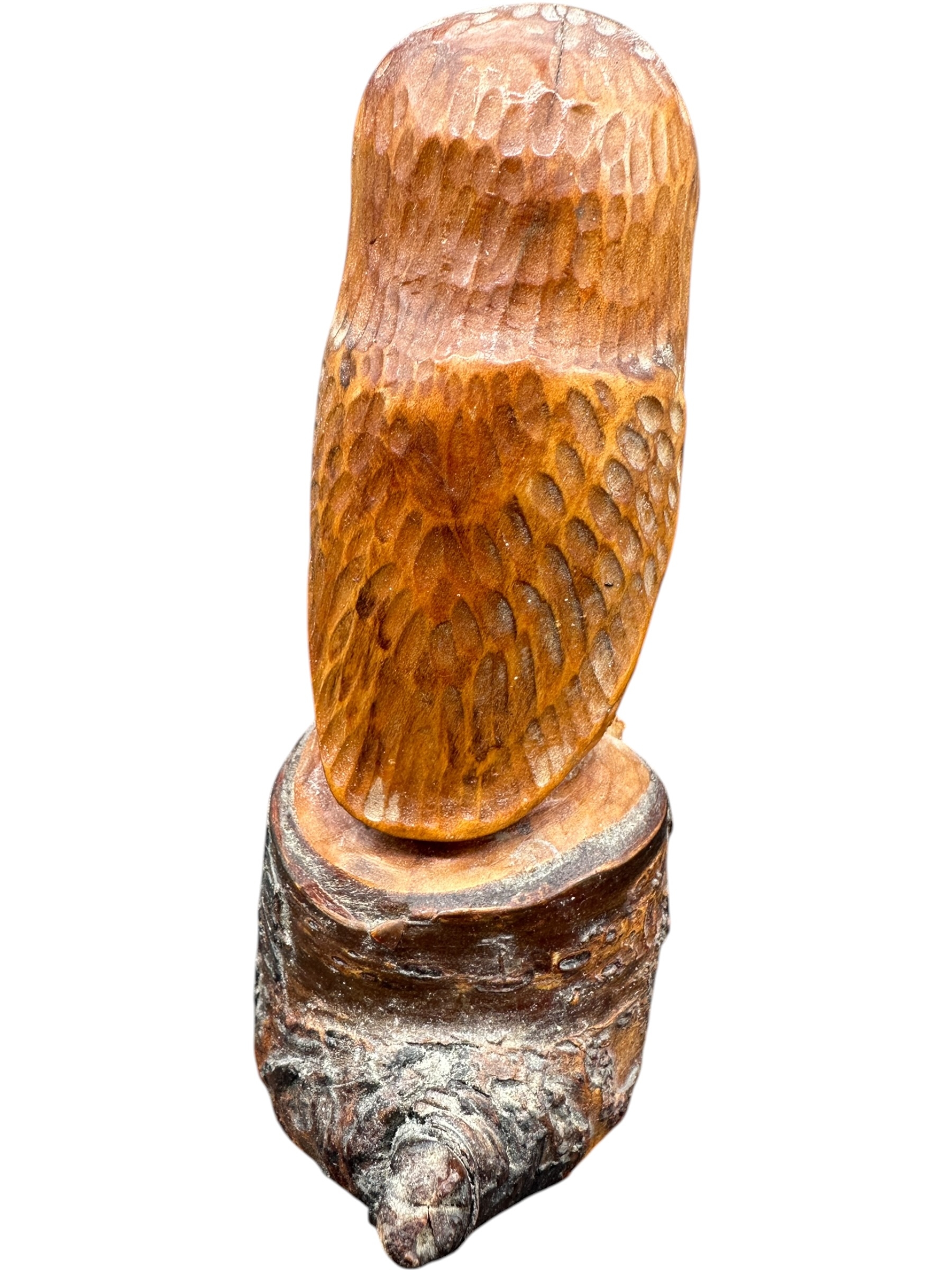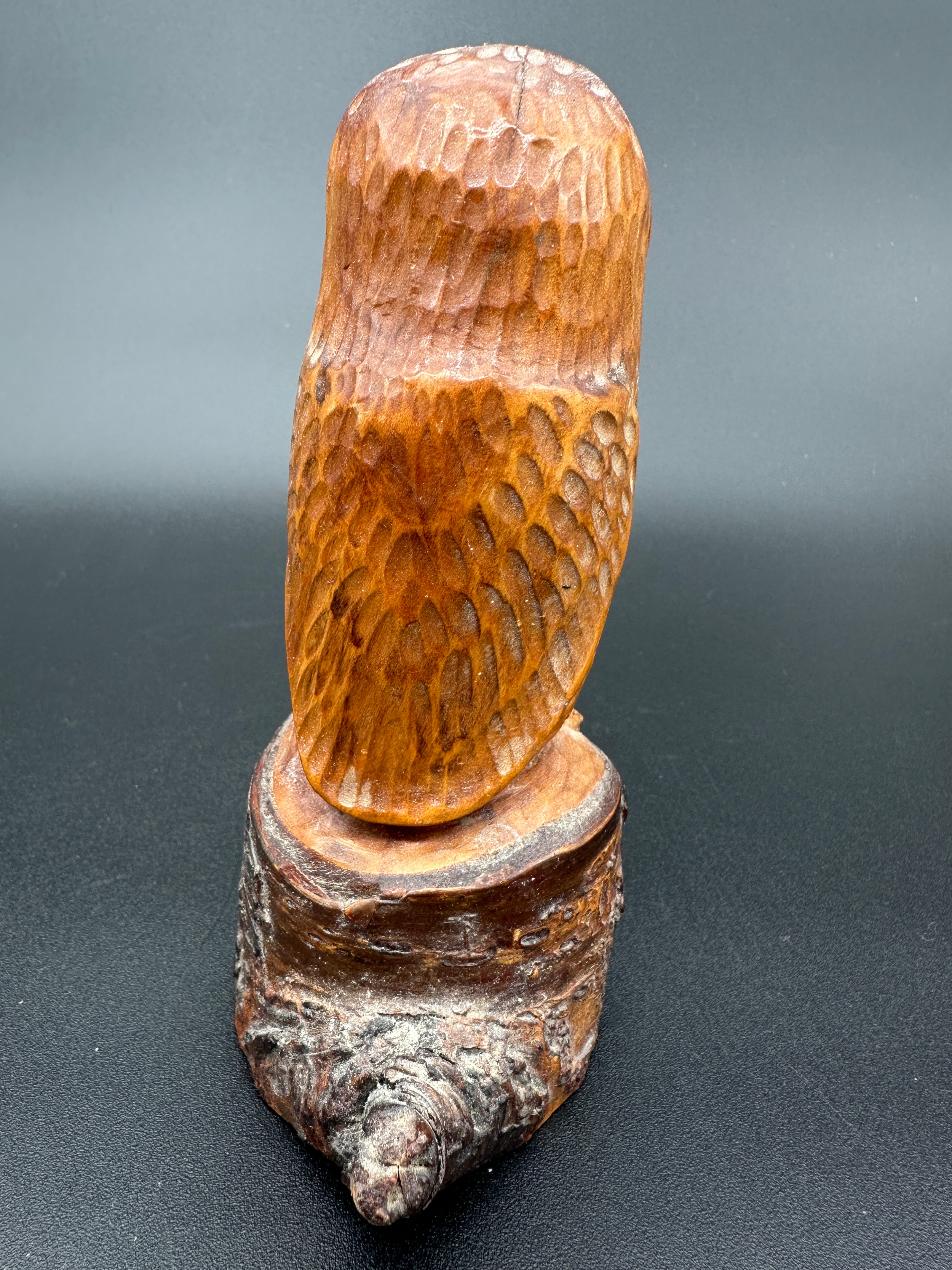Carved Wooden Owl Sculpture with Glass Eyes