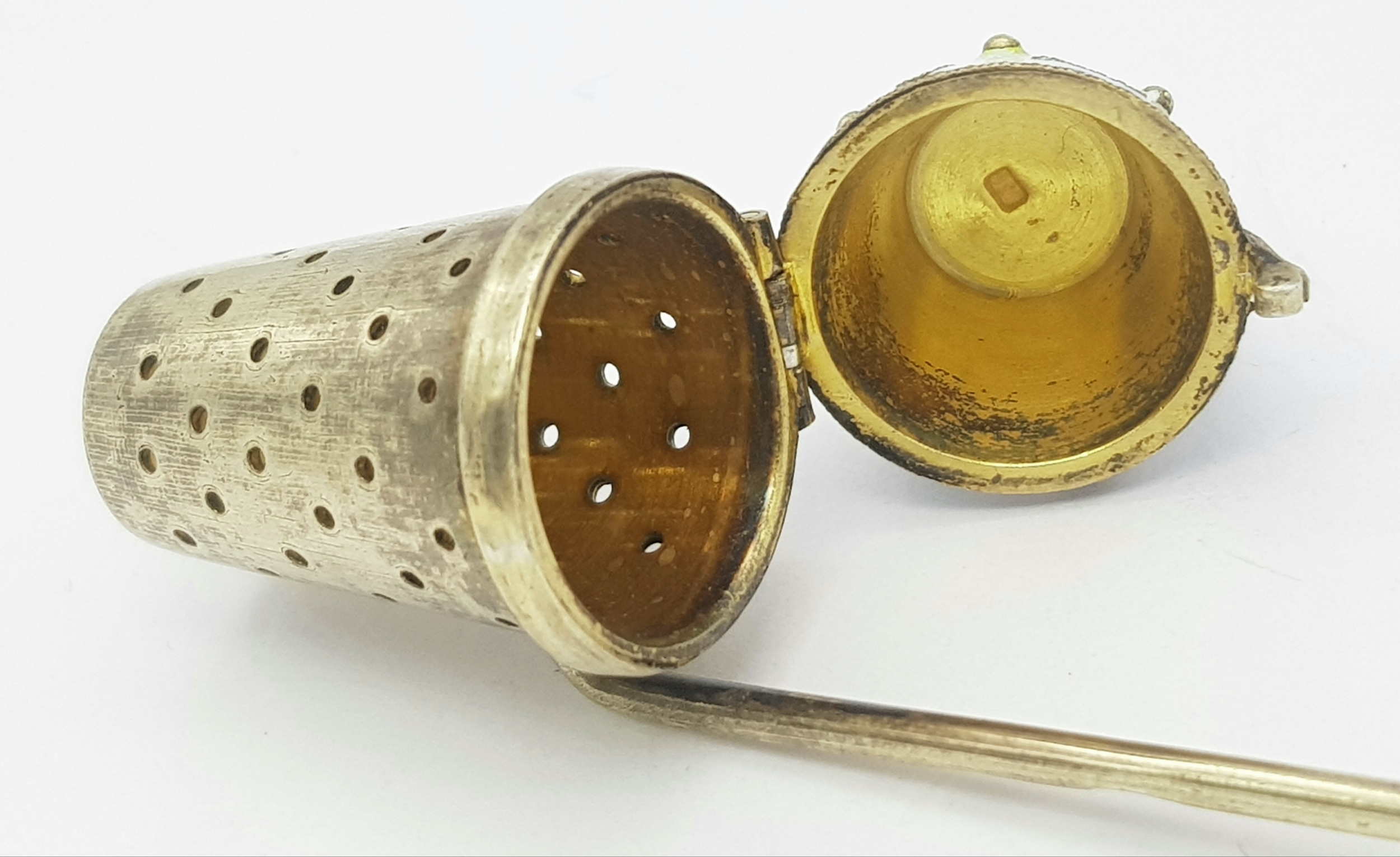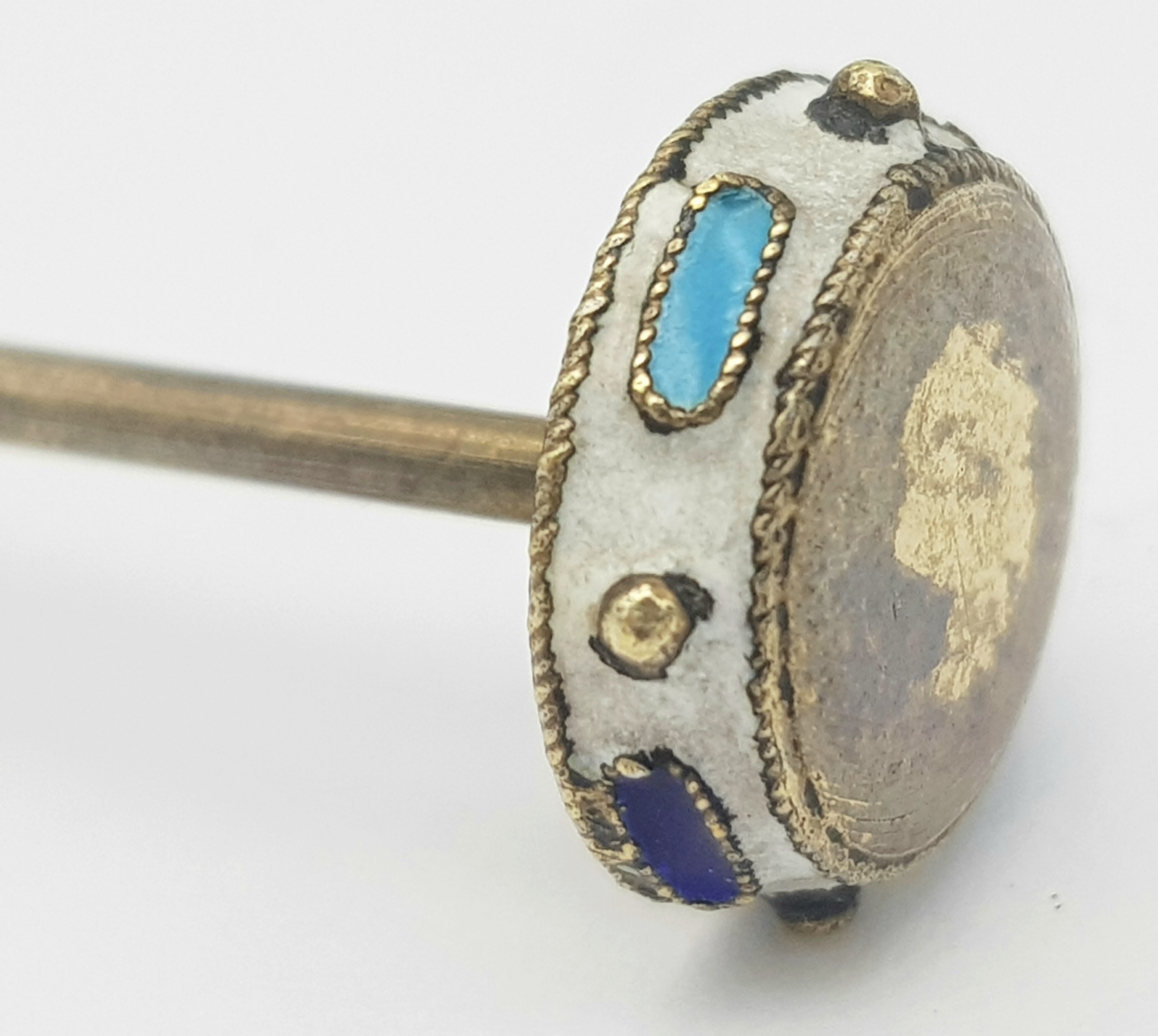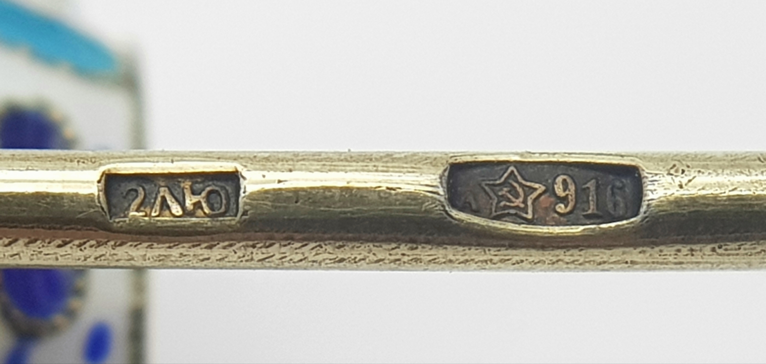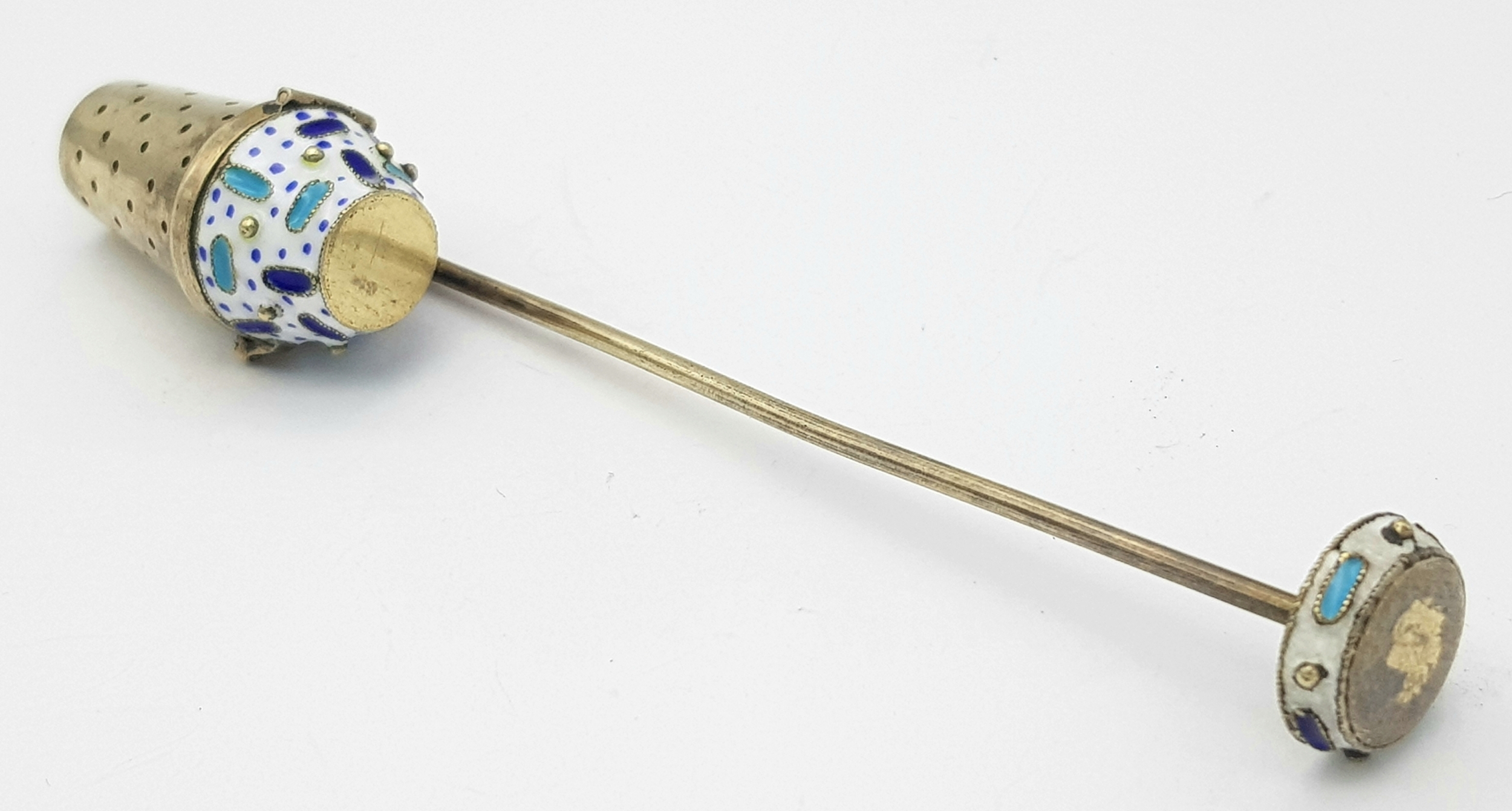 An Antique Russian 916 Silver and Enamel Cloisonne Tea Strainer. 11cm. 18.7g.