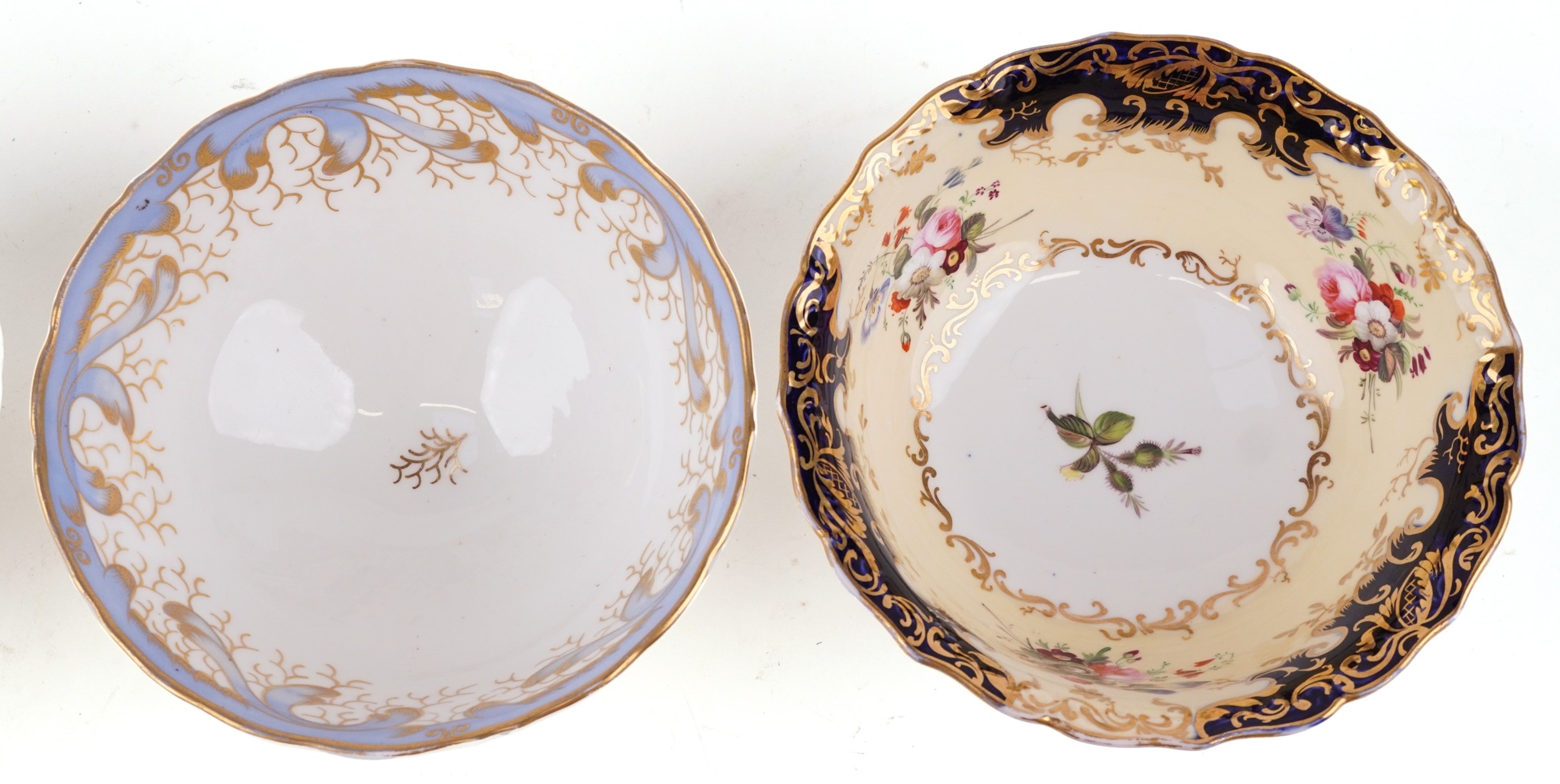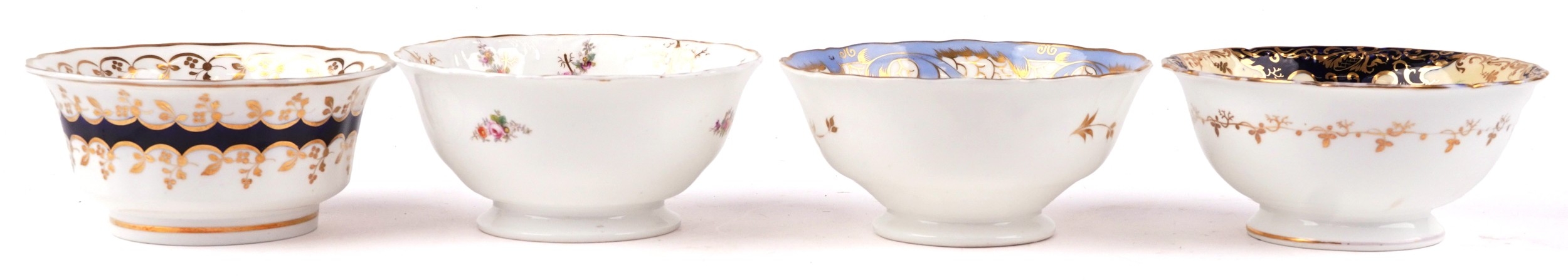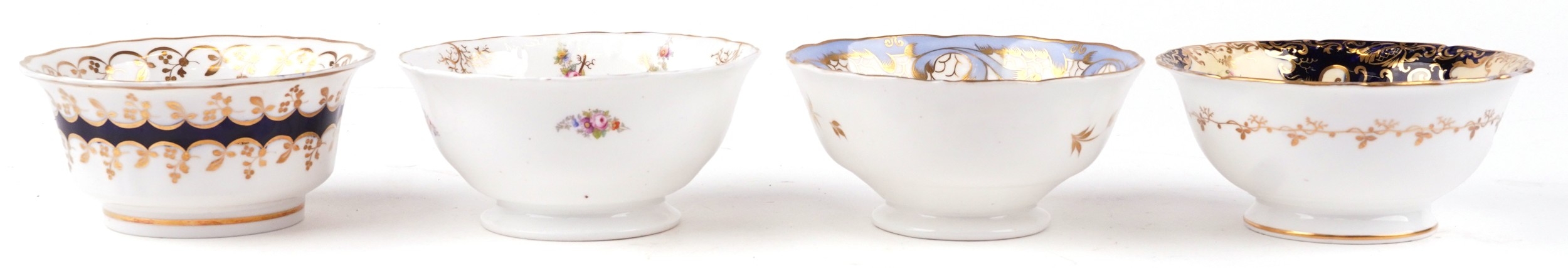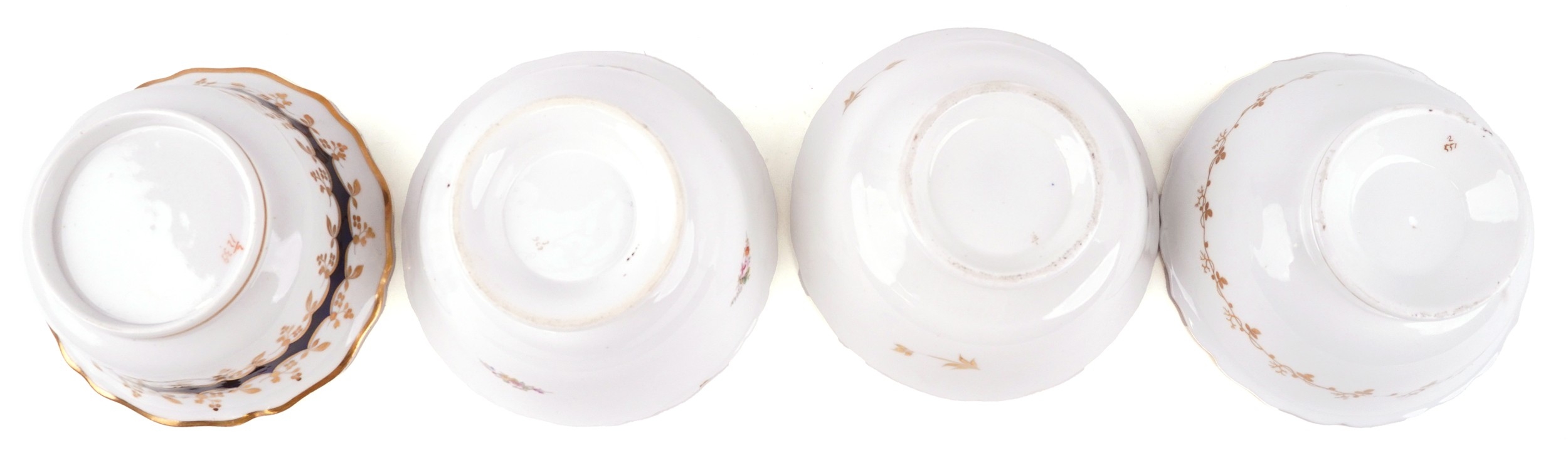 Four 19th century porcelain bowls, each with hand painted floral decoration, the largest 18cm in diameter.