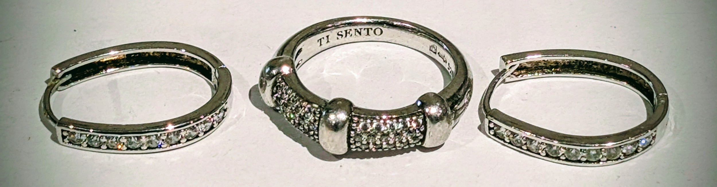 TI SENTO Sterling Silver and Cubic Zirconia Pave Ring & Pair of Silver Complimenting Earrings