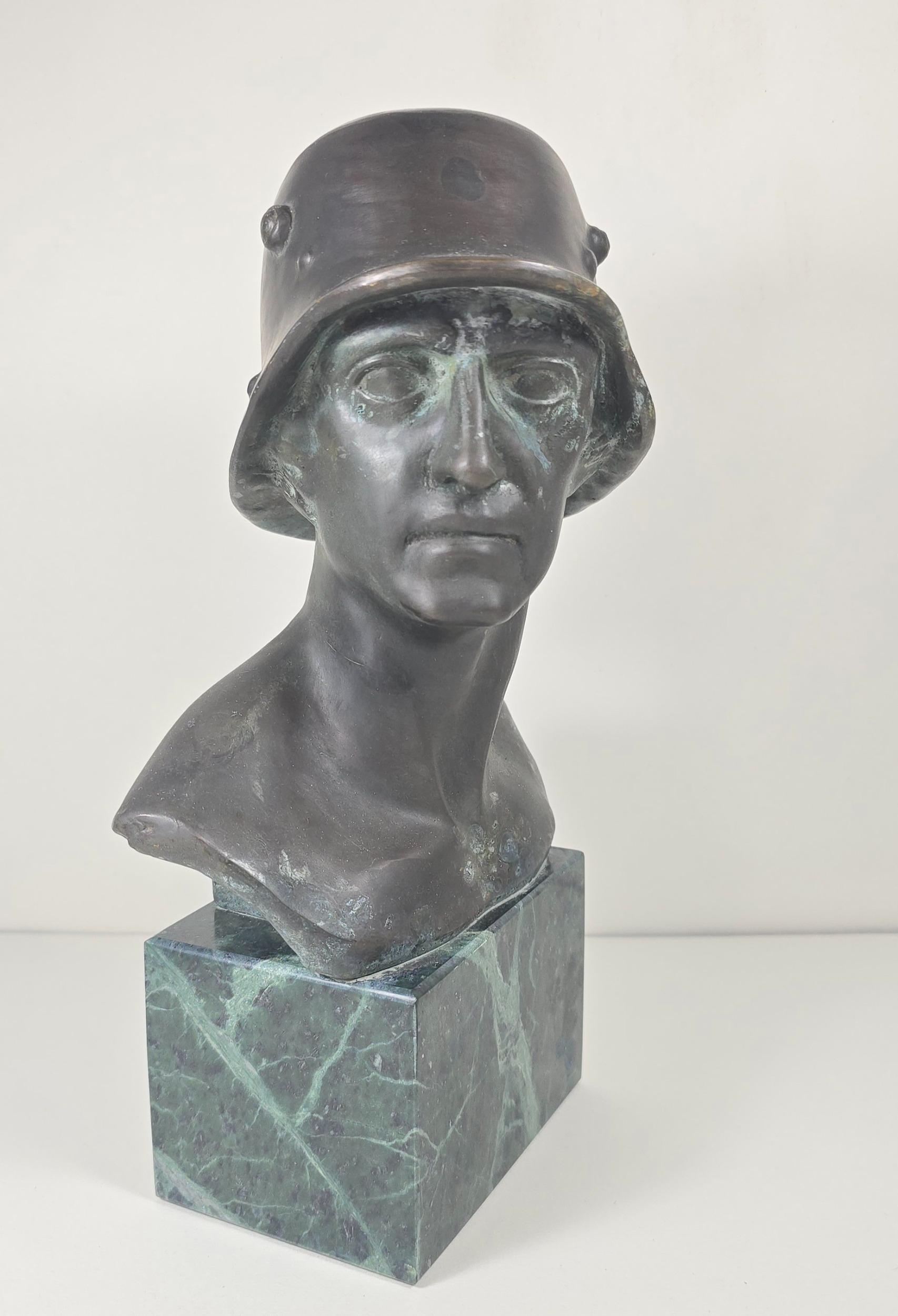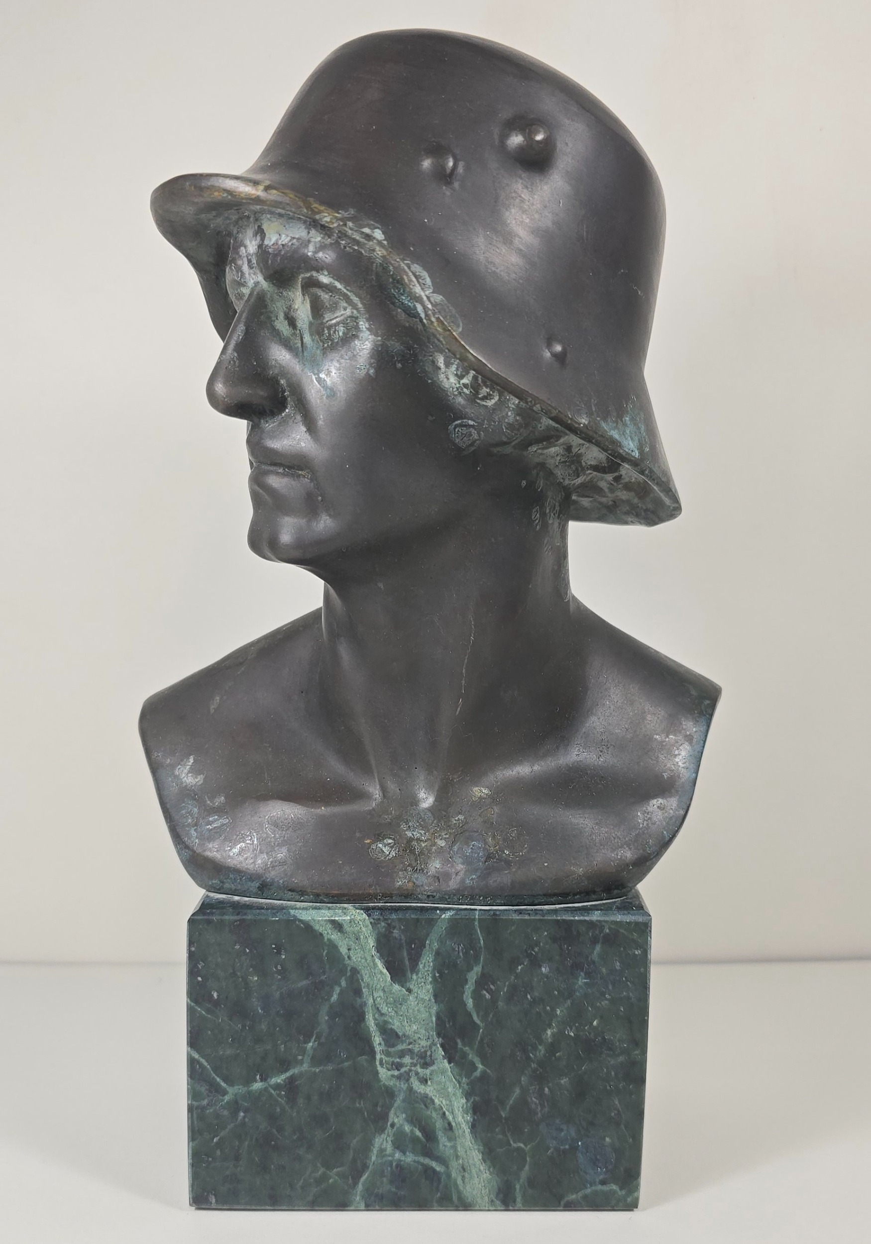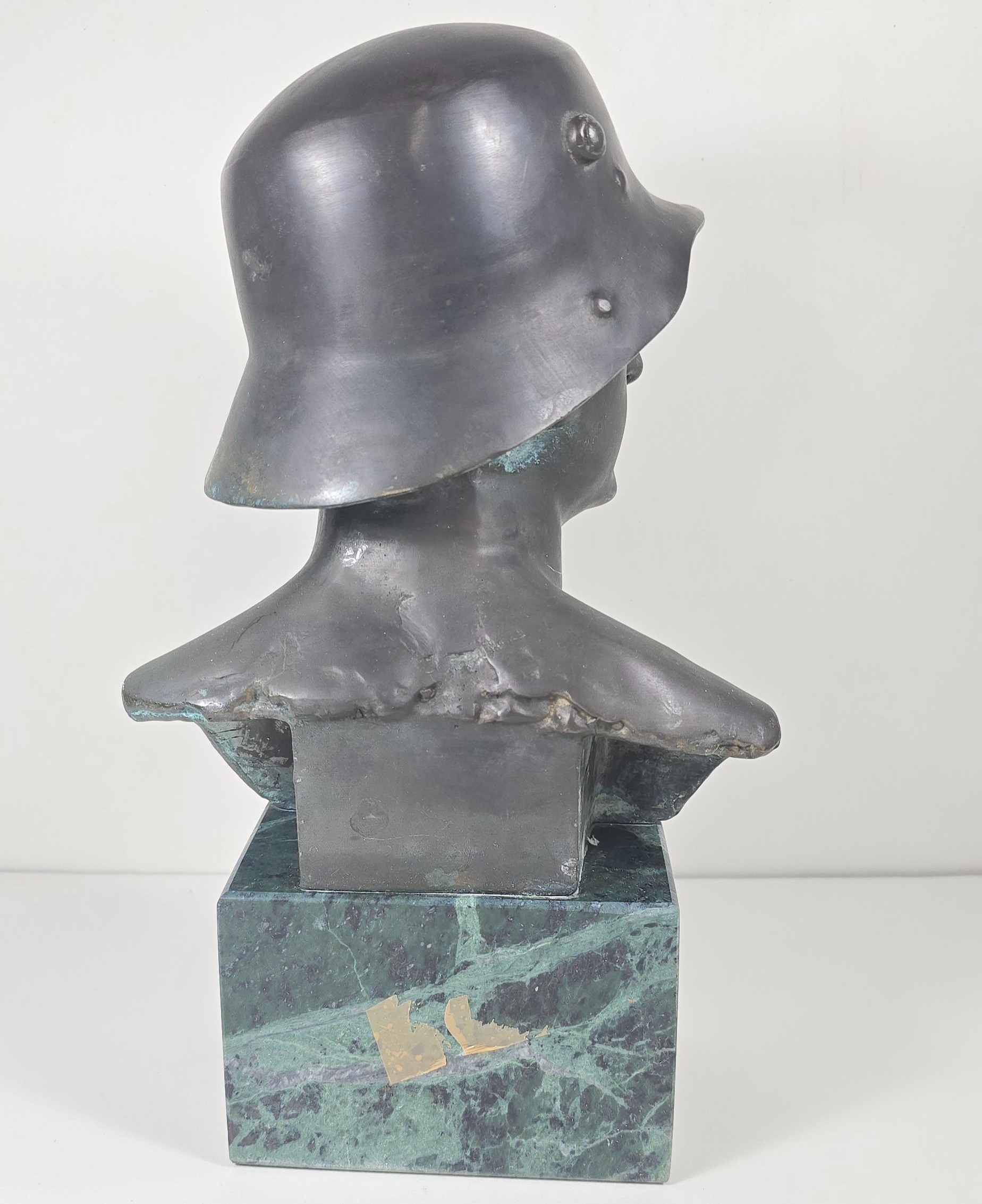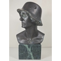 Bronzed coloured bust of a German soldier stamped F.P Zimer, approximately 10 inches high.