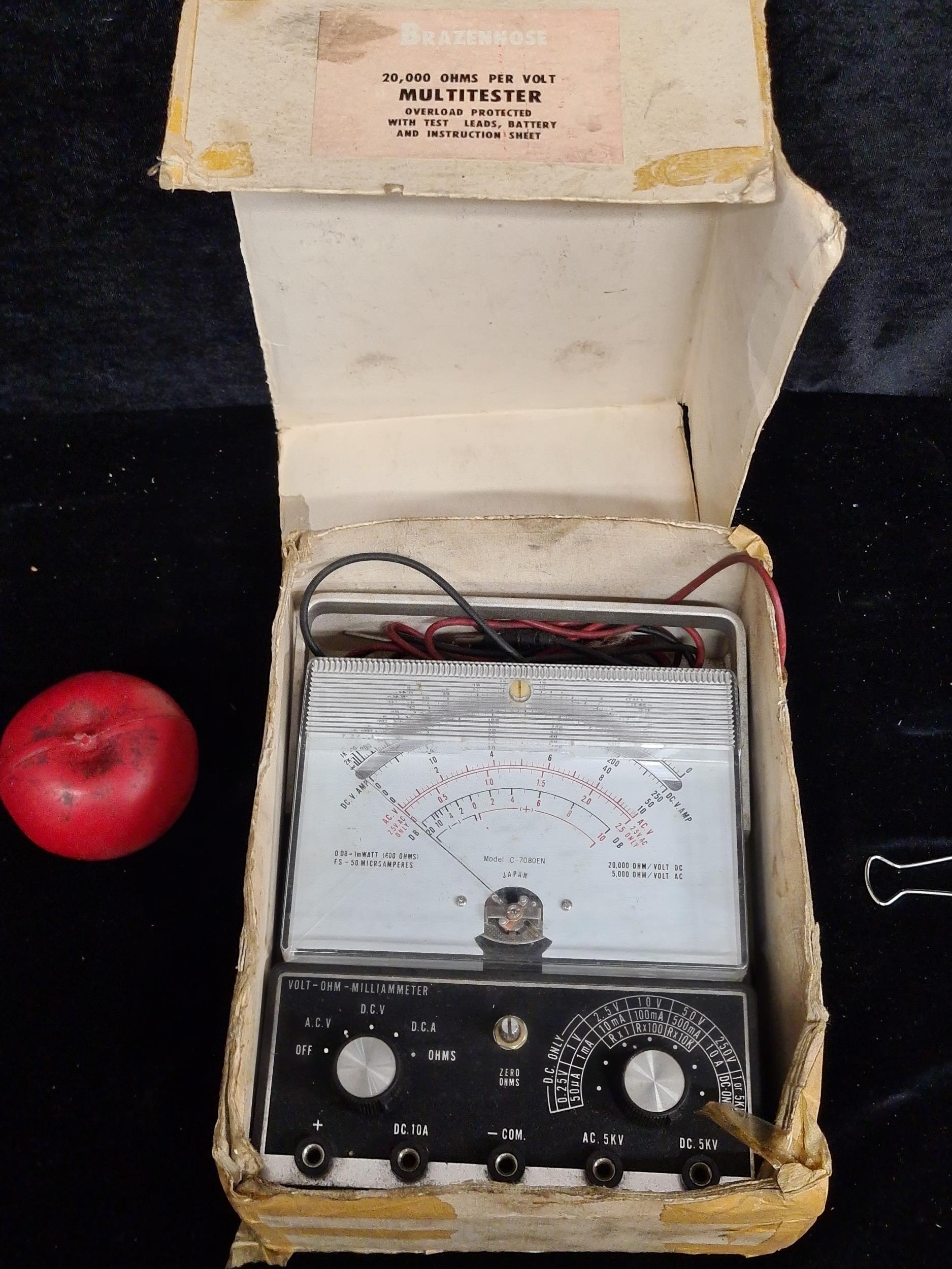 A large ''Brazennose' 1970s Analog Ohm / Volt Multimeter Model C-7080EN Japan in original box.