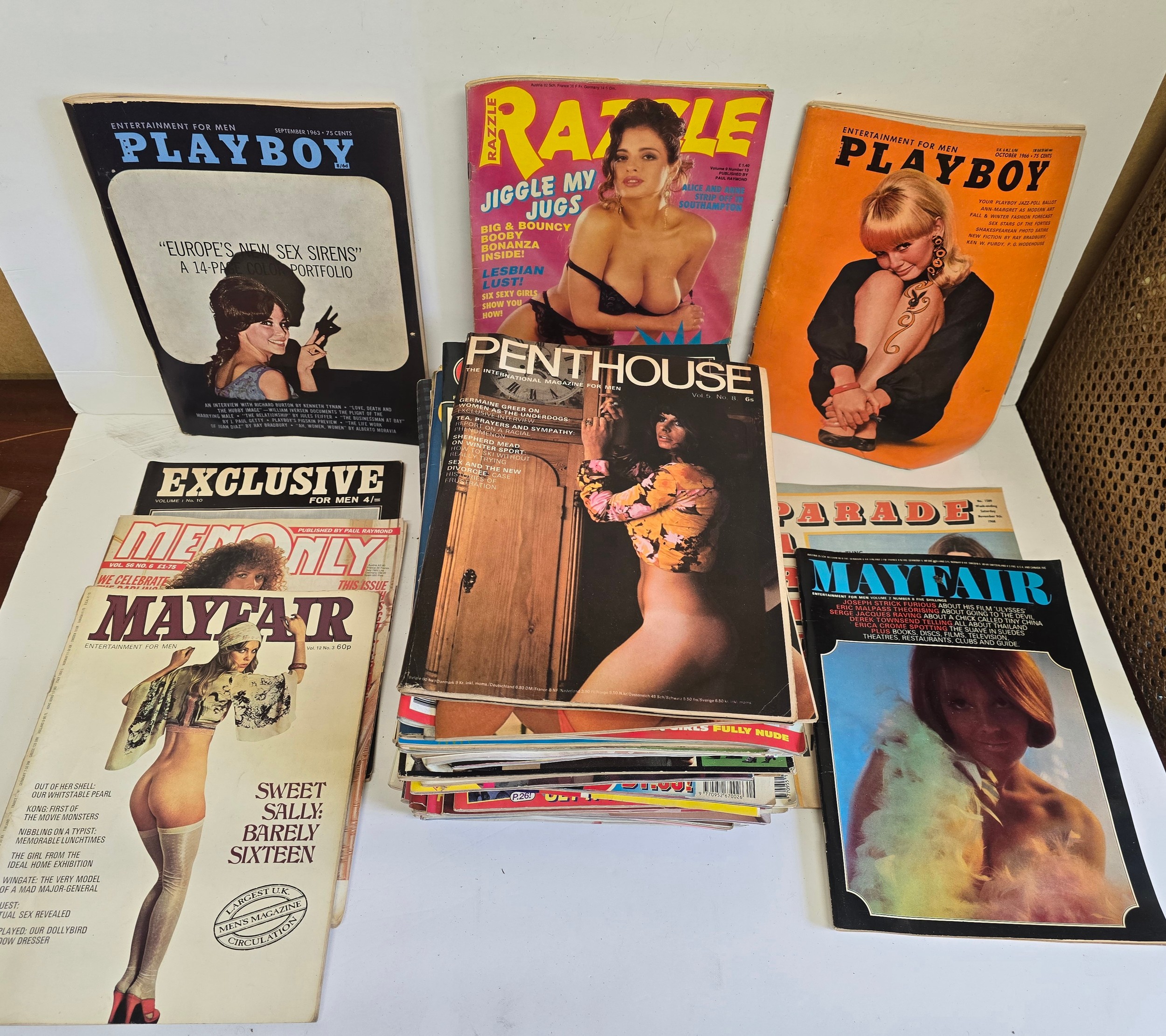 Selection of vintage Gent's erotic magazines including Mayfair, Playboy etc. Approx: 40/50 - 1960s onwards