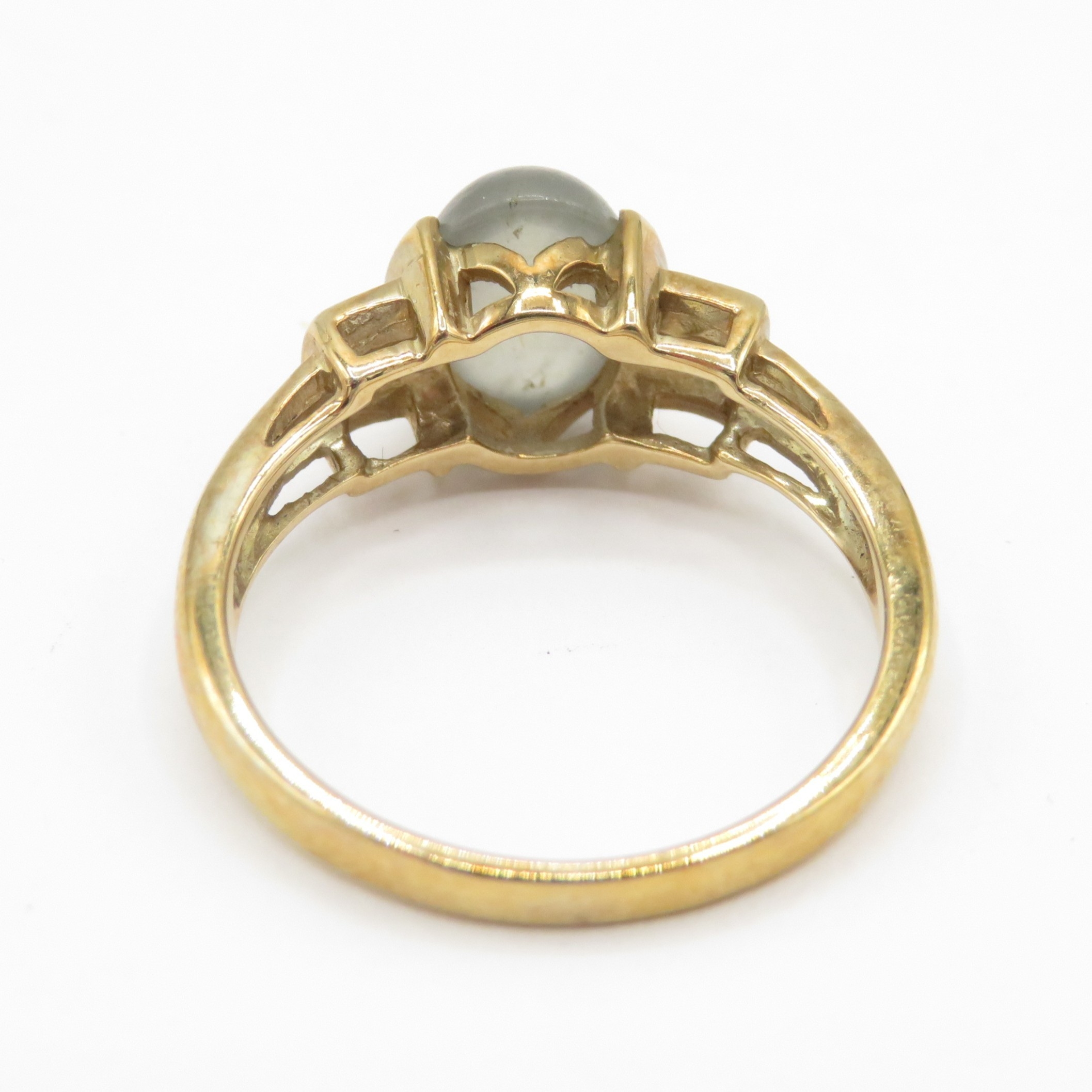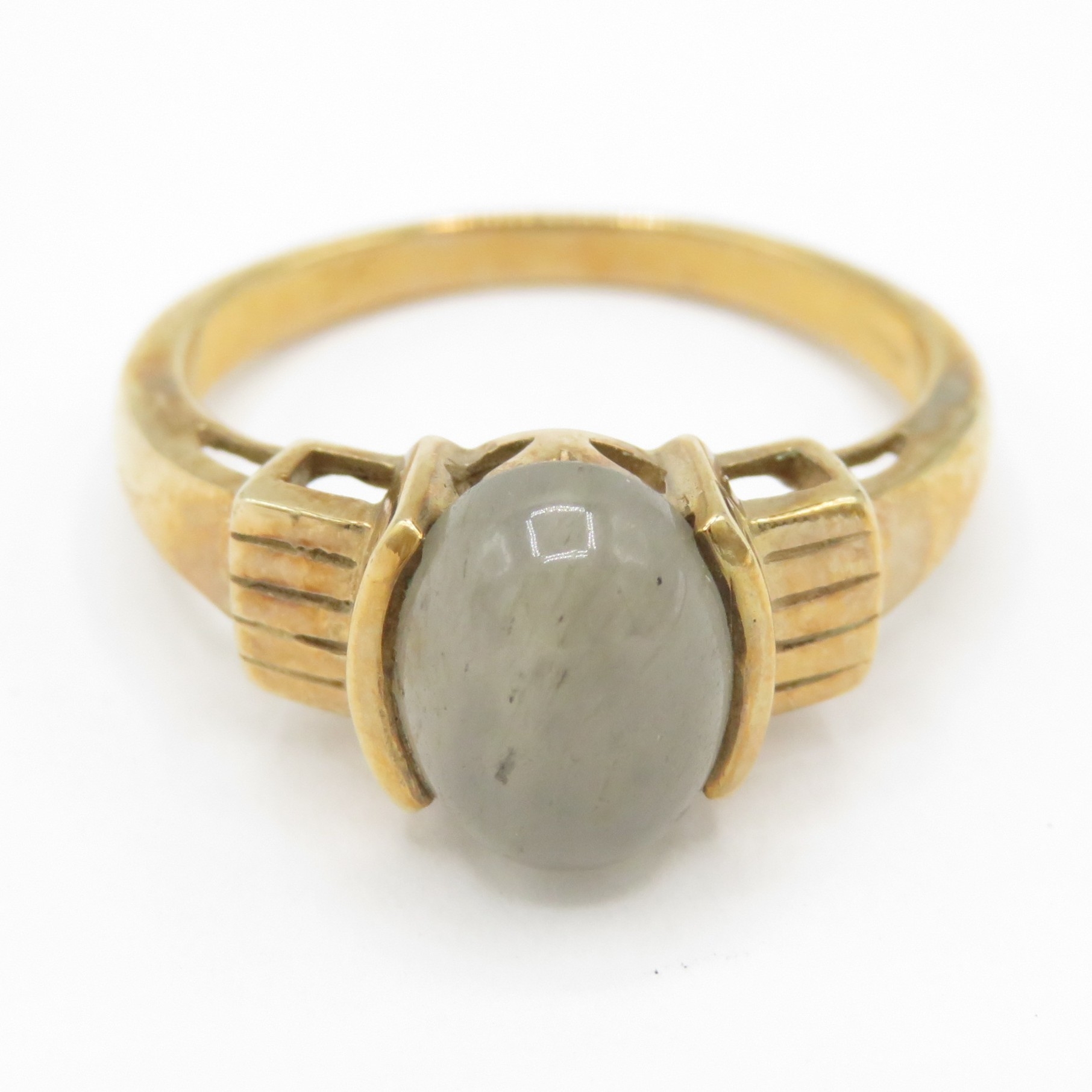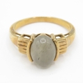 9ct gold moss agate solitaire ring (3.4g) size O