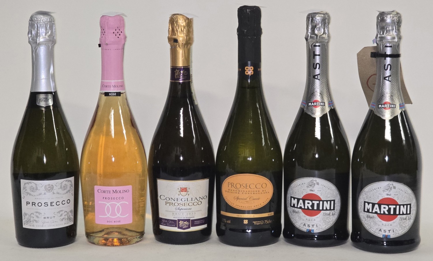 6 x bottles of sparkling wine to include 2 x Martini Asti and 4 x Prosecco (REF P44, P48, P85, P97).