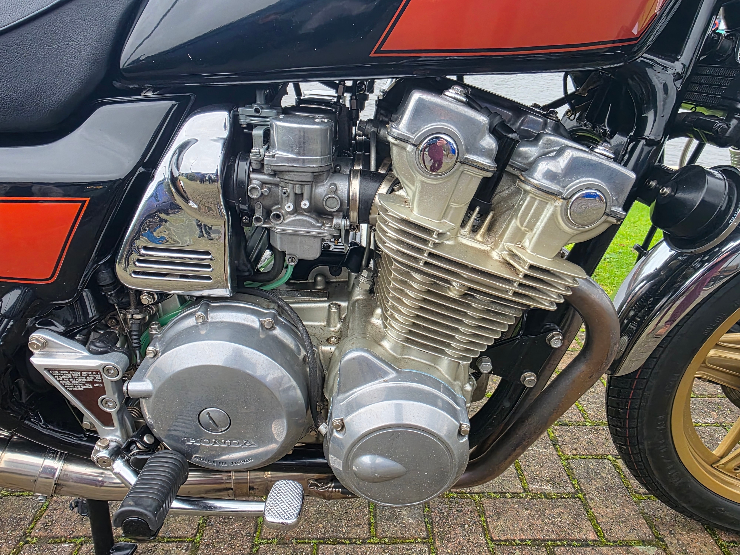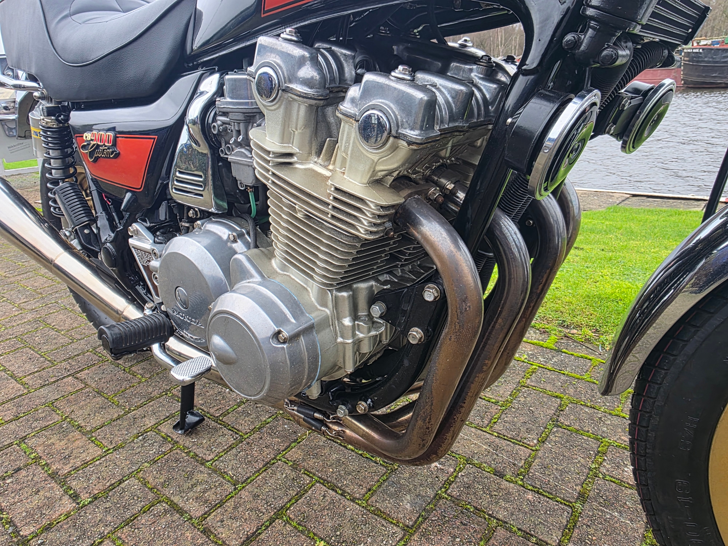 The frame was derived from the European CB900F, extended by 2 inches to accommodate the sub-transmission components. The sub-transmission involves a jack shaft that allows the rider to select a "high" or "low" range for the five gears, effectively giving an overdrive 6th speed for cruising.