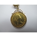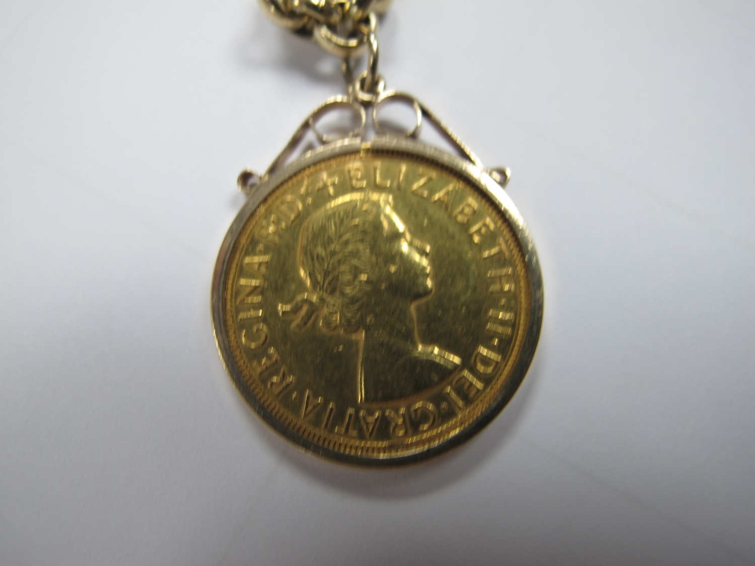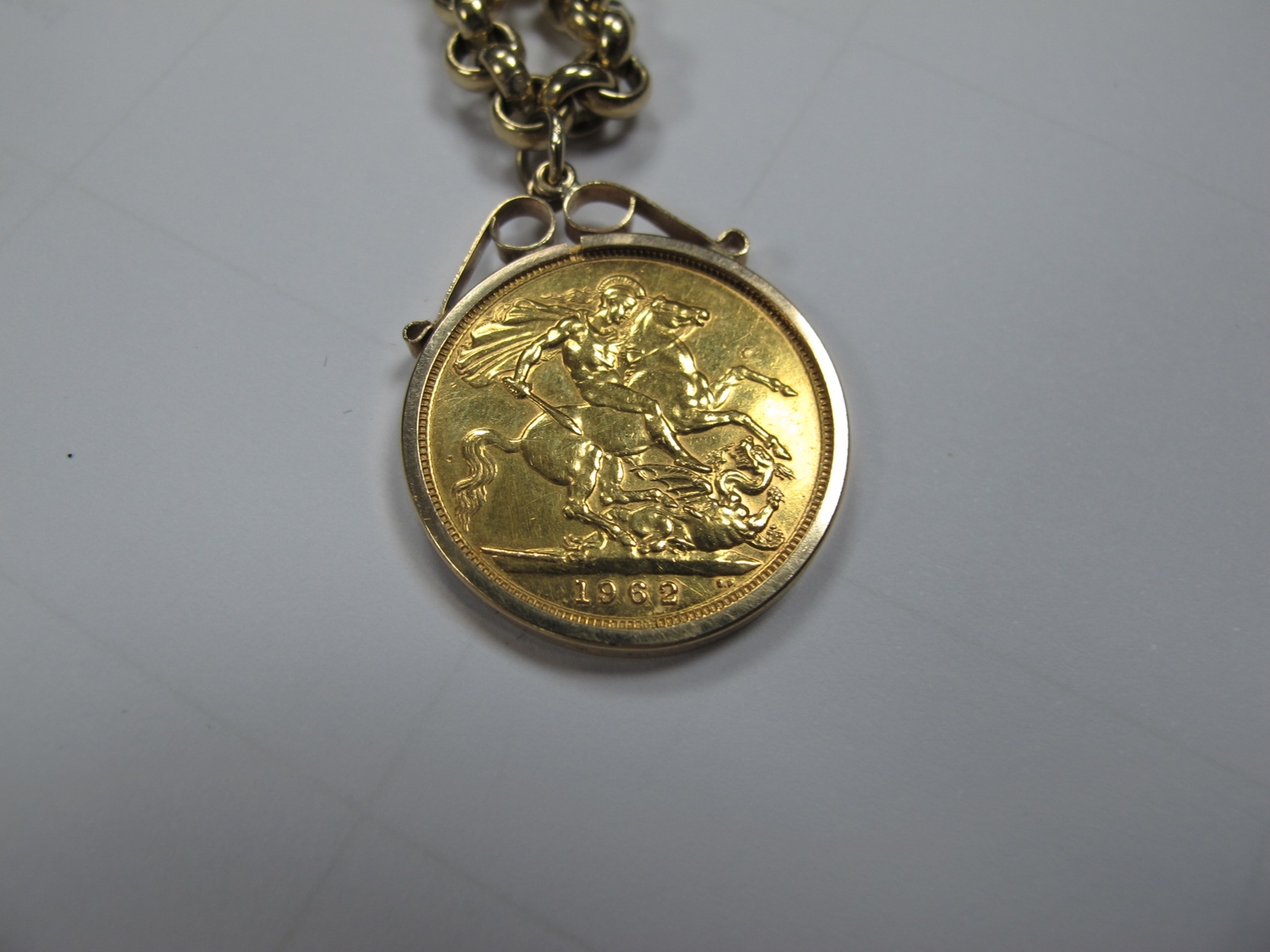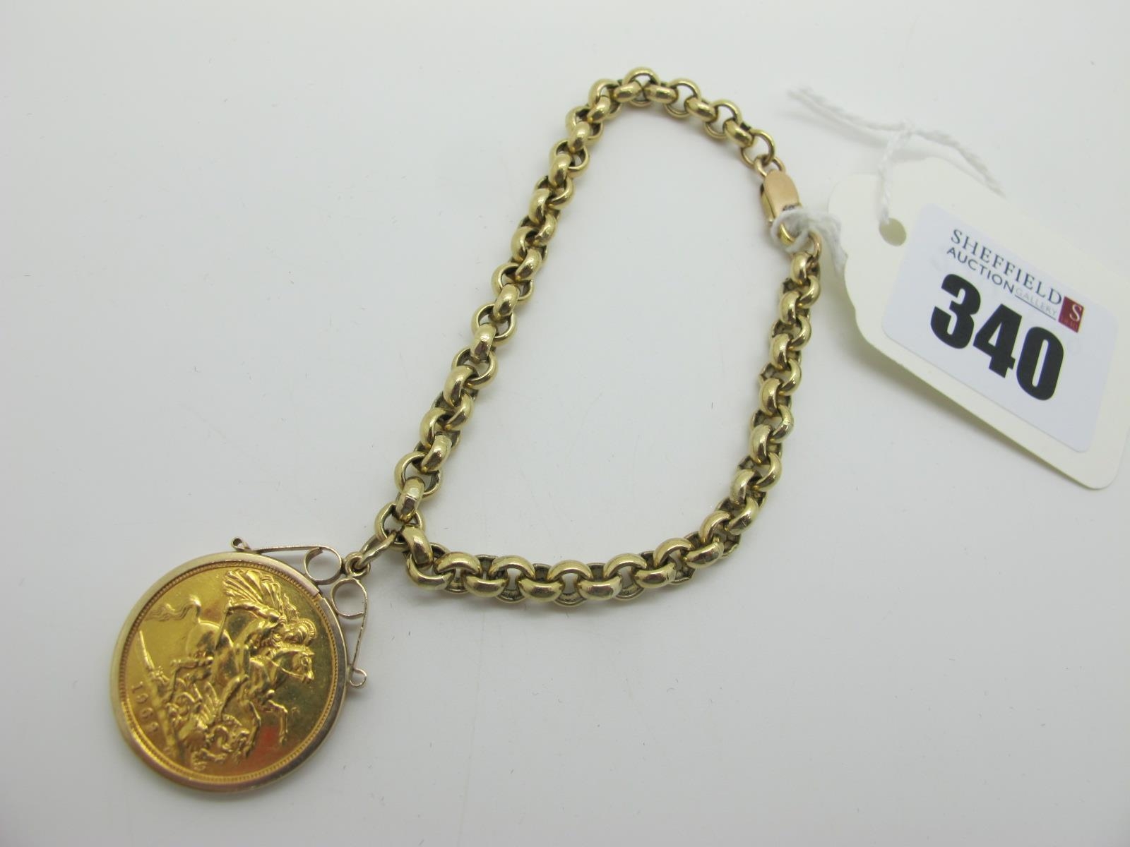 A 9ct Gold Belcher Link Bracelet, suspending an Elizabeth II Sovereign, 1962, loose set within pendant mount.