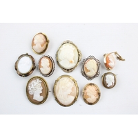 8 x Antique Stone Set BROOCHES inc. Blue Lace Agate, Paste, Spider Brooch