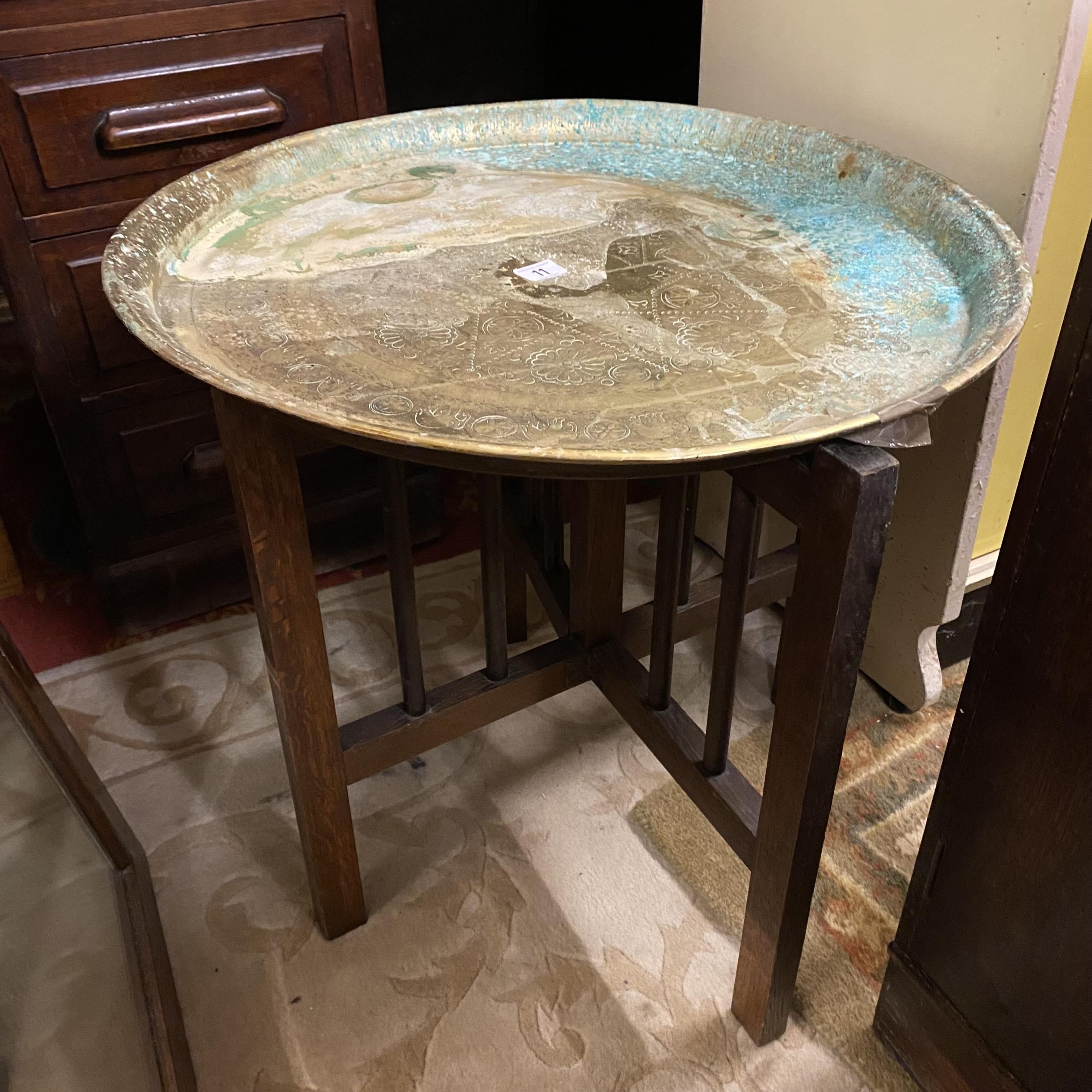 INDIAN BRASS TRAY TABLE