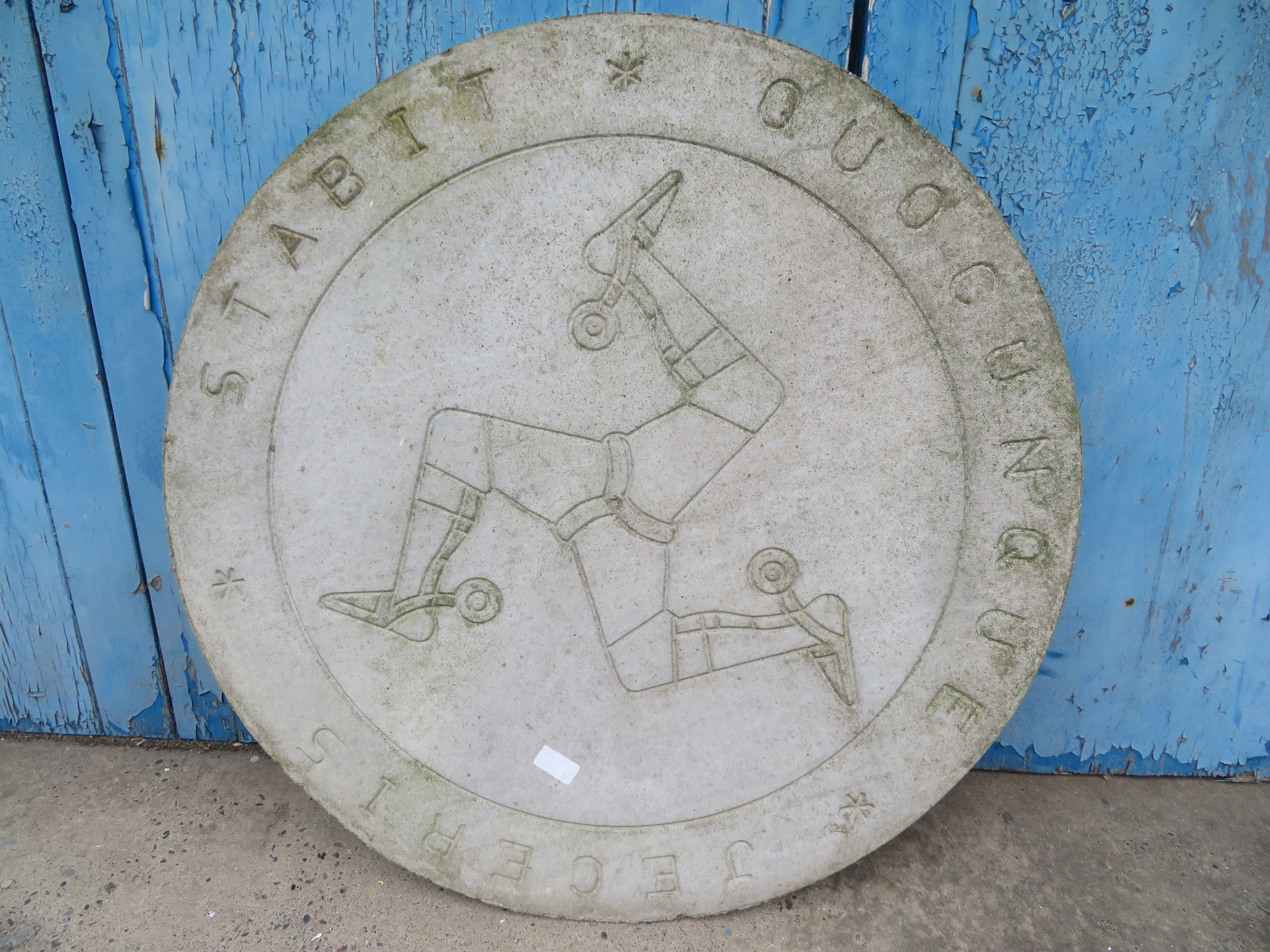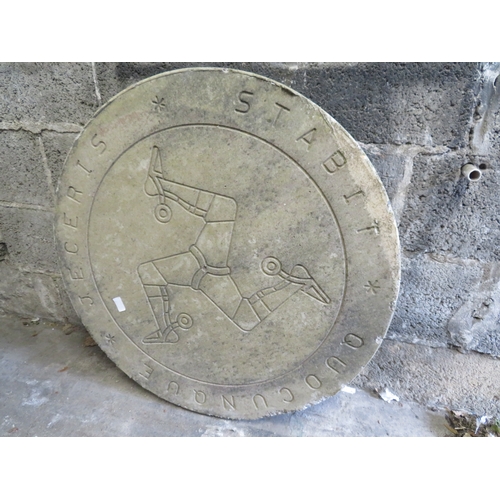 Large heavy concrete Isle of Man Triskelion plaque 'Quocunque Jeceris Stabit'