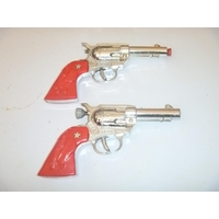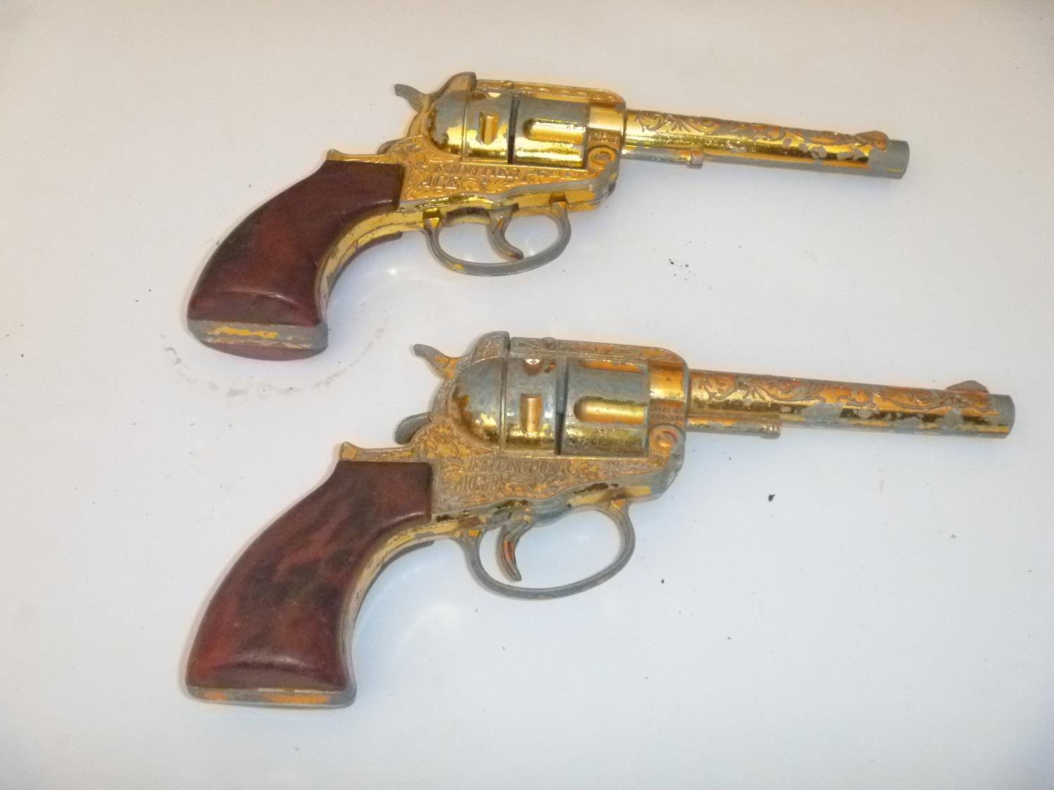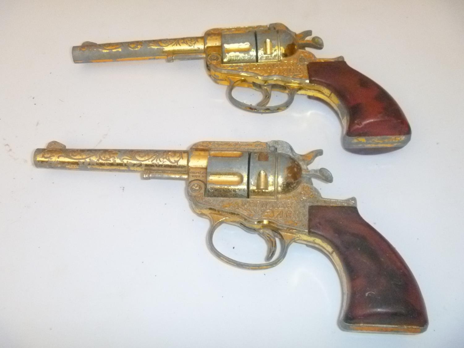 pair of frontier ace lone star / crescent style cap guns , unchecked, with playwear and faults