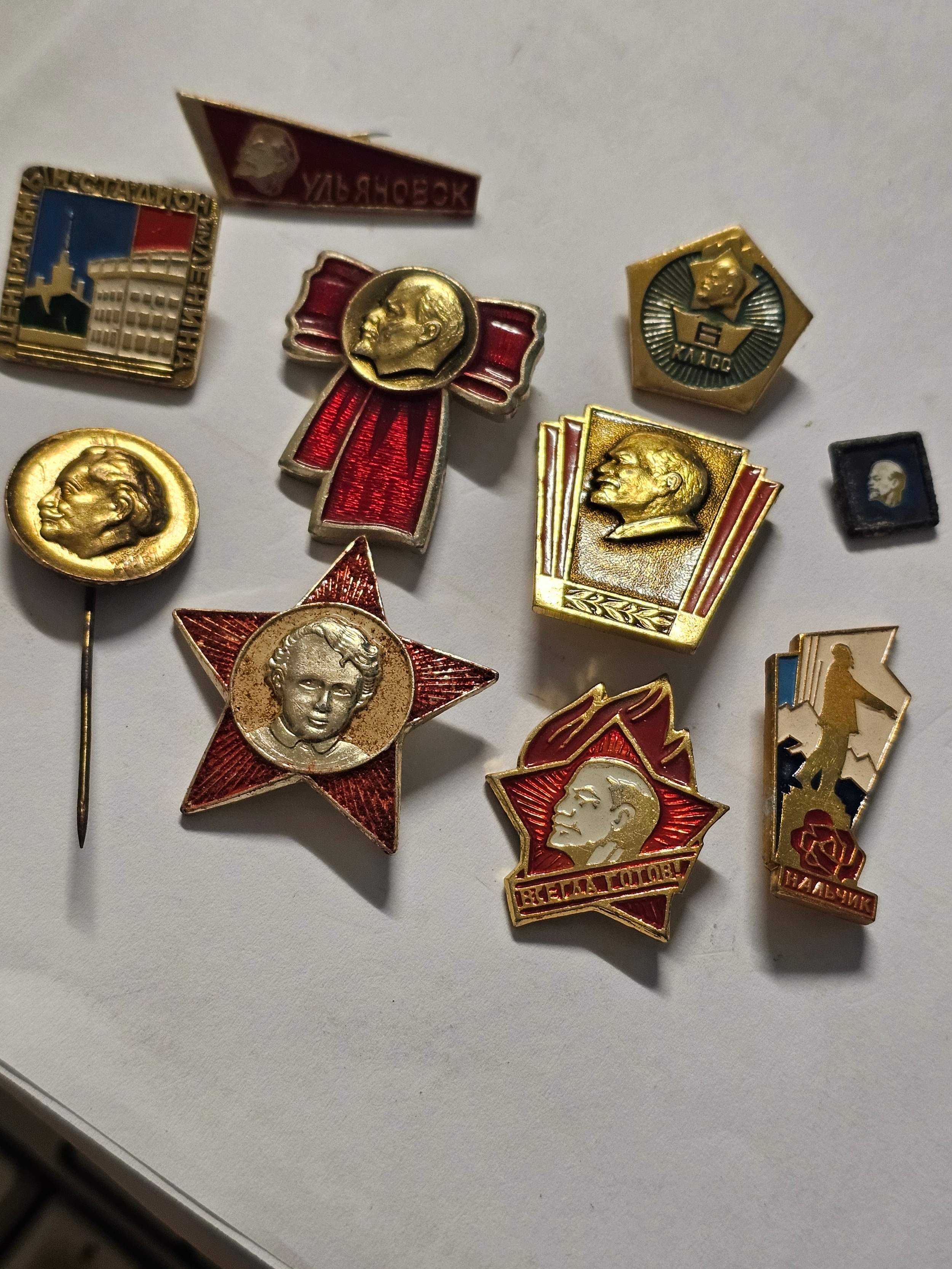 Vintage Soviet pin badges, dedicated to Vladimir Lenin and L...