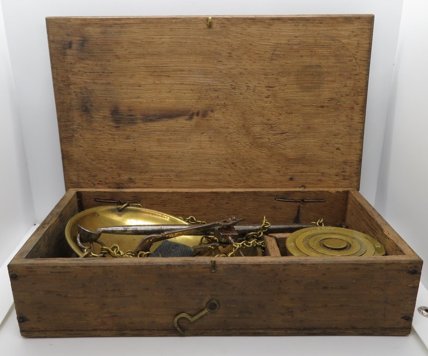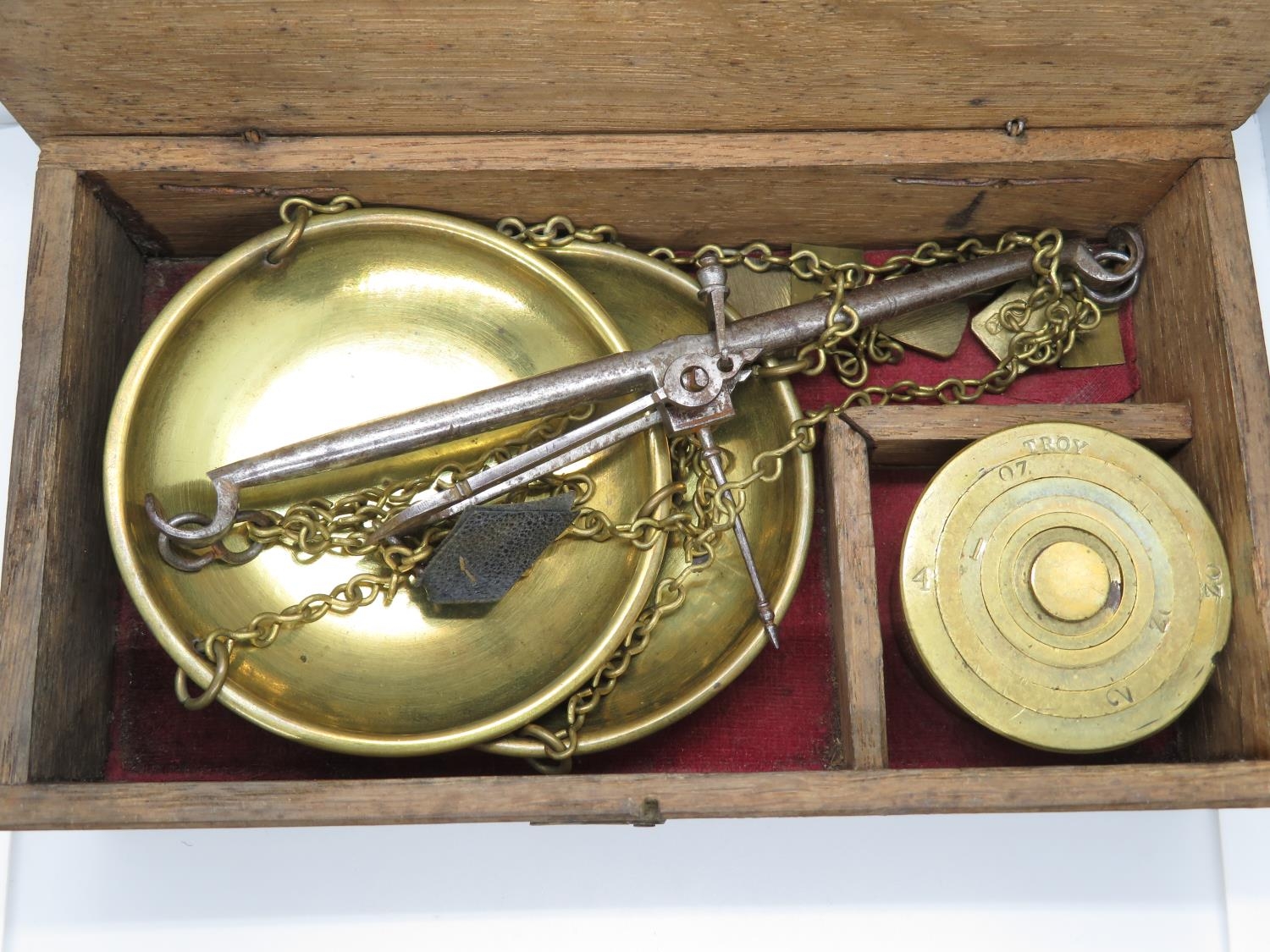 Set of old scales with weights for Troy ounces
