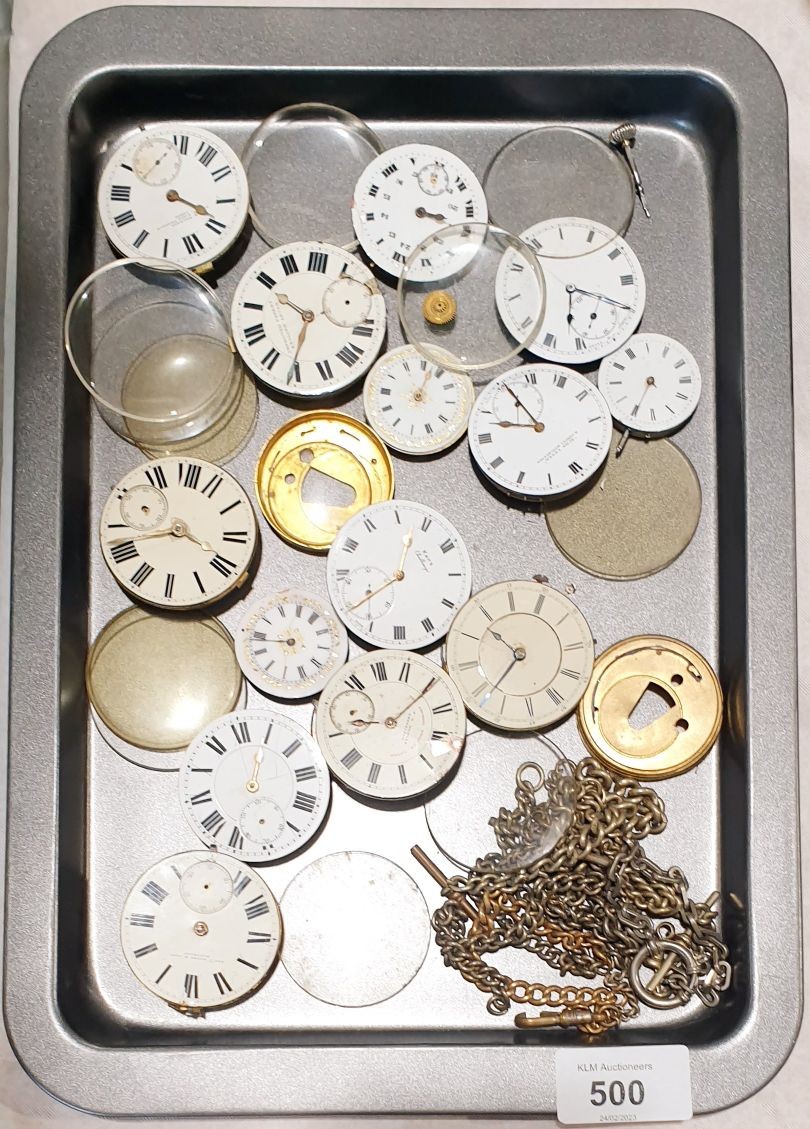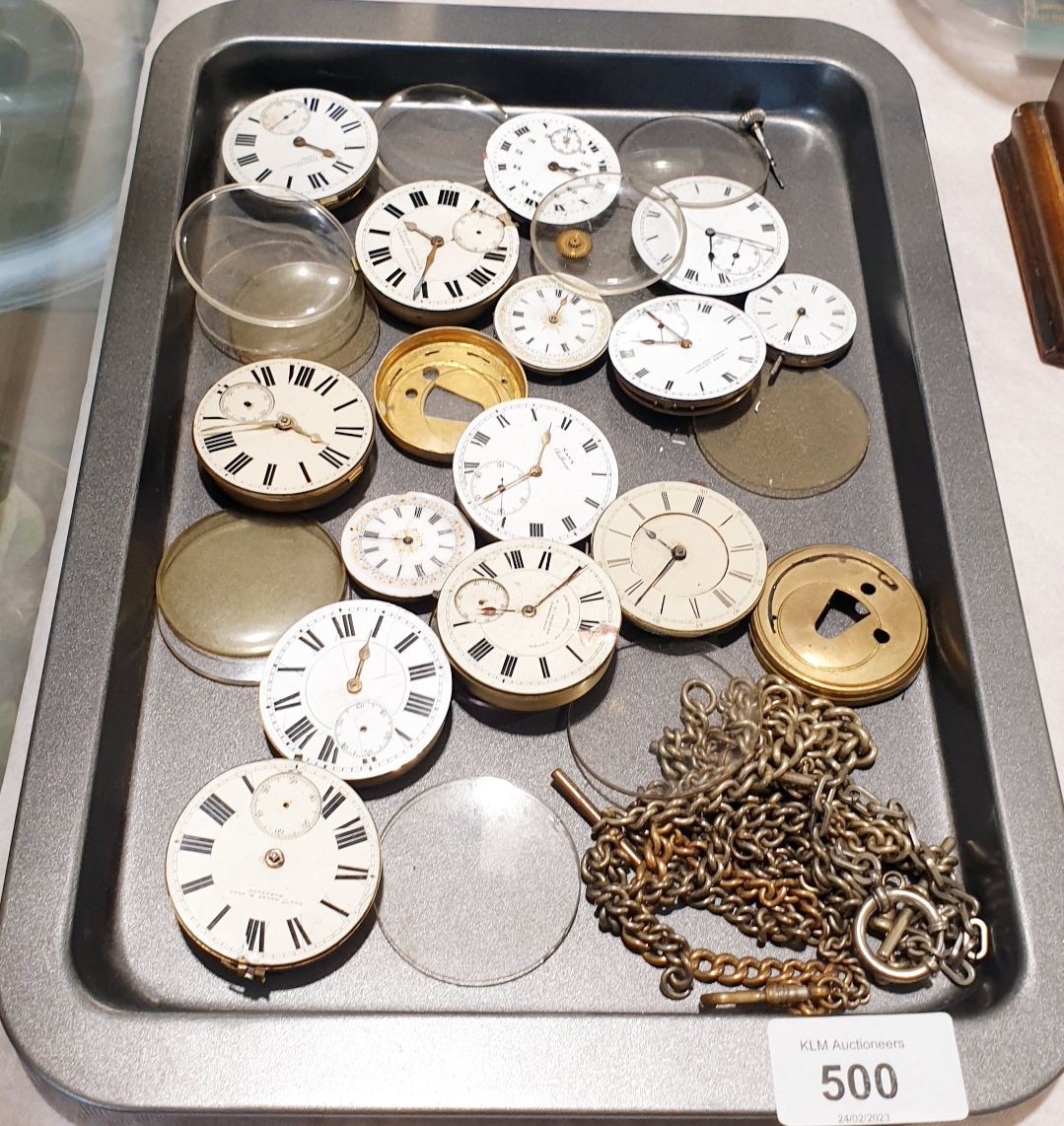 Antique pocket watch movements and watch chains. UK shipping £14.