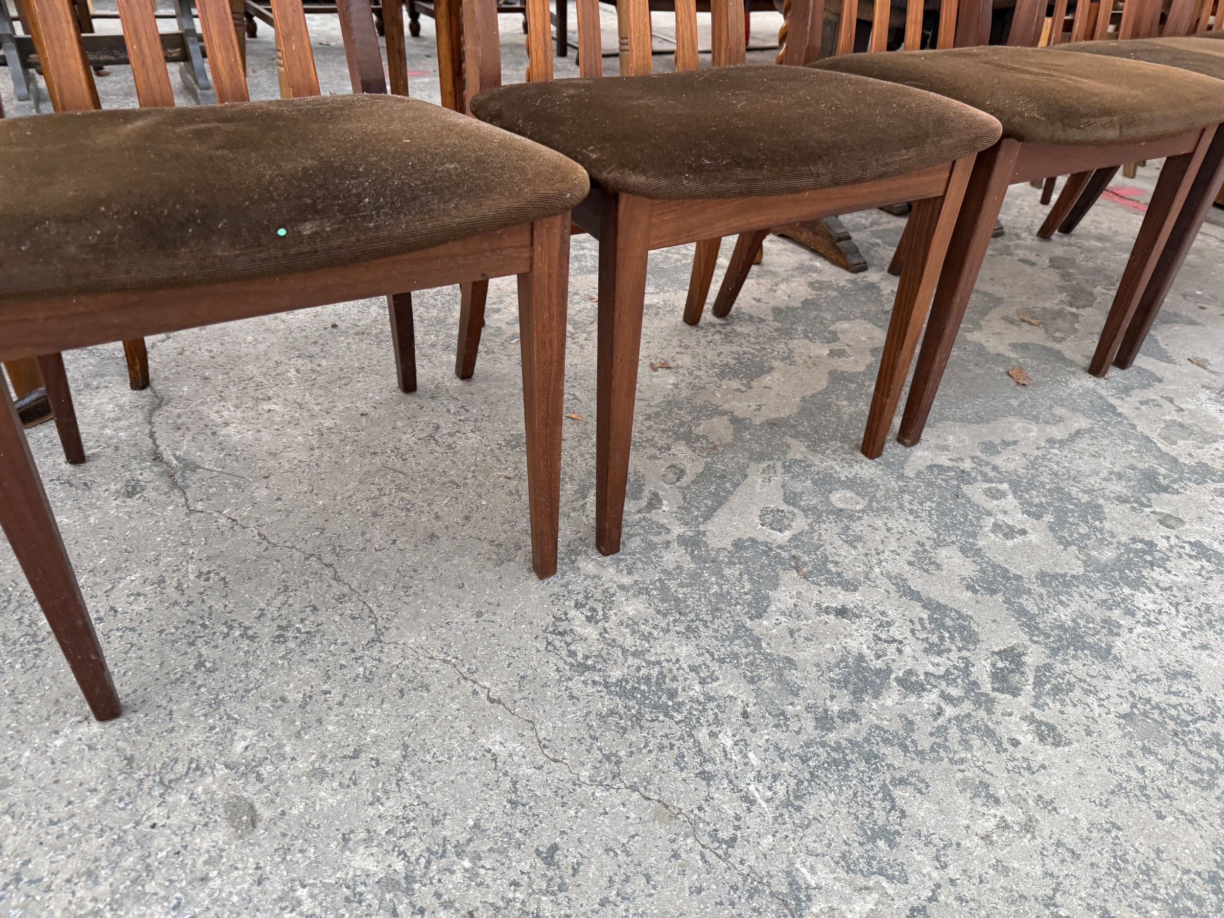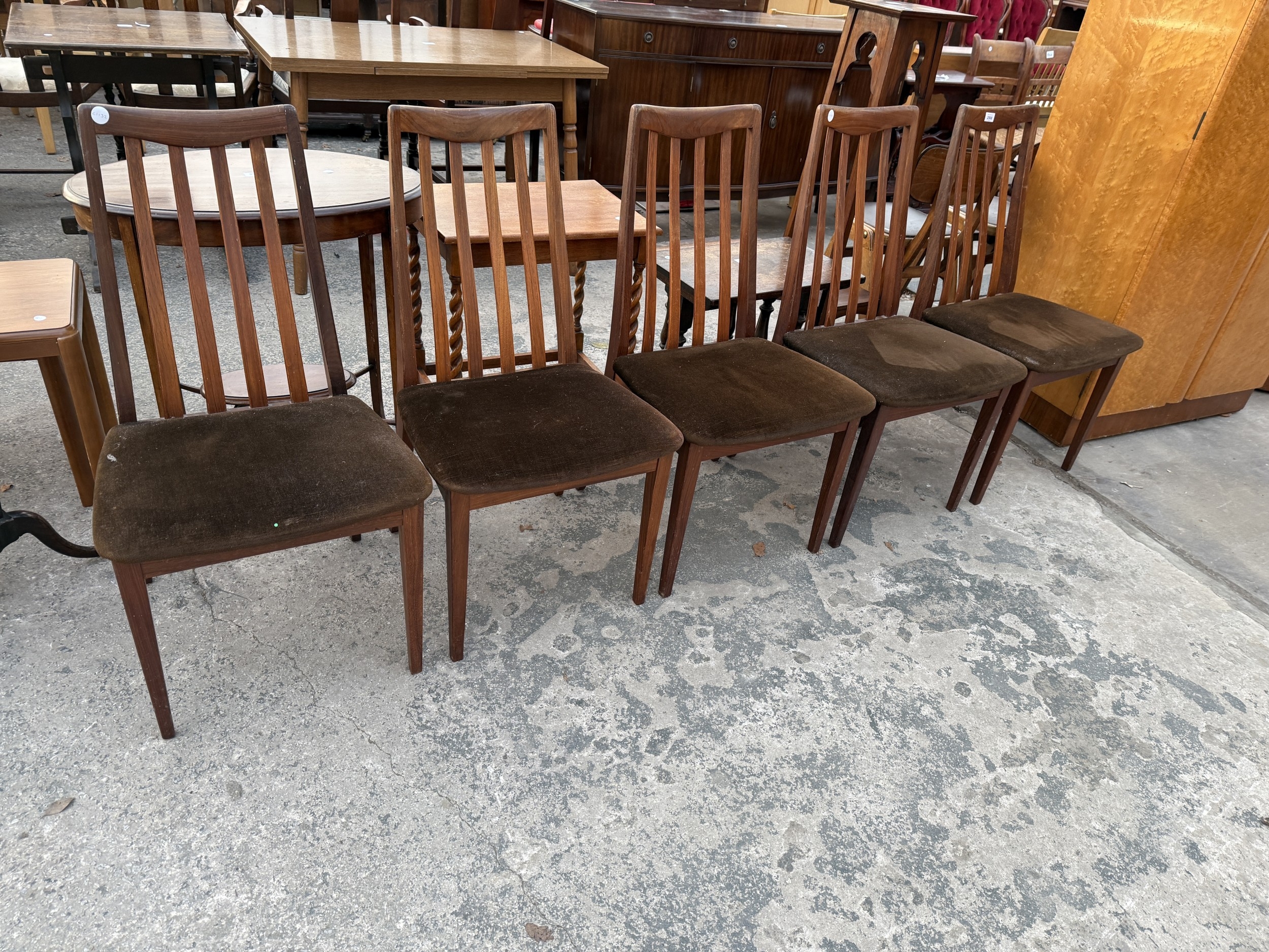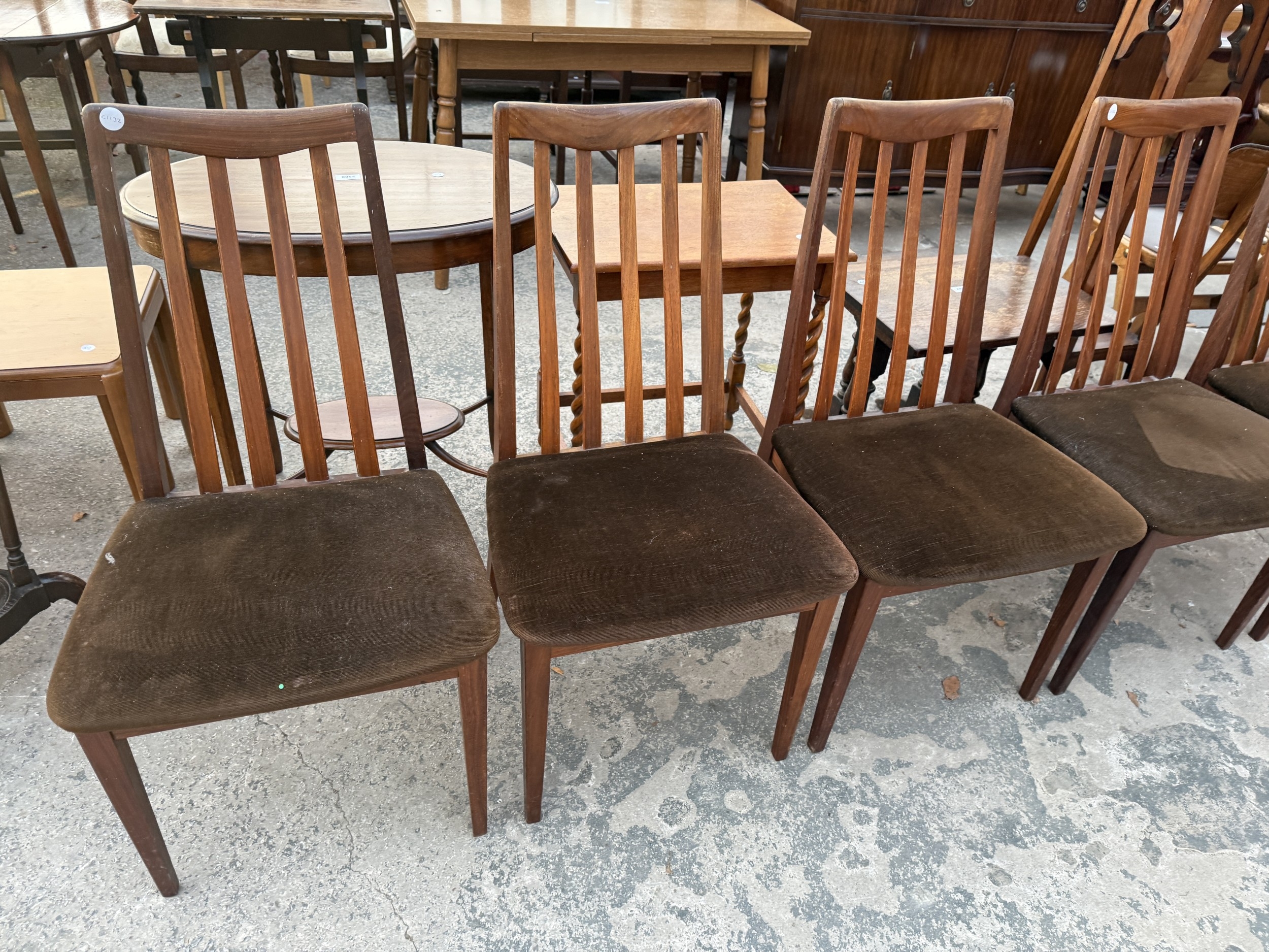 FOUR G PLAN RETRO TEAK DINING CHIARS ON TAPERING LEGS WITH SLATTED BACKS