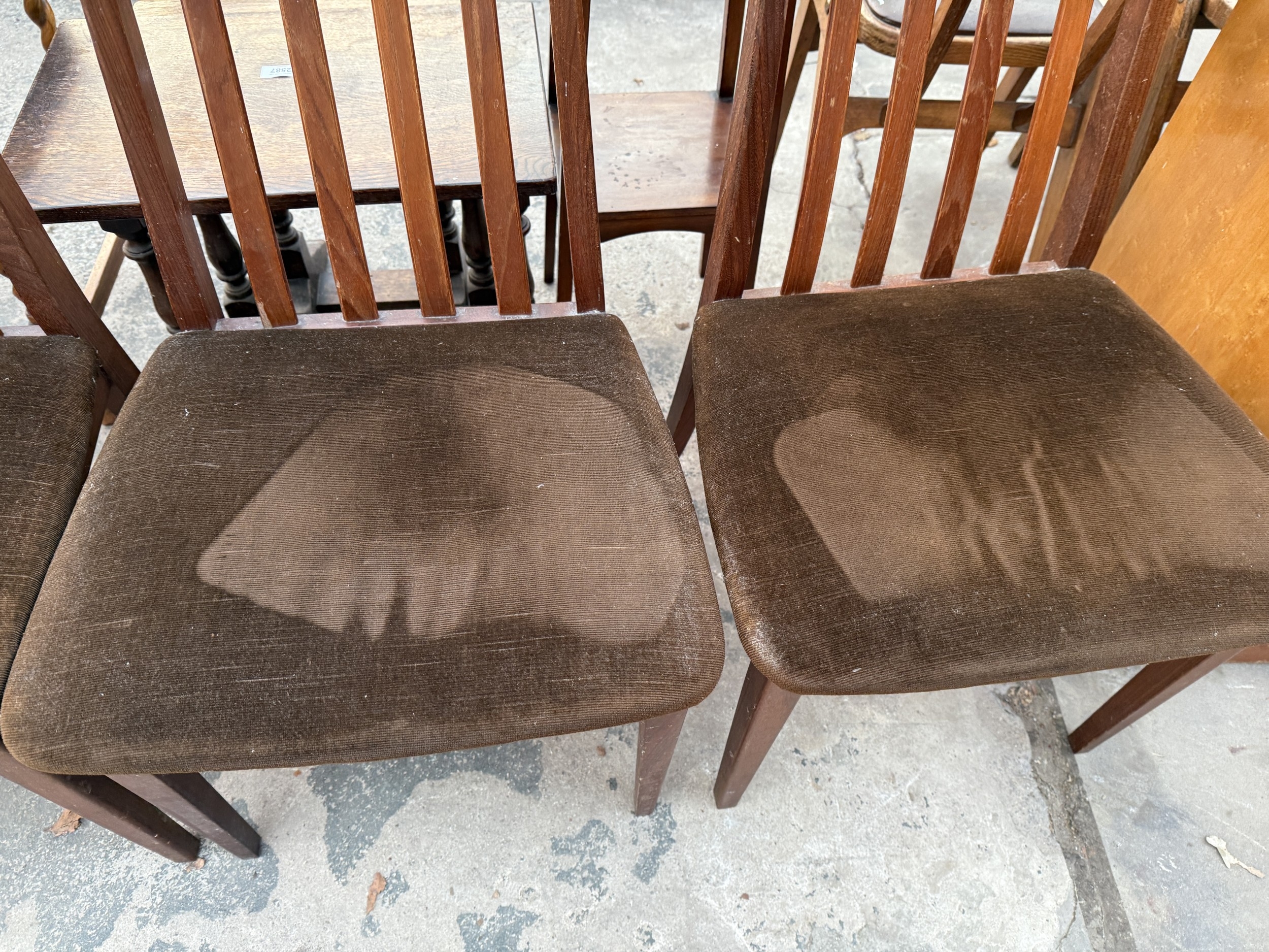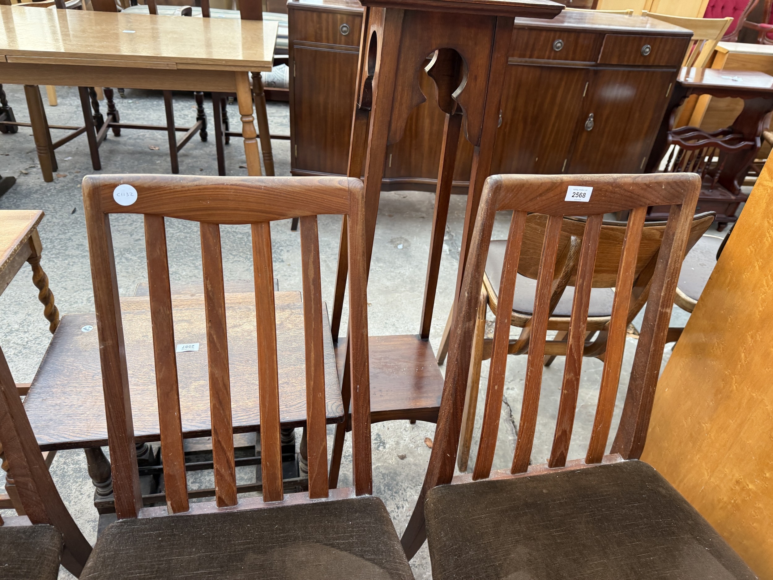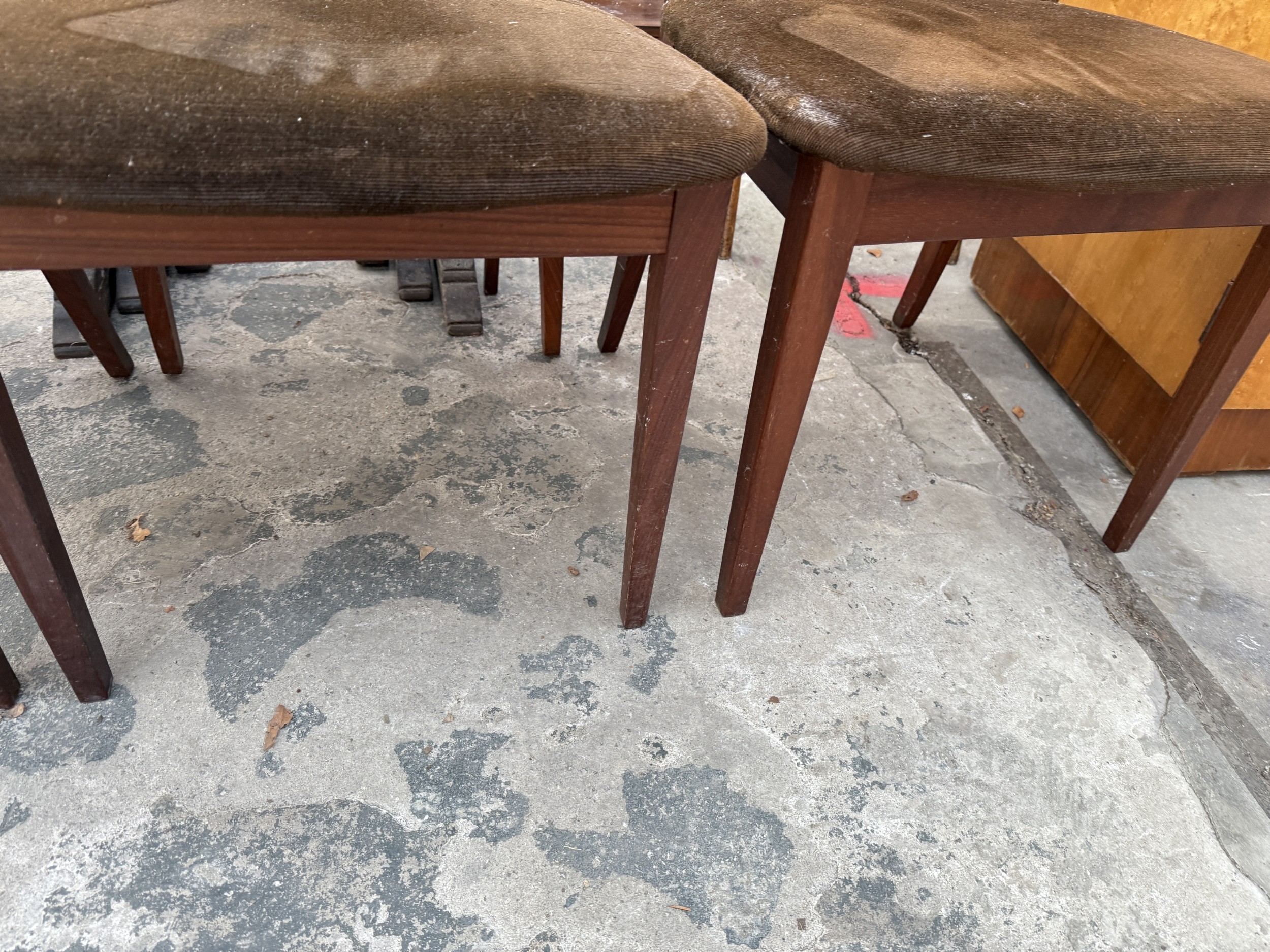 FOUR G PLAN RETRO TEAK DINING CHIARS ON TAPERING LEGS WITH SLATTED BACKS