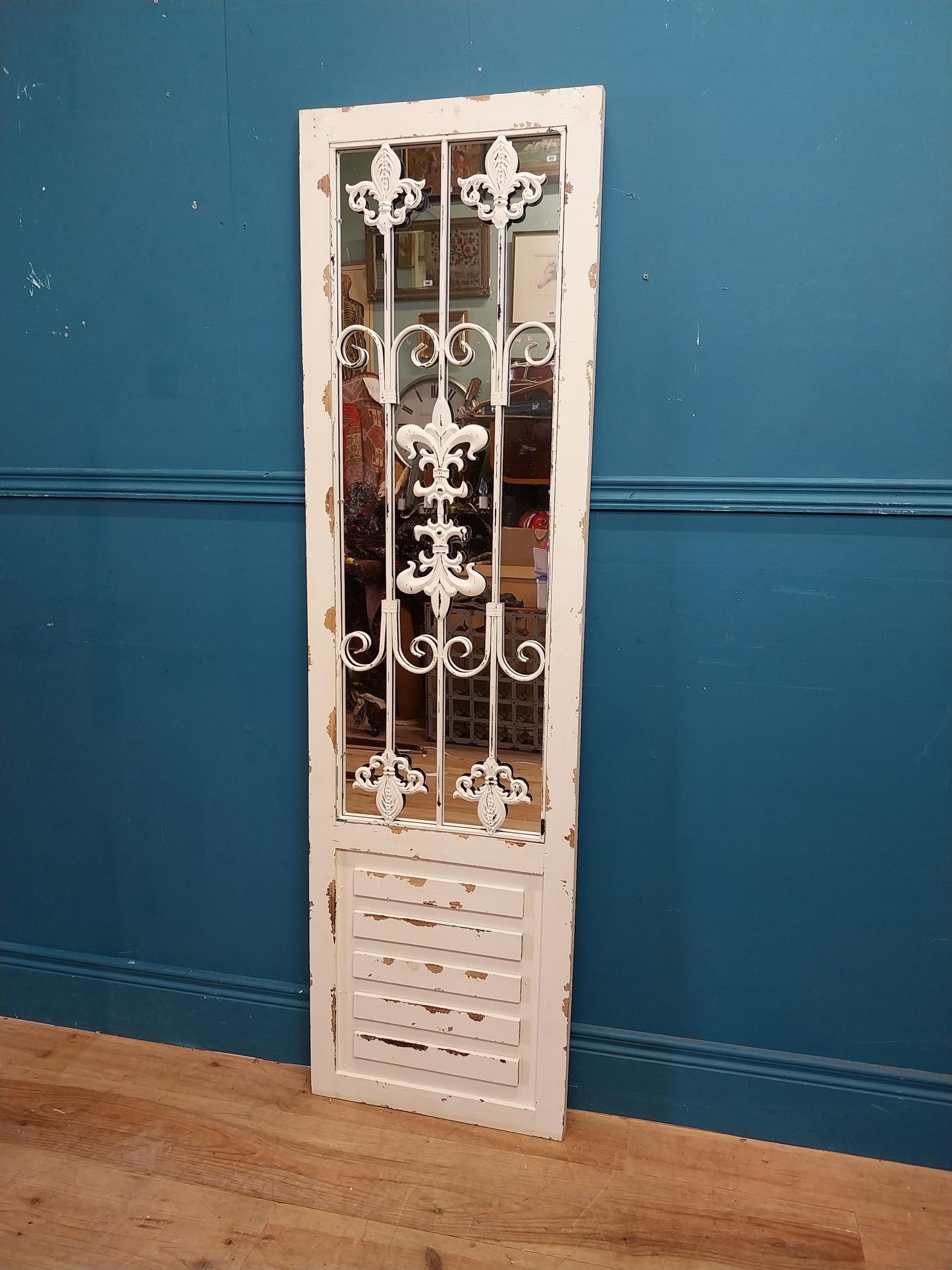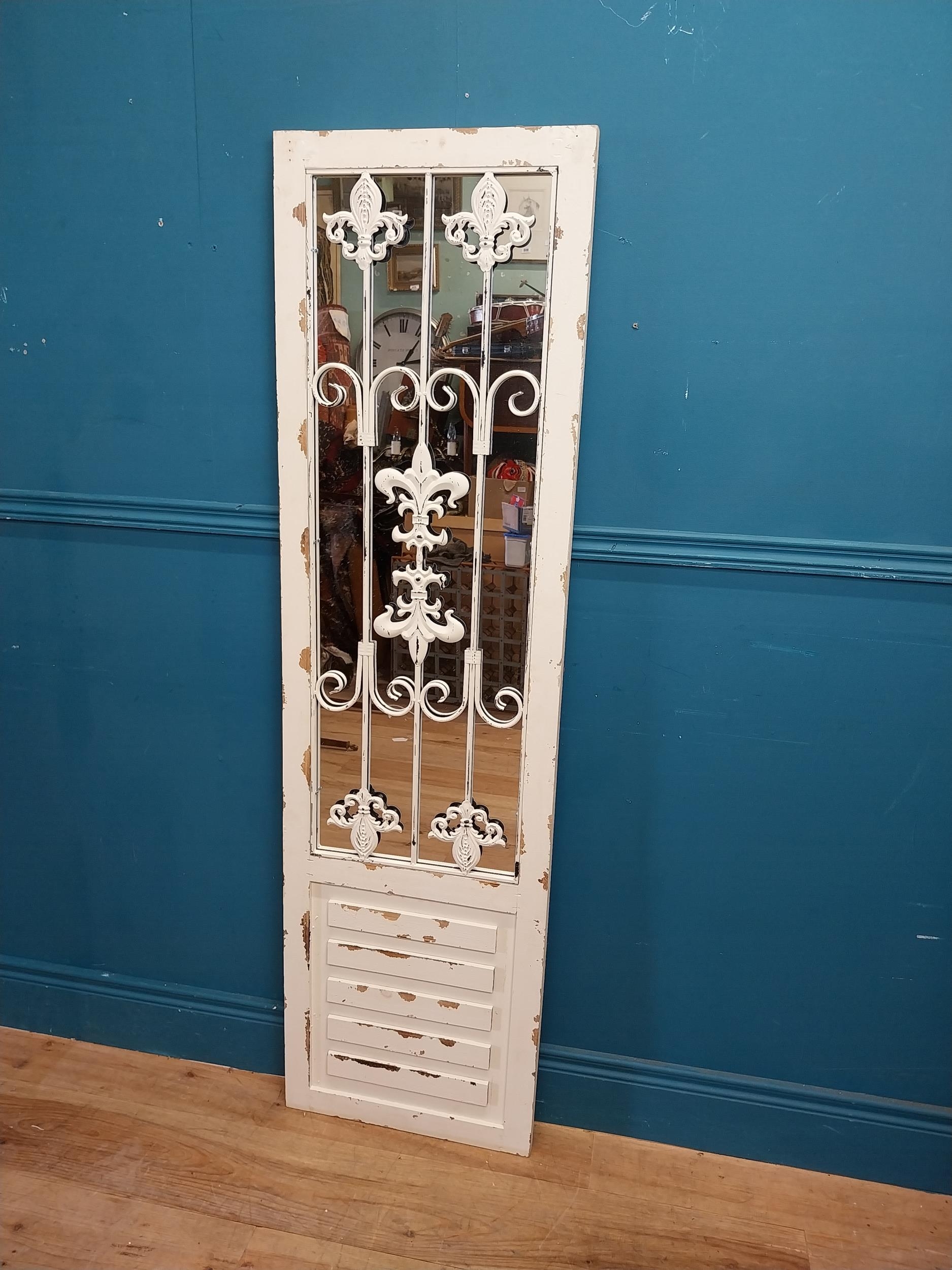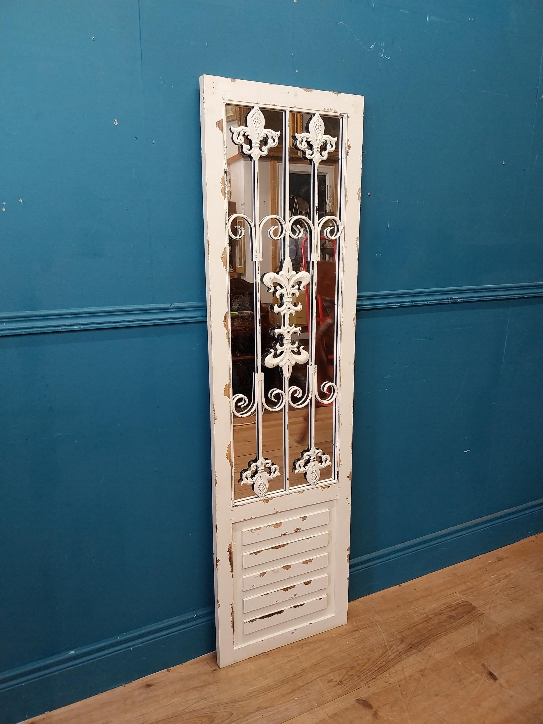 Decorative wooden and metal wall hanging mirror {150 cm H x 43 cm W}.