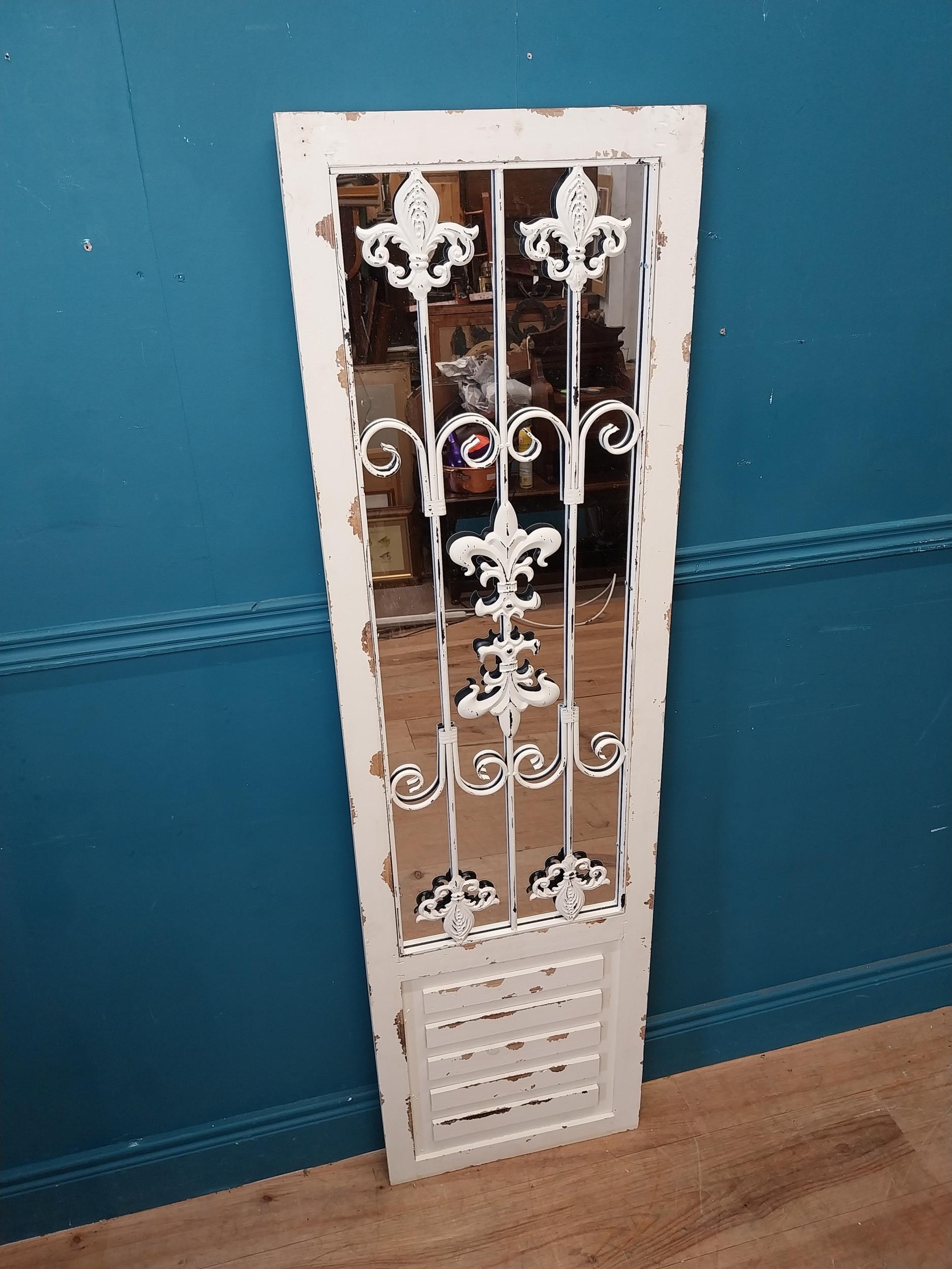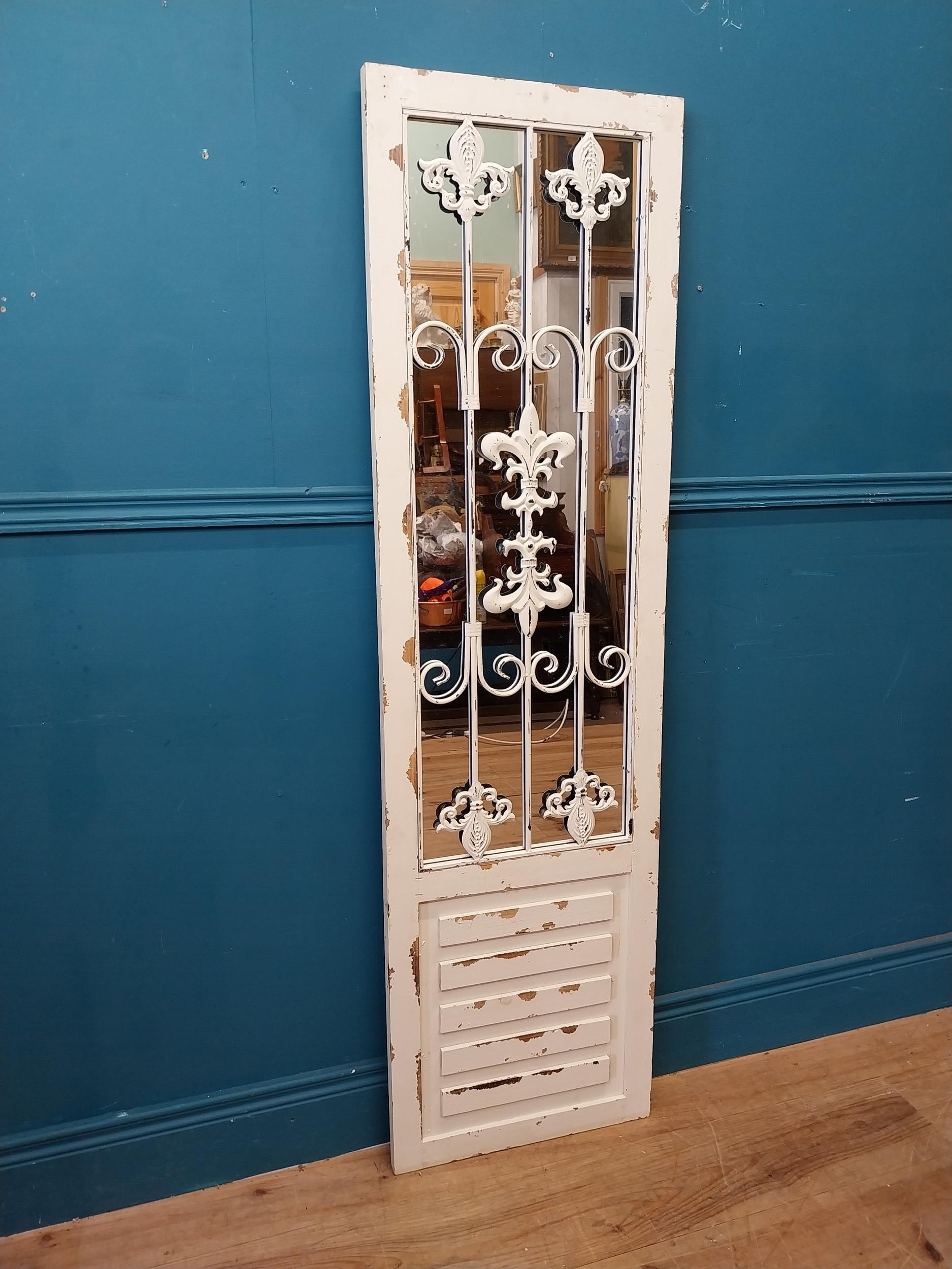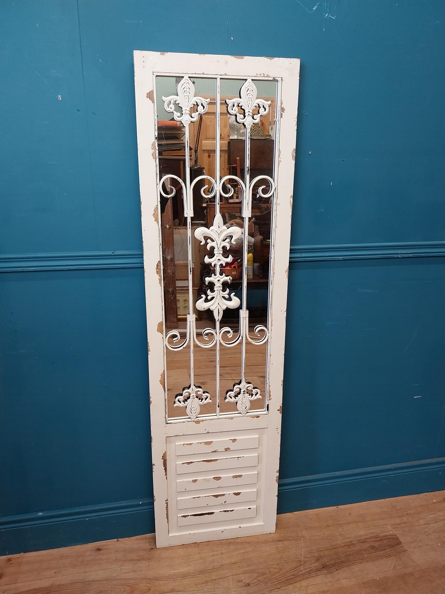 Decorative wooden and metal wall hanging mirror {150 cm H x 43 cm W}.