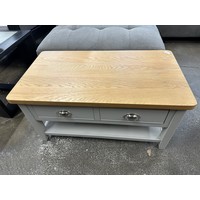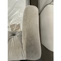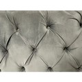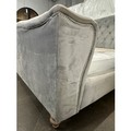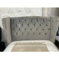 A grey velvet buttoned double bedframe