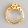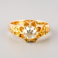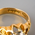 A late Victorian 18ct gold diamond single stone ring. Set with an old cut diamond (measuring approx 6.09mm to 6.12mm, depth approx 4.19mm), within an extended eight claw setting, scalloped border and scrolling shoulders, to the plain band, estimated diamond weight 1.00cts, assessed colour G-H, assessed clarity I1, the ring is hallmarked Chester 1898, makers mark W&H, approx ring size P 1.2, approx gross weight 6.16 grams.