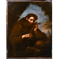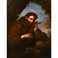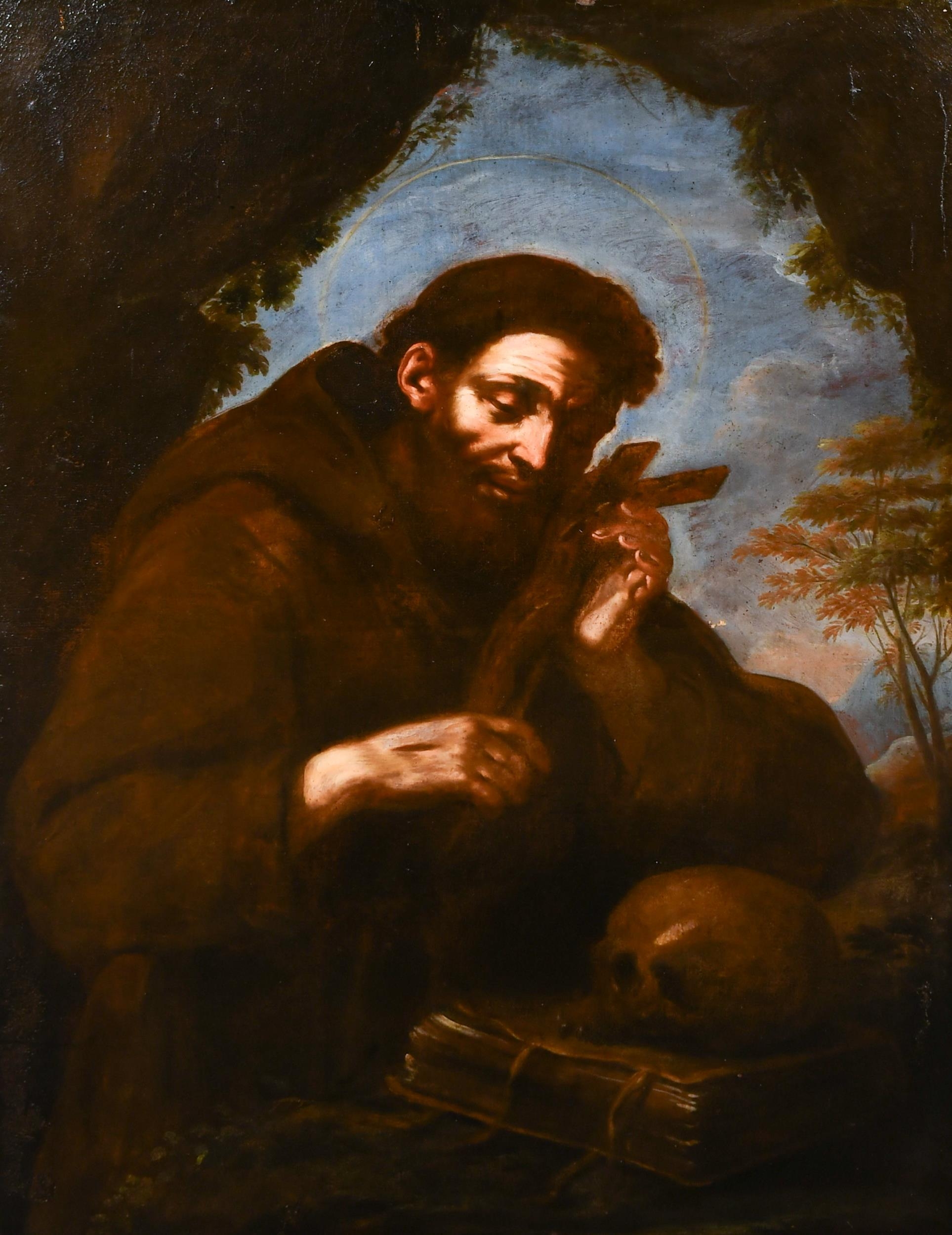 After Giovanni Francesco Barbieri 'Guercino' (1591-1666) Italian. 'St Francis of Assisi", Oil on canvas, Unframed, 50.5" x 35.5" (128.3 x 90.2cm)